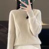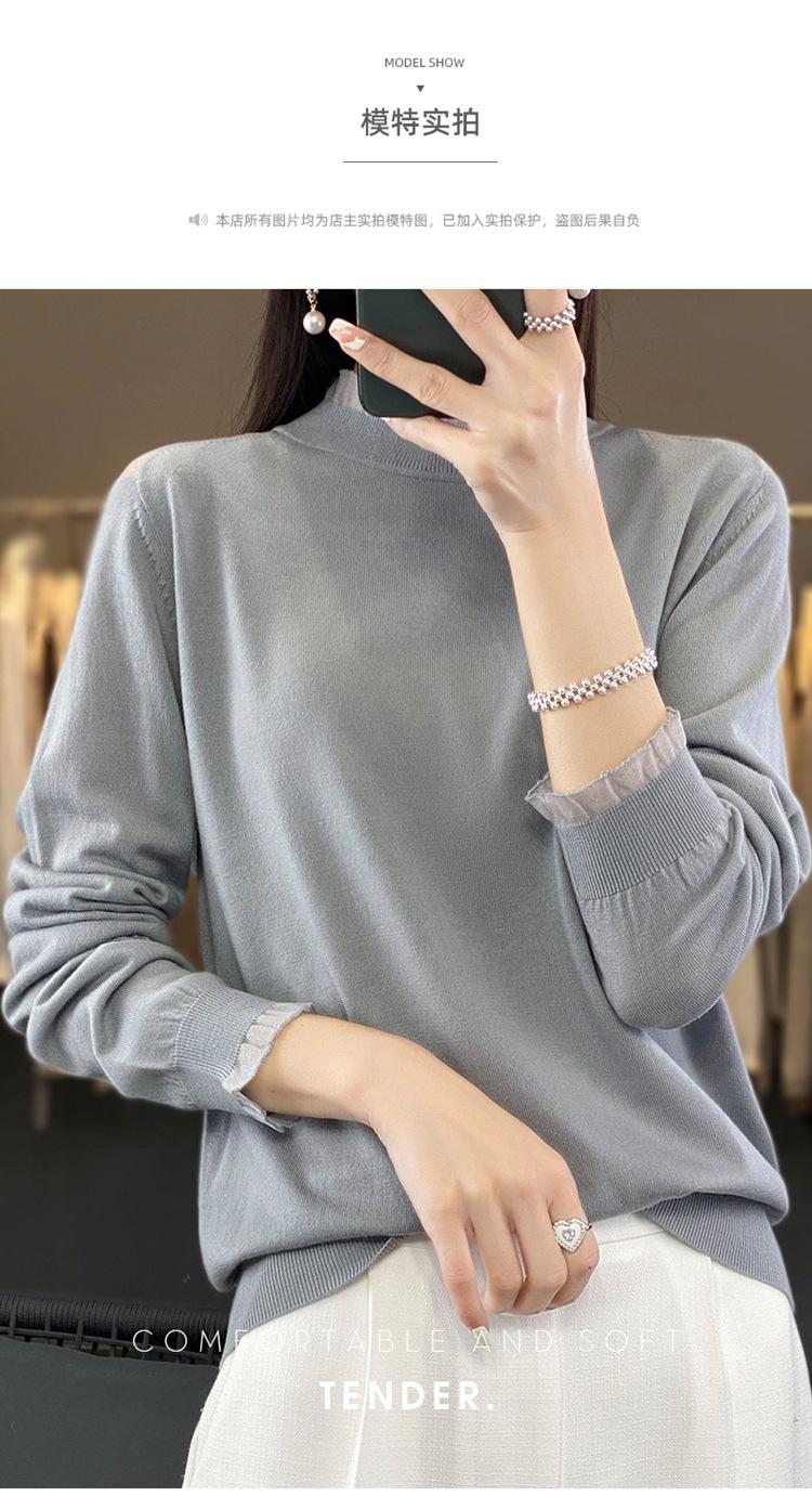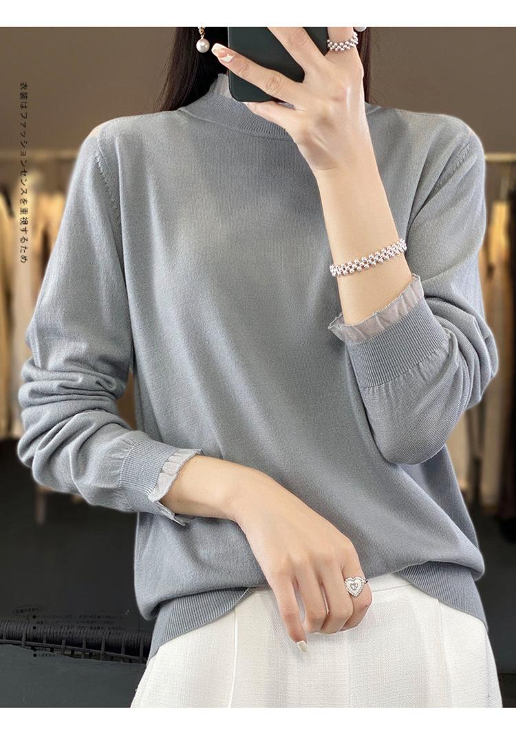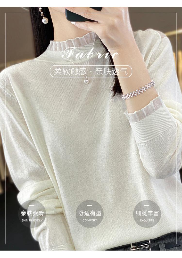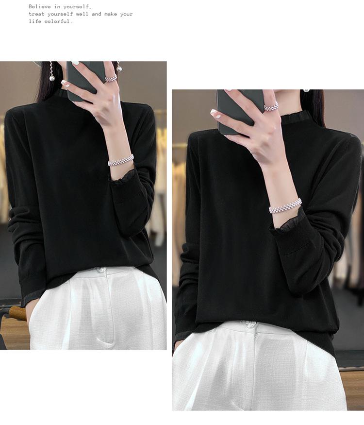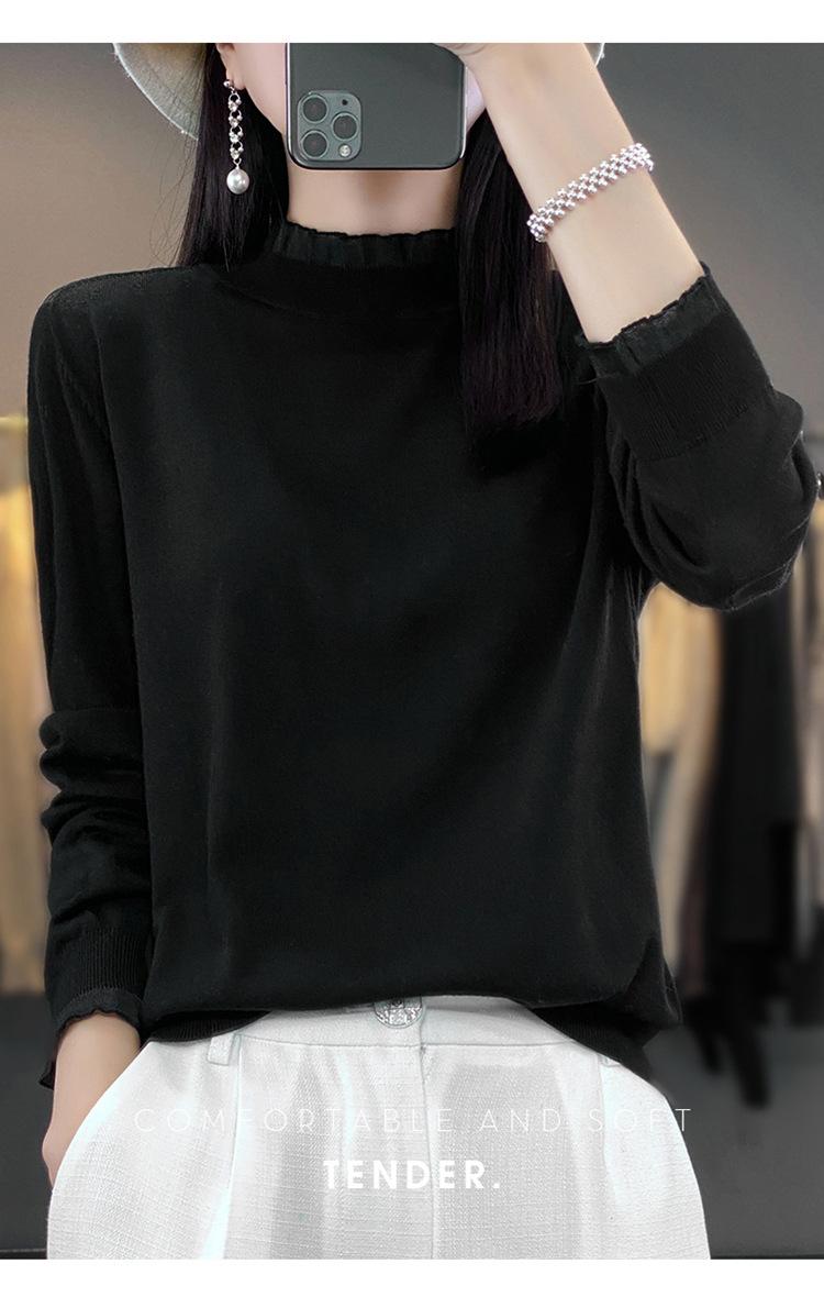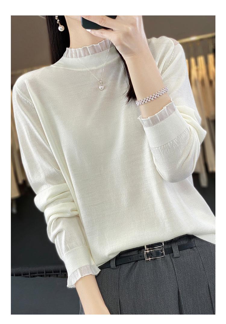 Otoño Temprano 2025 Nueva Prendas de Punto de Lana Peinada Cuello Medio Alto Encaje de Hongo Suéter Holgado Prendas de Punto Aspecto Adelgazante