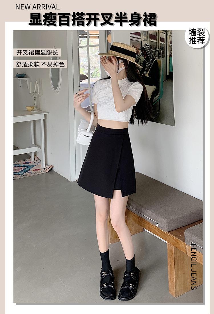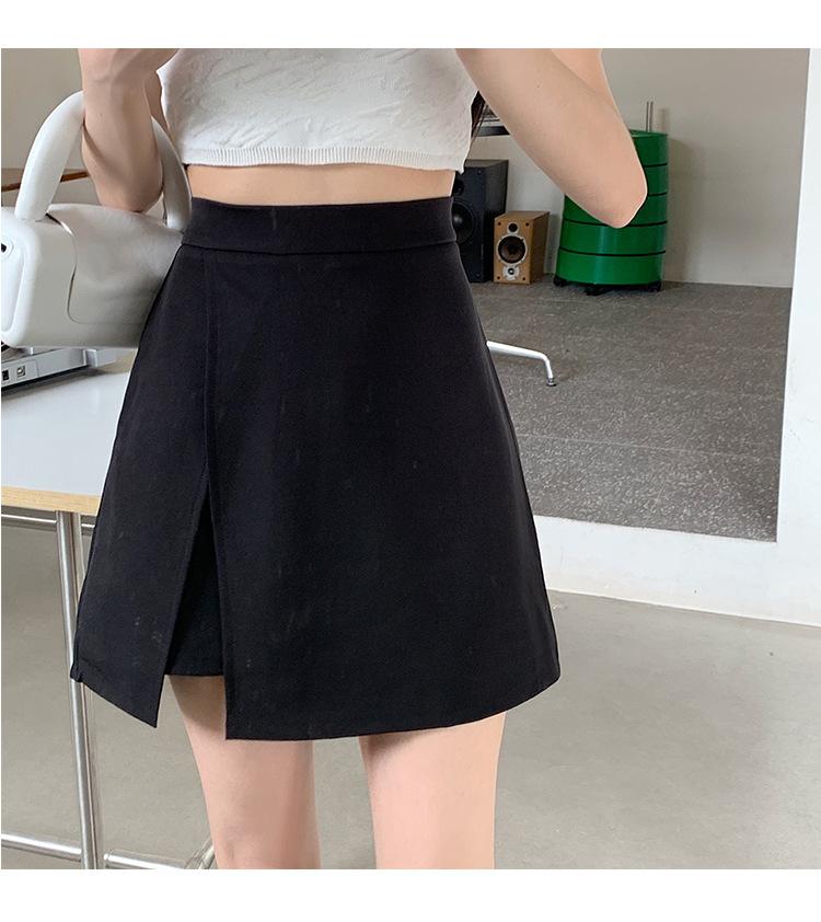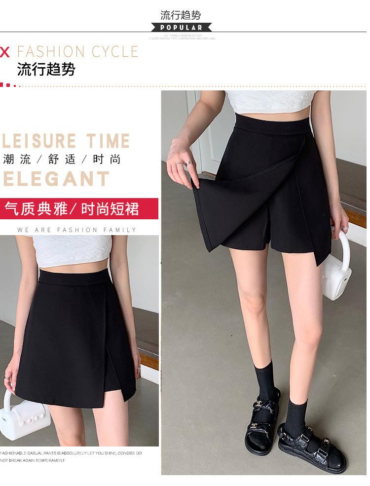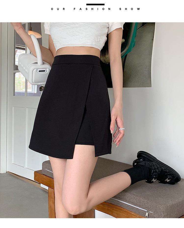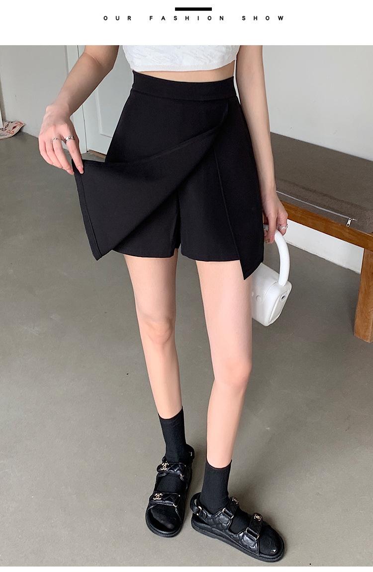 Falda Línea A Verano para Mujer Cintura Alta Look Adelgazante 2025 Nueva Talla Grande mm Asimétrica Negra Abertura Cubre Caderas Culottes