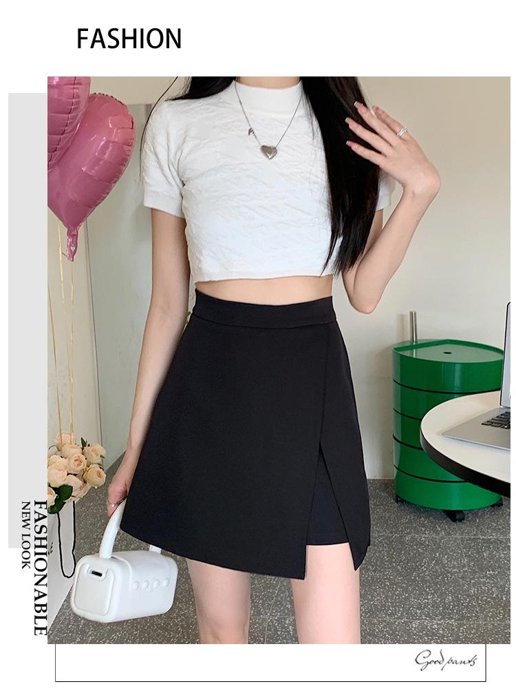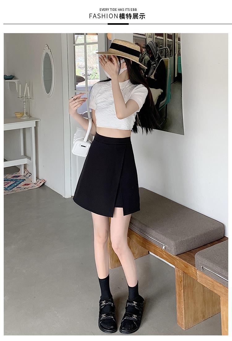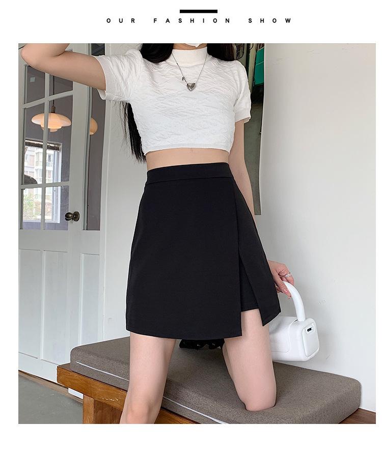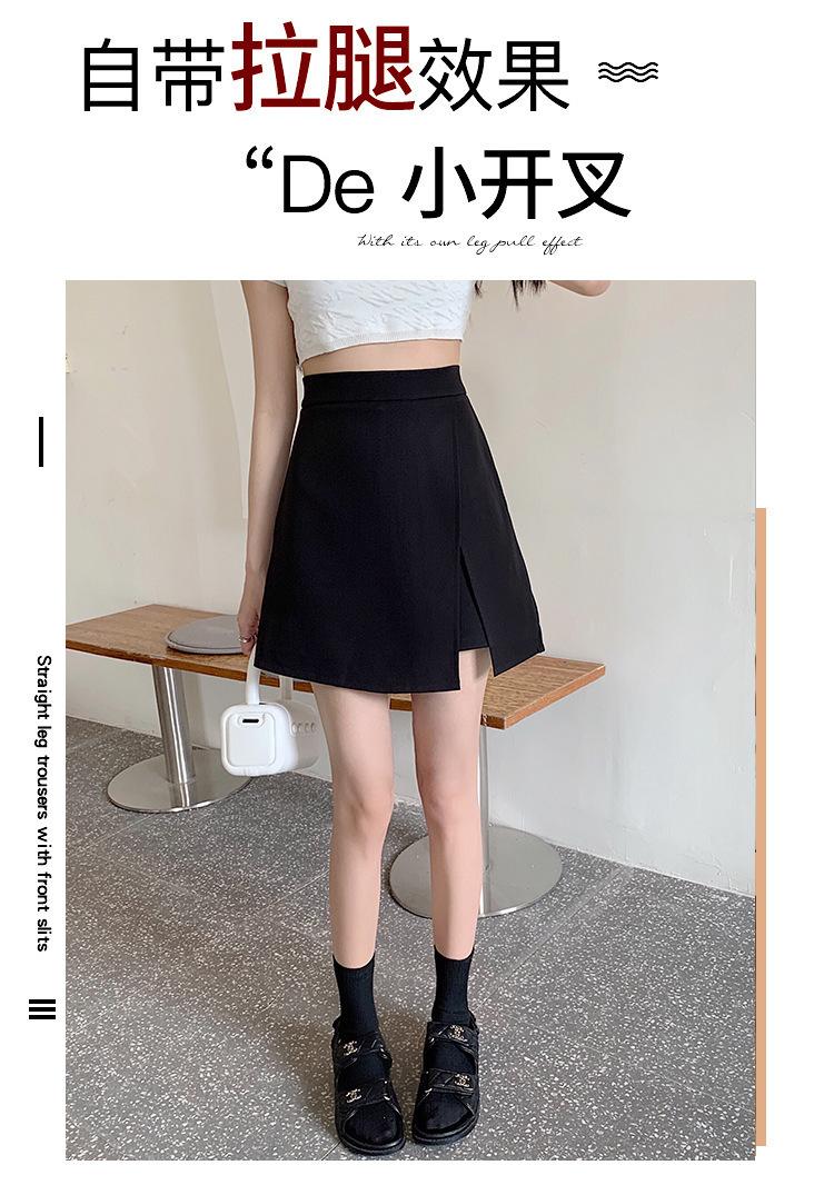 Falda Línea A Verano para Mujer Cintura Alta Look Adelgazante 2025 Nueva Talla Grande mm Asimétrica Negra Abertura Cubre Caderas Culottes