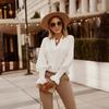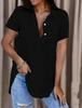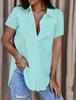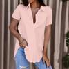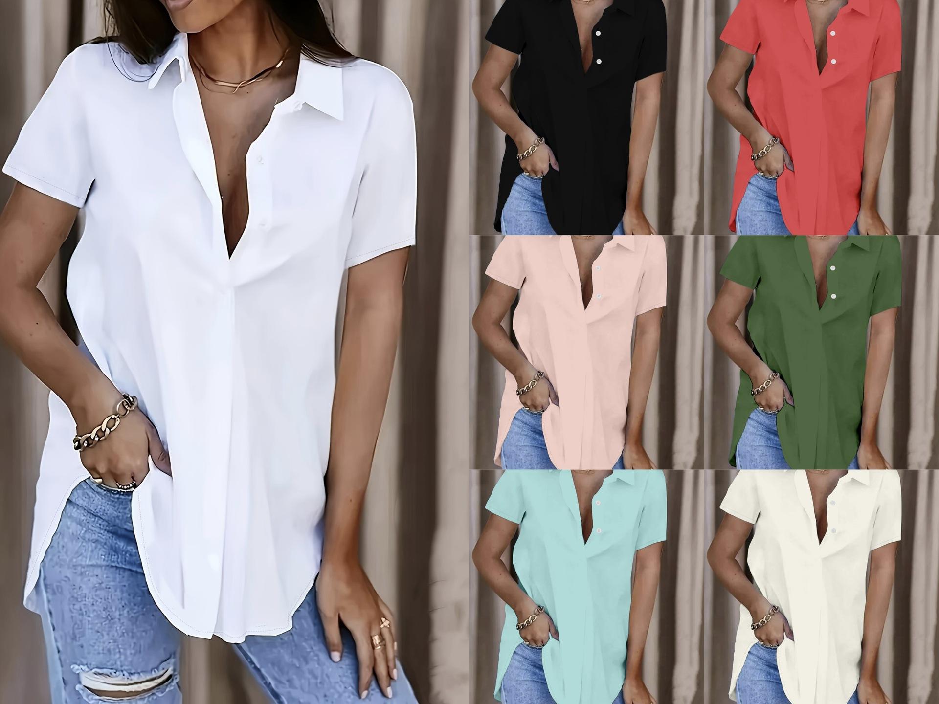 2024 AliExpress wish Amazon Explosiones Verano Simple Color Sólido Cuello en V Botón Camisa de Mujer Camisa Mujer