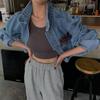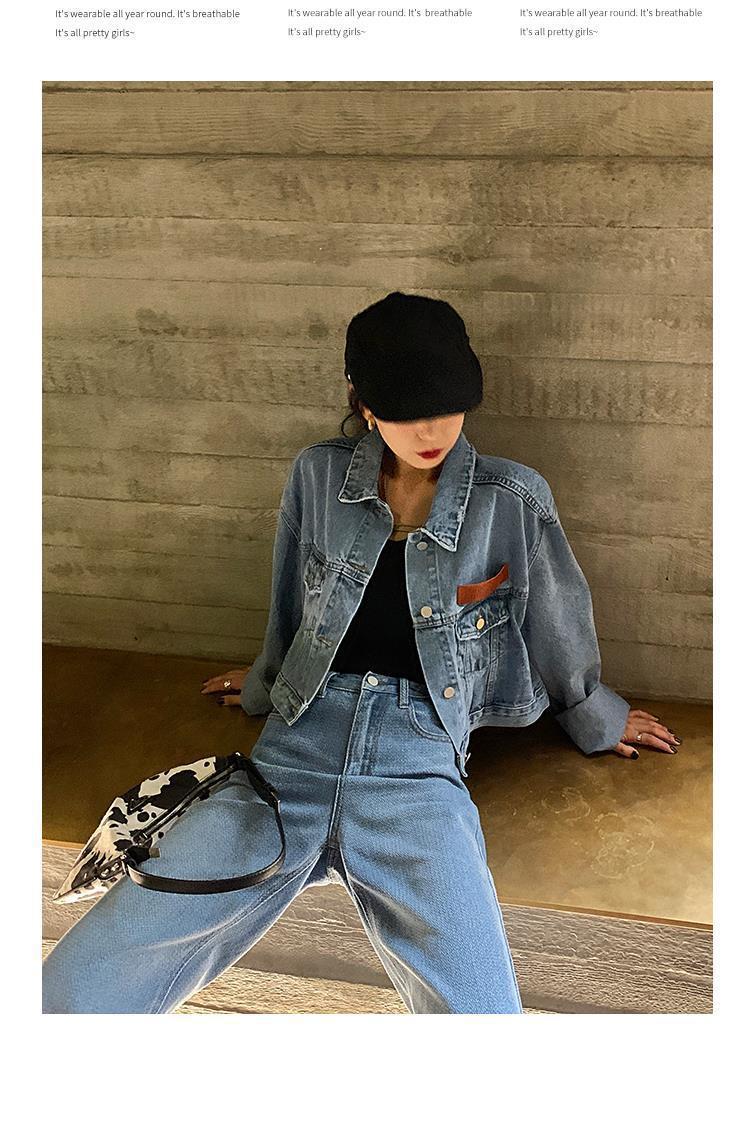 Tops de Otoño de Manga Larga 2023 Nuevo Primavera y Otoño Trendy Ins Holgado Estilo Coreano Bf Versátil Chaqueta de Mezclilla Estilo Corto para Mujer