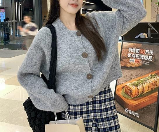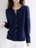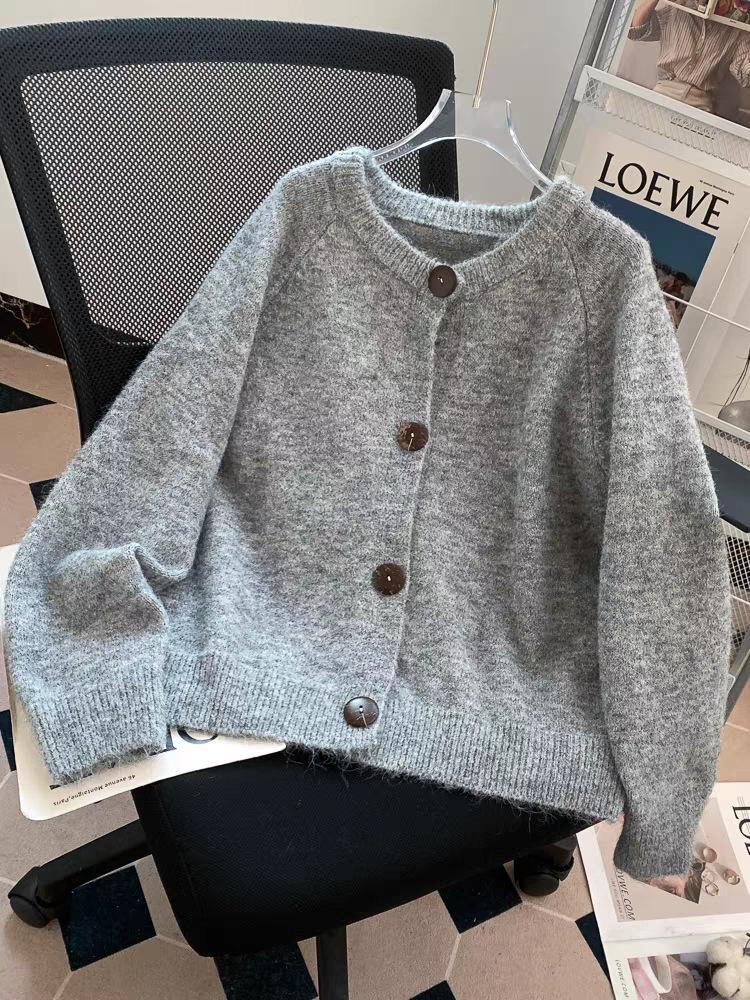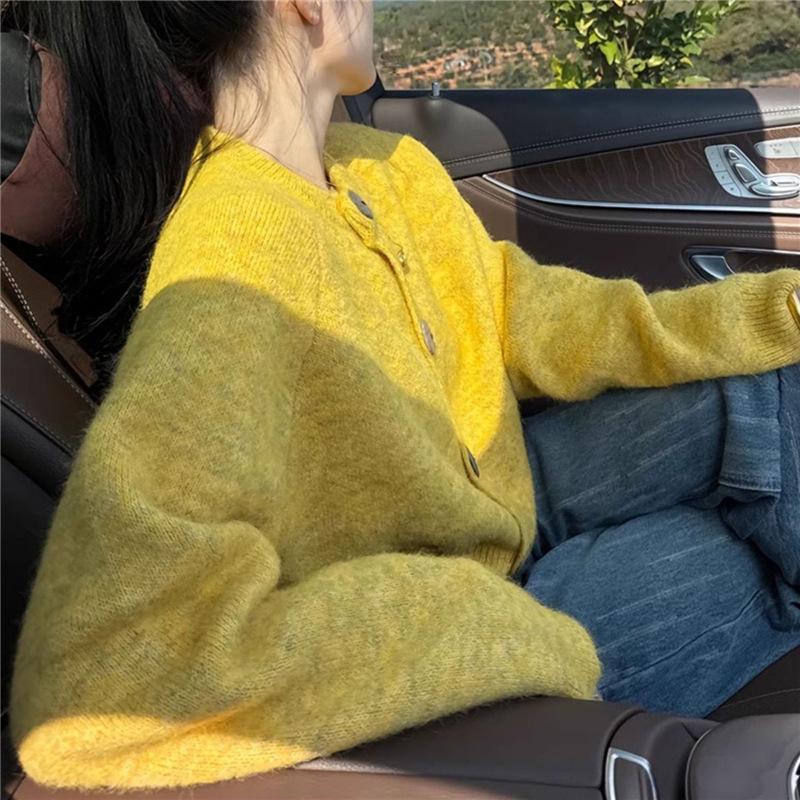 Sentido del Diseño Color Sólido Otoño e Invierno Nuevo Suéter Tejido Abrigo de Mujer Cuello Redondo Estilo Casual Holgado Cárdigan