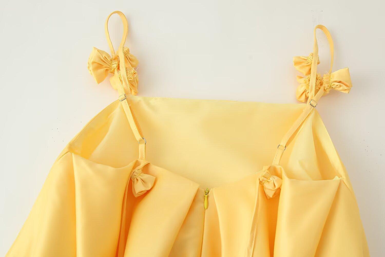 Exportación Transfronteriza Ropa de Mujer 2025 Verano Estilo Europeo y Americano Decoración de Flores Estéreo Vestido Corto de Tirantes de Color Puro M6251F