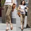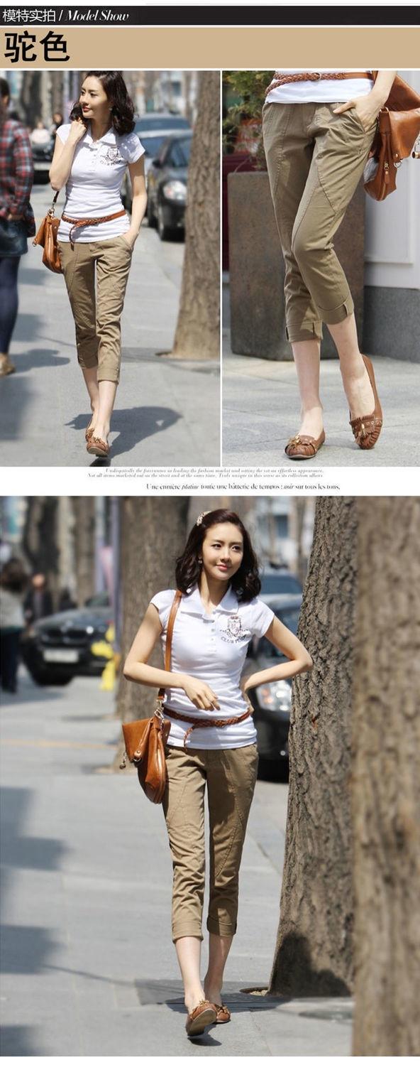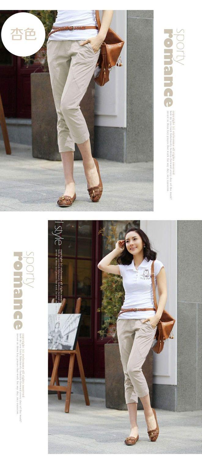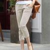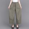 Pantalones de 7 puntos Nuevos Pantalones Casuales de Algodón para Mujer Primavera y Verano Versátiles Adelgazantes Elásticos de Cintura Alta para Mamá de Mediana Edad Pantalones Harem Cortos
