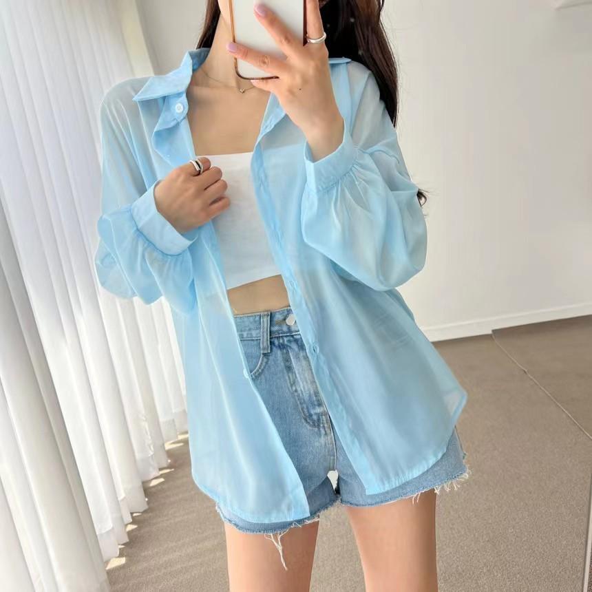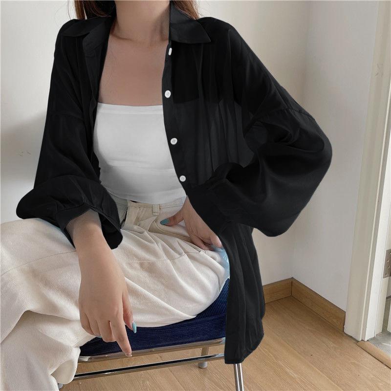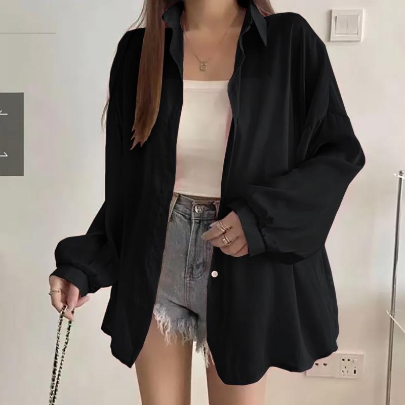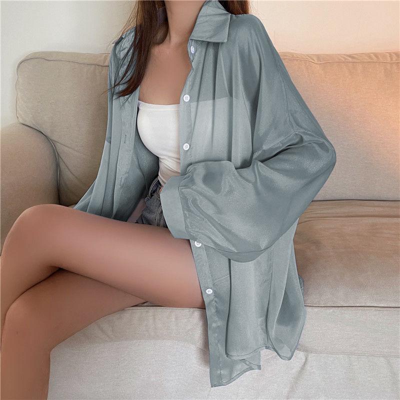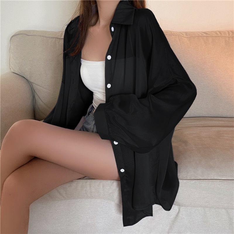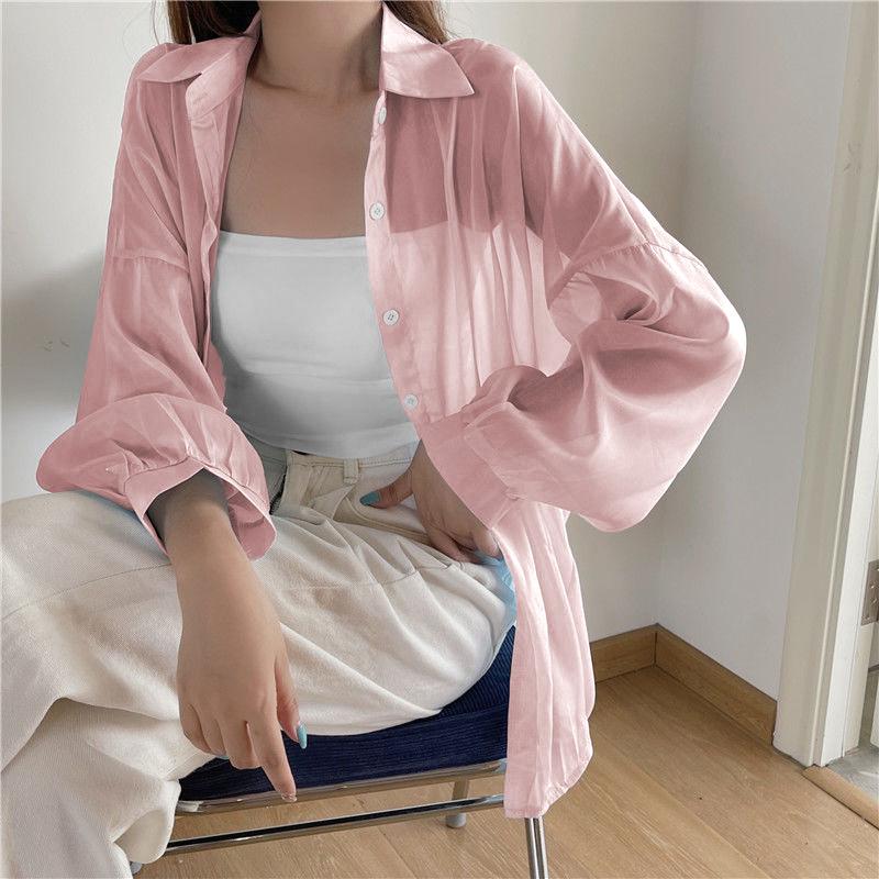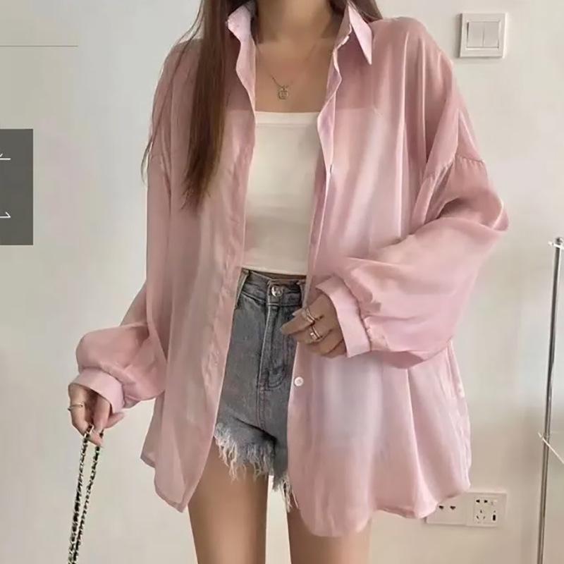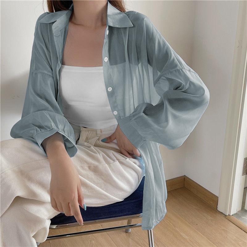 Protector Solar Top Verano para Mujer Nuevo Estilo Cárdigan Exterior Chaqueta Delgada Holgada Camisa para Mujer Sentido del Diseño Camisa Color Sólido
