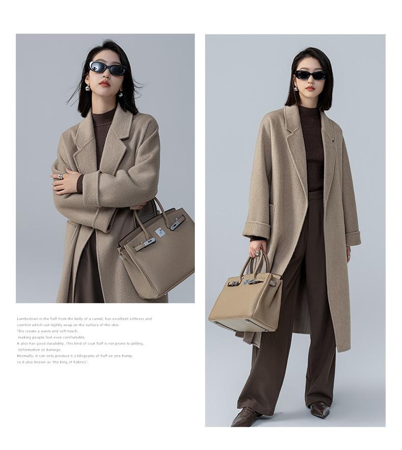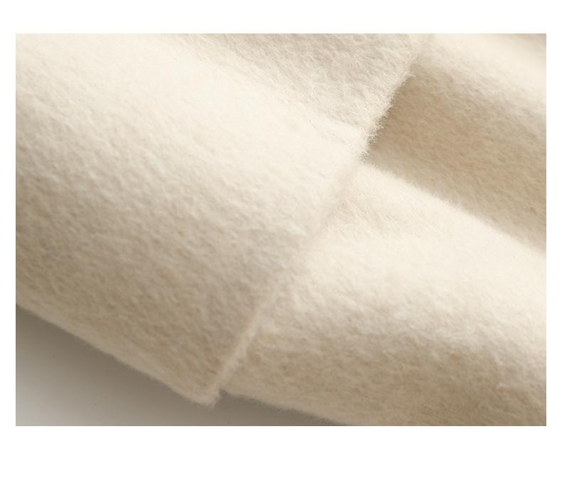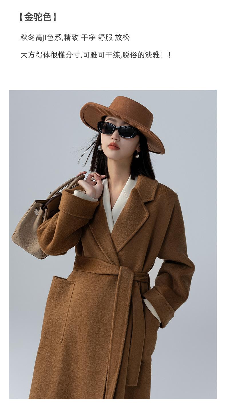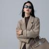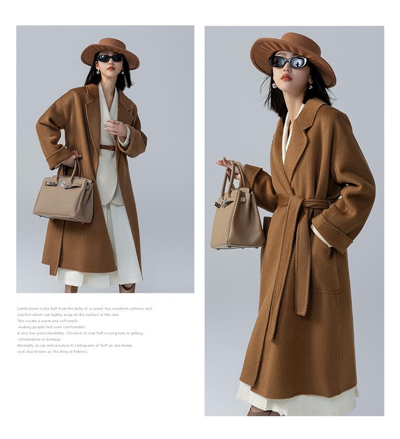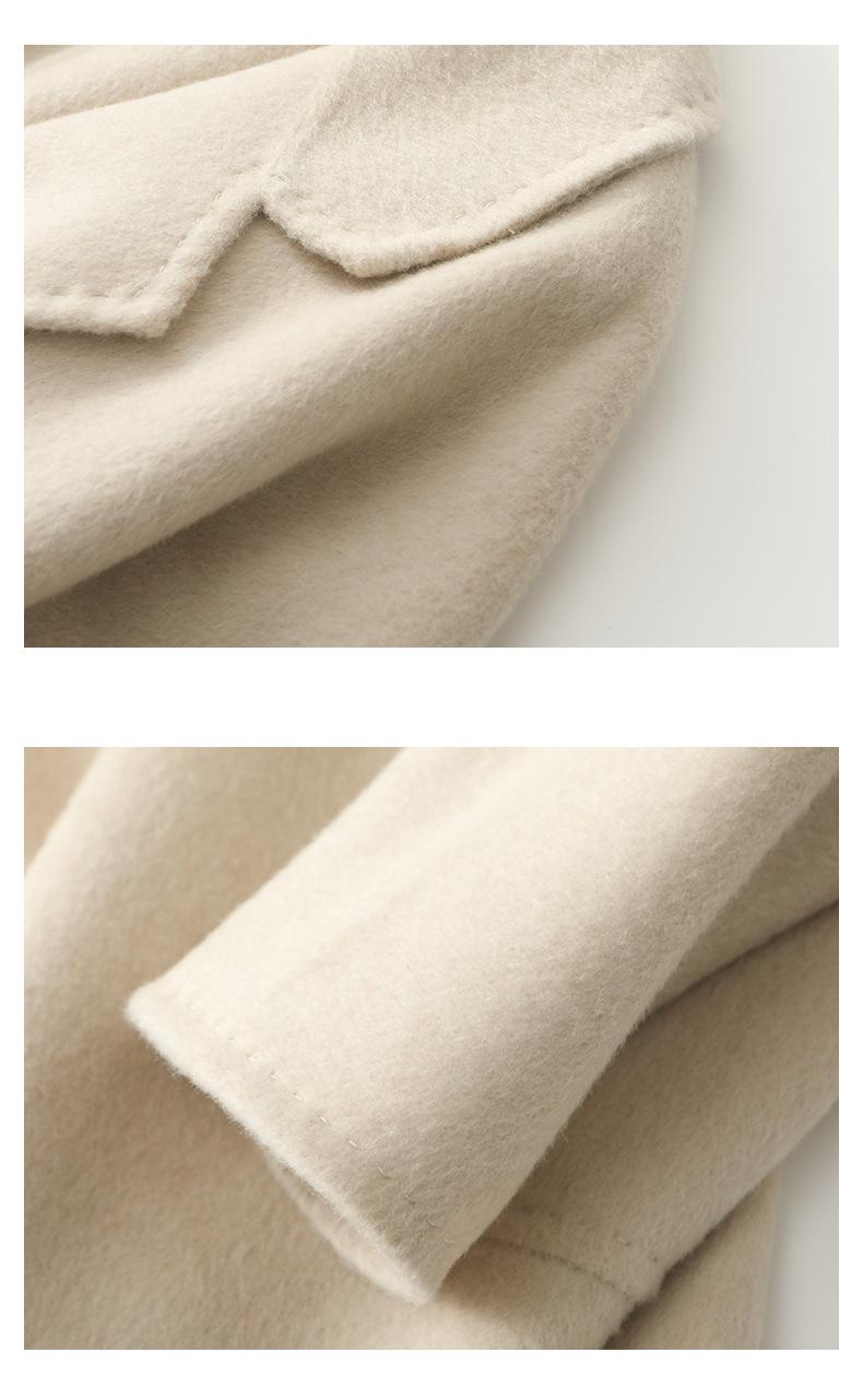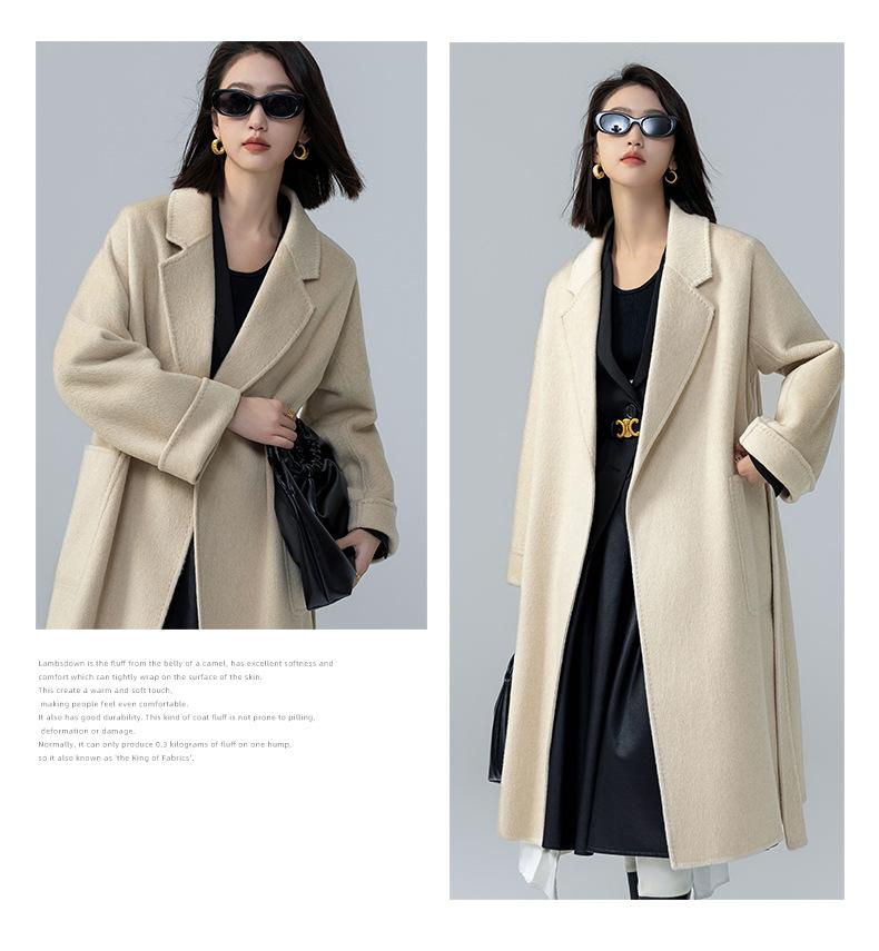 Otoño e invierno 2024 nuevo traje de terciopelo camel con cuello de solapa, paño de lana de doble cara, holgado, color sólido con bolsillo, abrigo largo de encaje para mujer