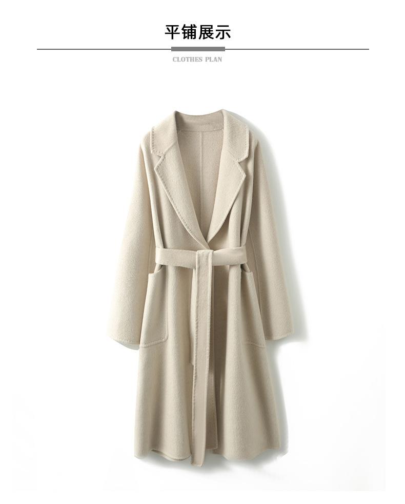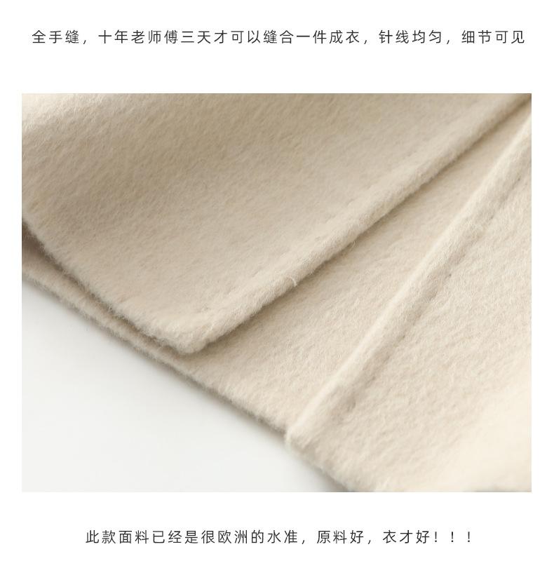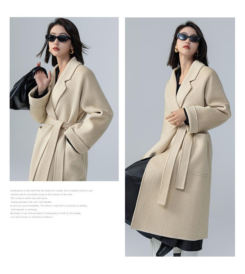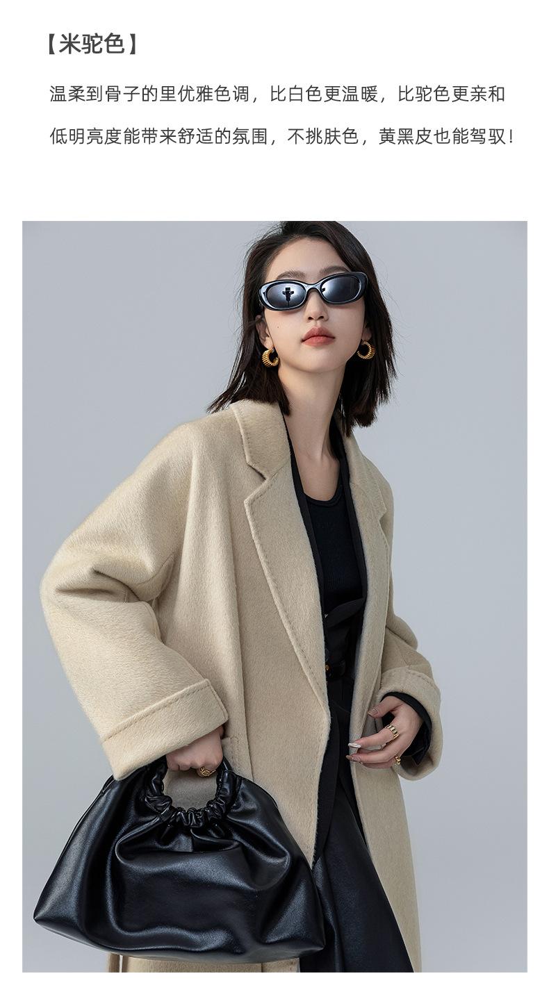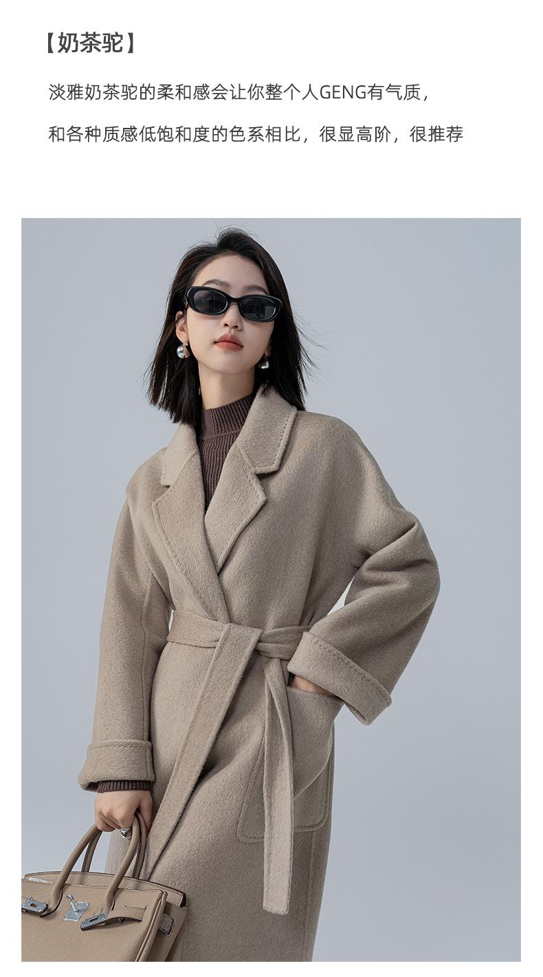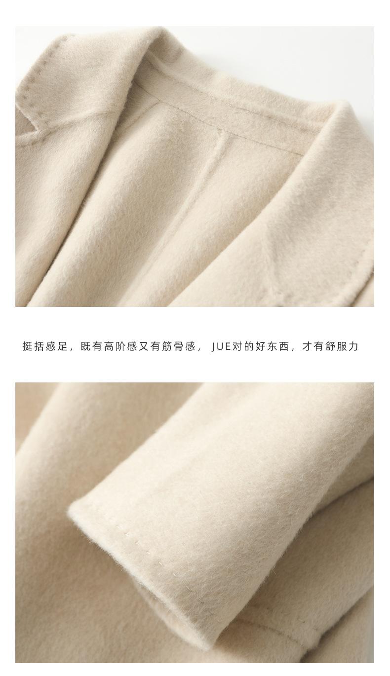 Otoño e invierno 2024 nuevo traje de terciopelo camel con cuello de solapa, paño de lana de doble cara, holgado, color sólido con bolsillo, abrigo largo de encaje para mujer
