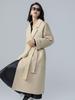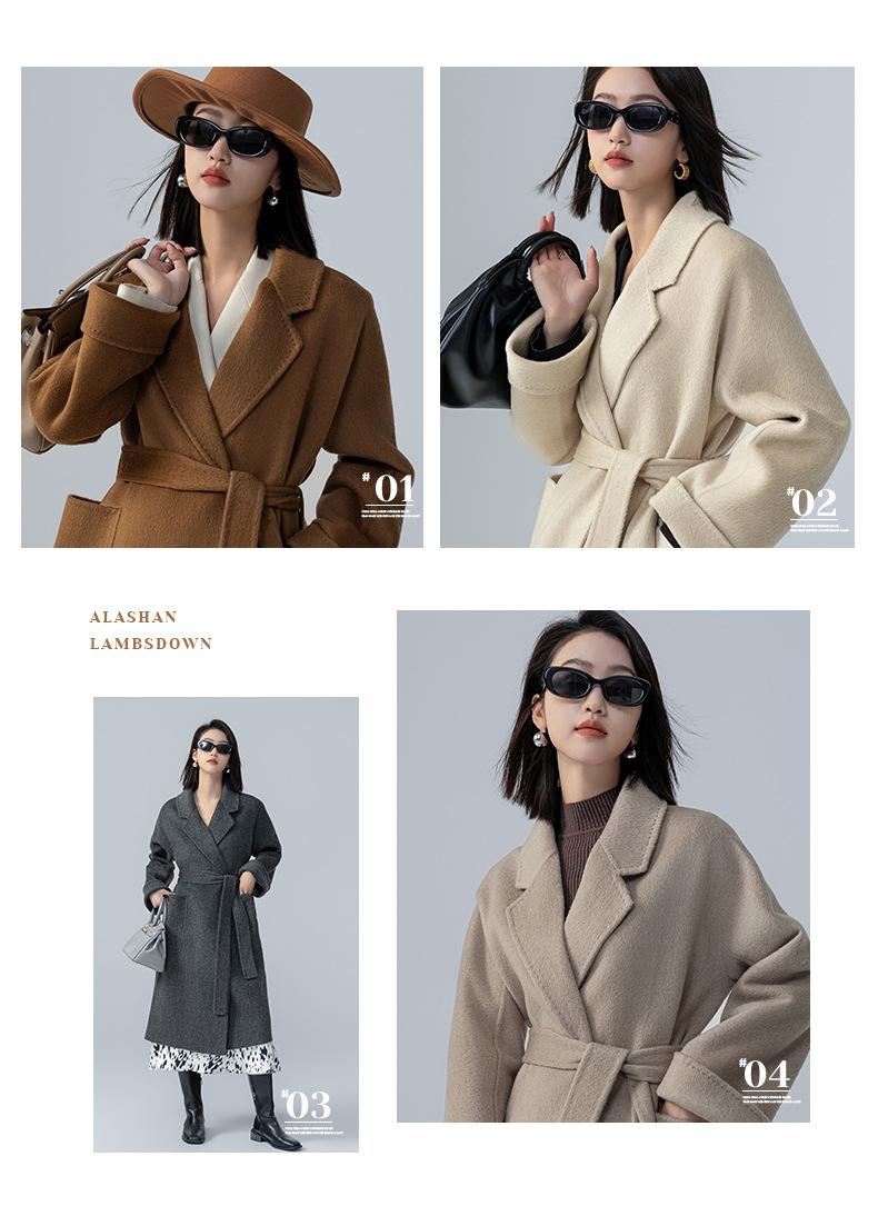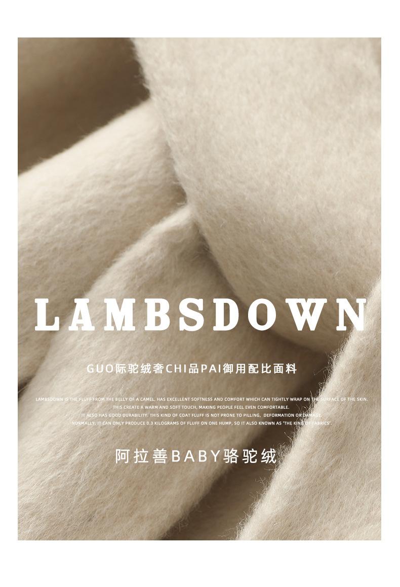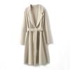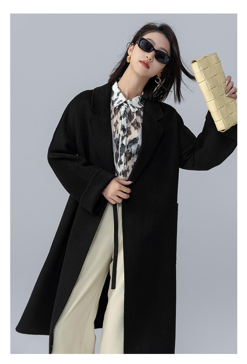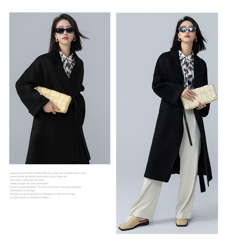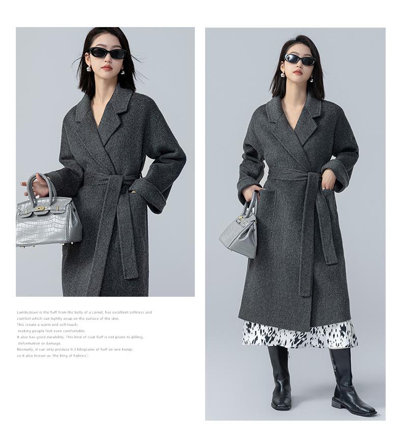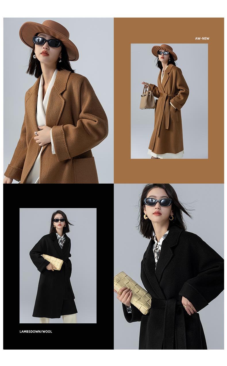 Otoño e invierno 2024 nuevo traje de terciopelo camel con cuello de solapa, paño de lana de doble cara, holgado, color sólido con bolsillo, abrigo largo de encaje para mujer