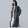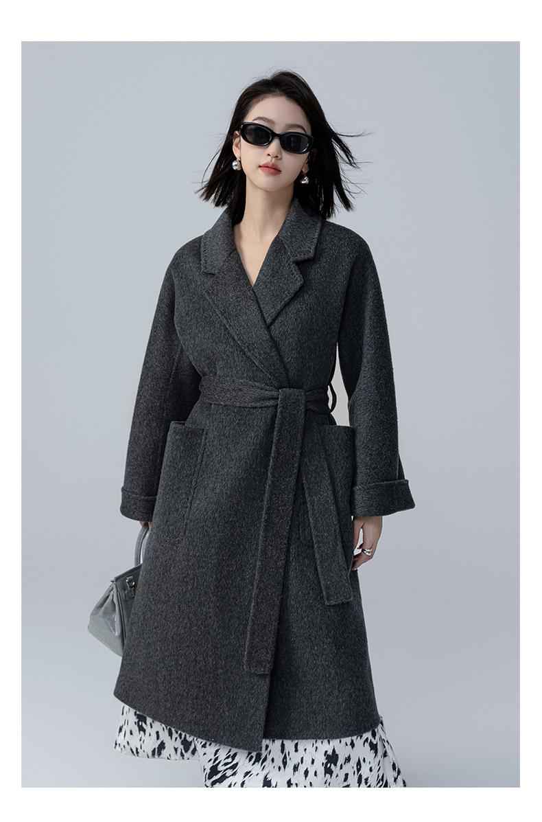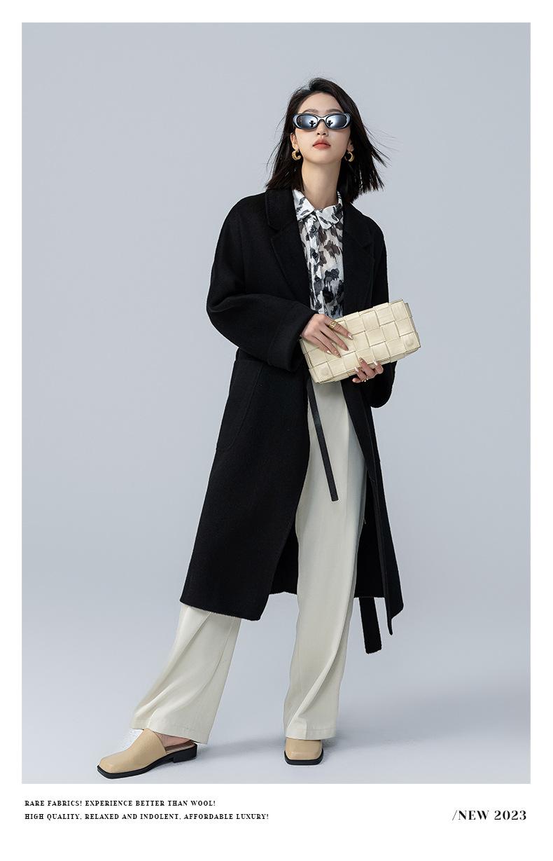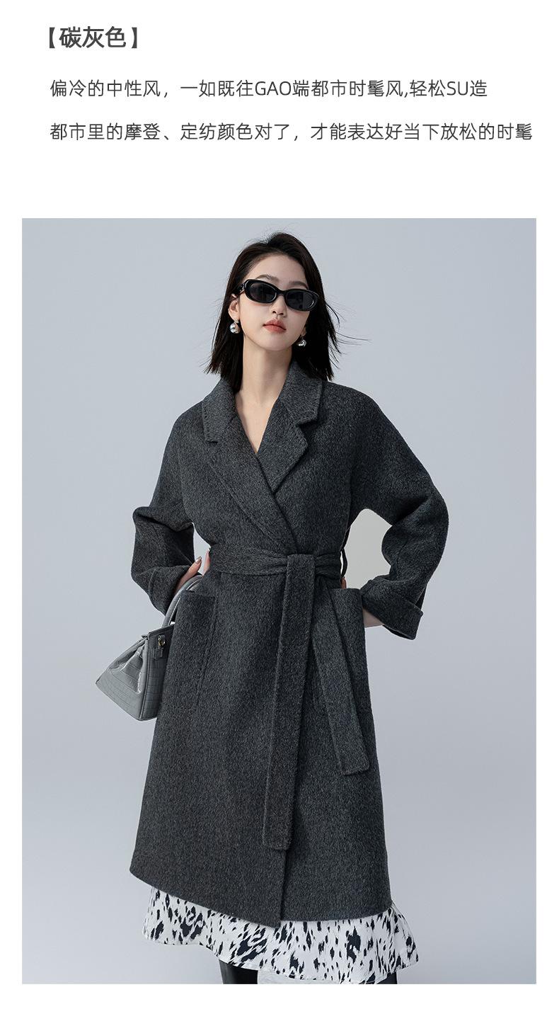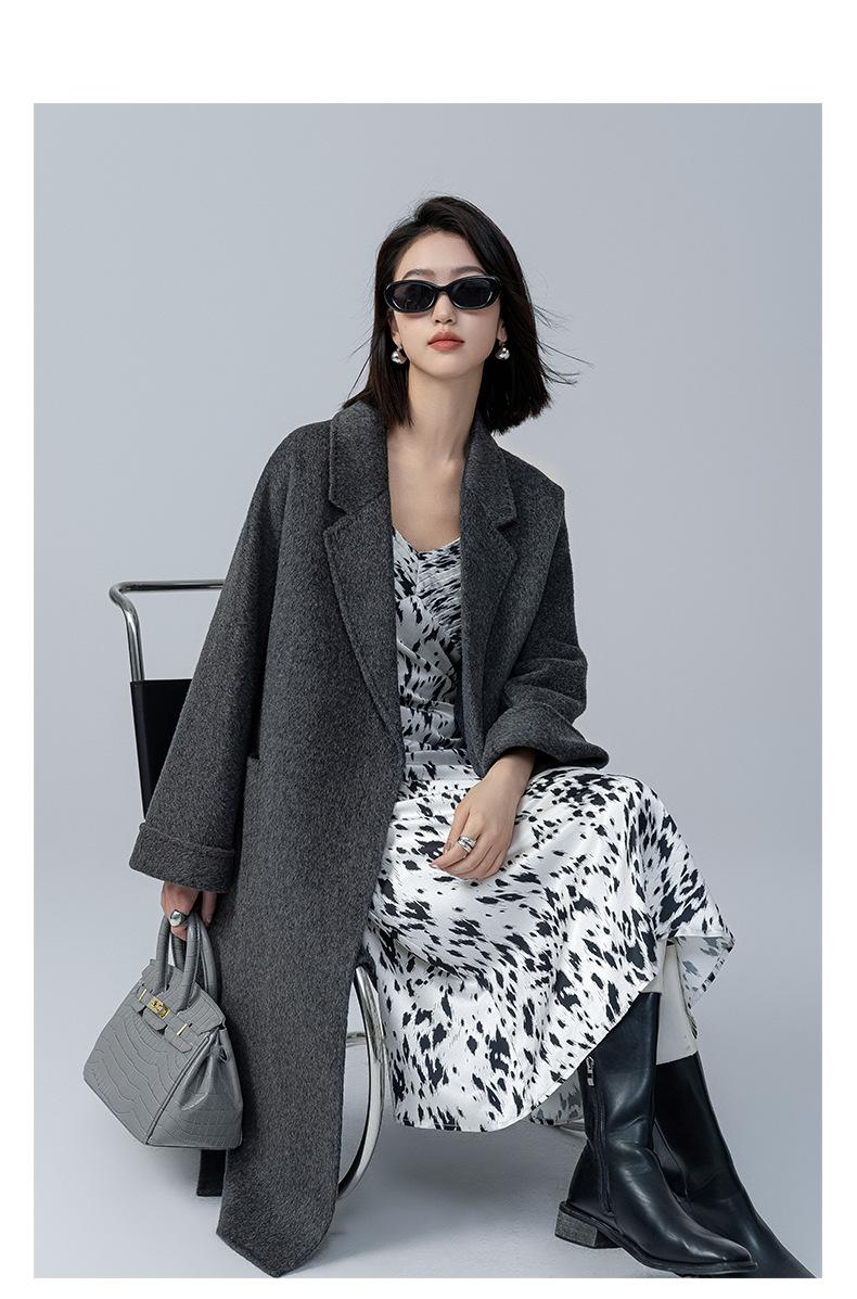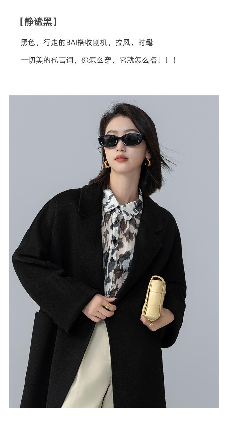 Otoño e invierno 2024 nuevo traje de terciopelo camel con cuello de solapa, paño de lana de doble cara, holgado, color sólido con bolsillo, abrigo largo de encaje para mujer