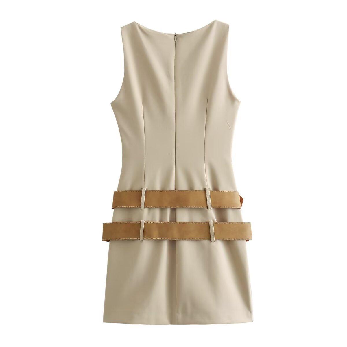 Estilo Europeo y Americano 2024 Verano Nueva Moda Vestido Ajustado sin Mangas con Doble Cinturón Venta al por Mayor