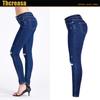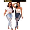 Pantalones de mezclilla europeos y americanos para mujer de Amazon, pantalones lápiz elásticos ajustados rasgados para mujer