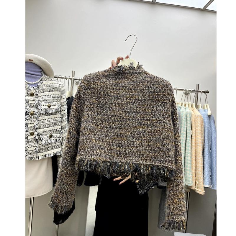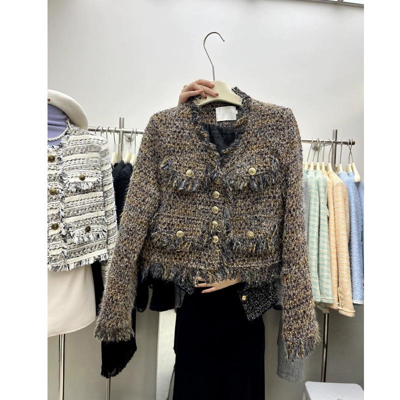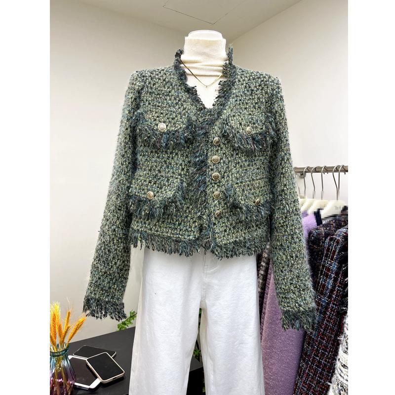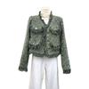 Ropa de Primavera Otoño para mujer nuevo estilo Chanel verde borla cuello en V bolsillo cárdigan holgado adelgazante abrigo manga larga moda