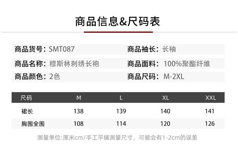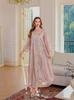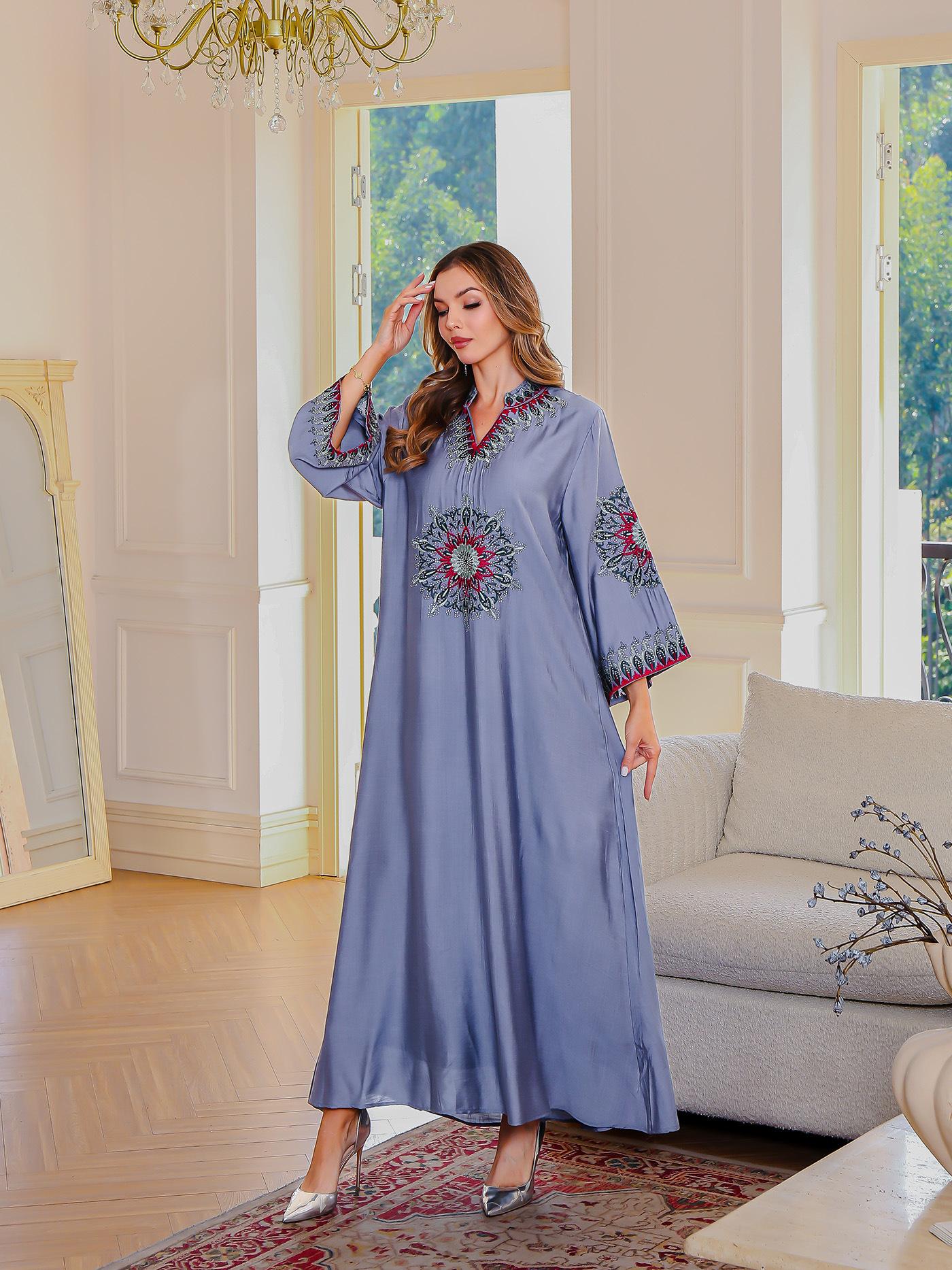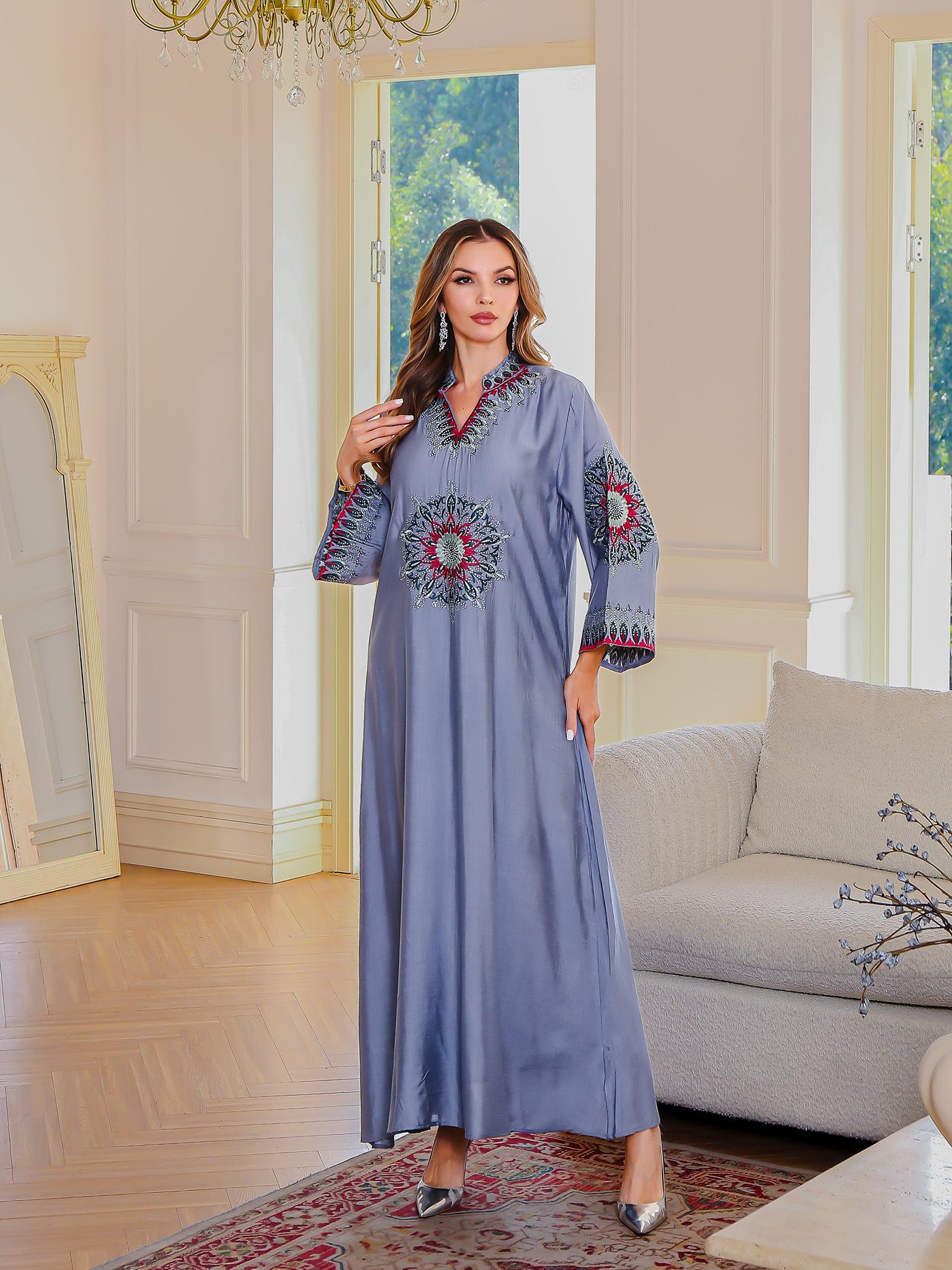 En stock Abaya musulmana bordada bata de mujer bordado detalle vestido suelto ropa de Oriente Medio bata