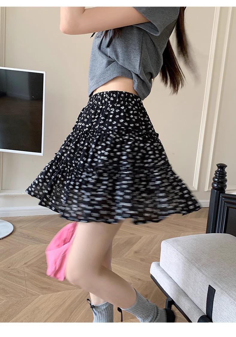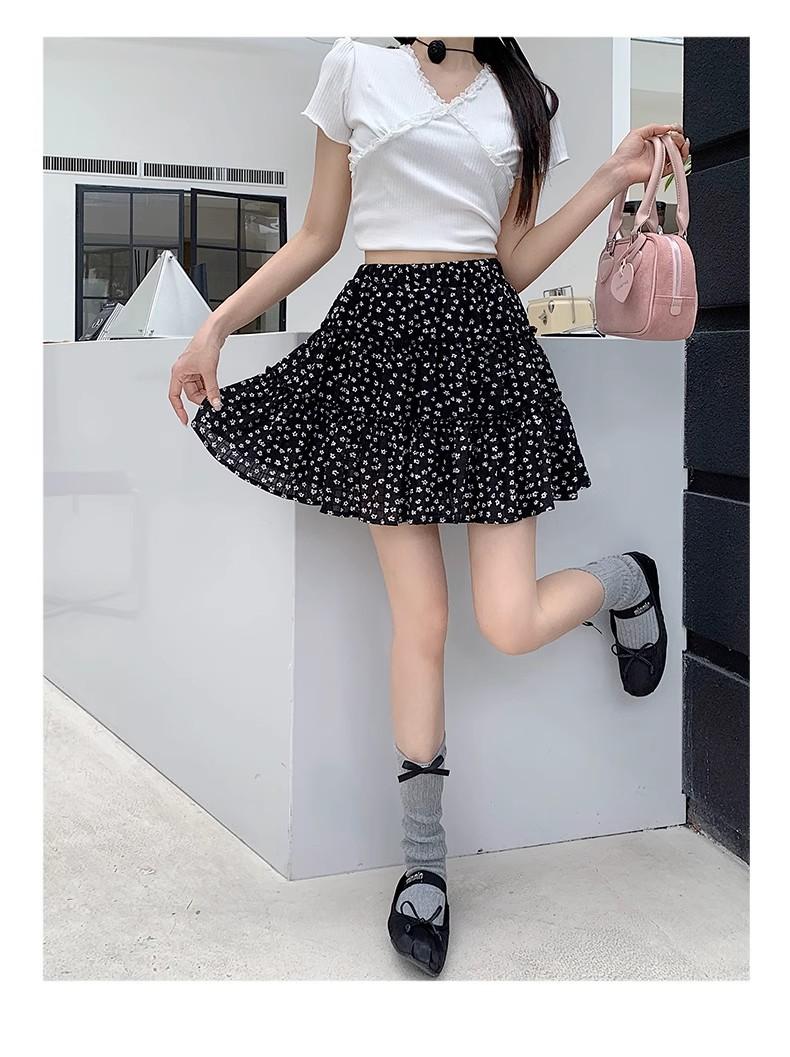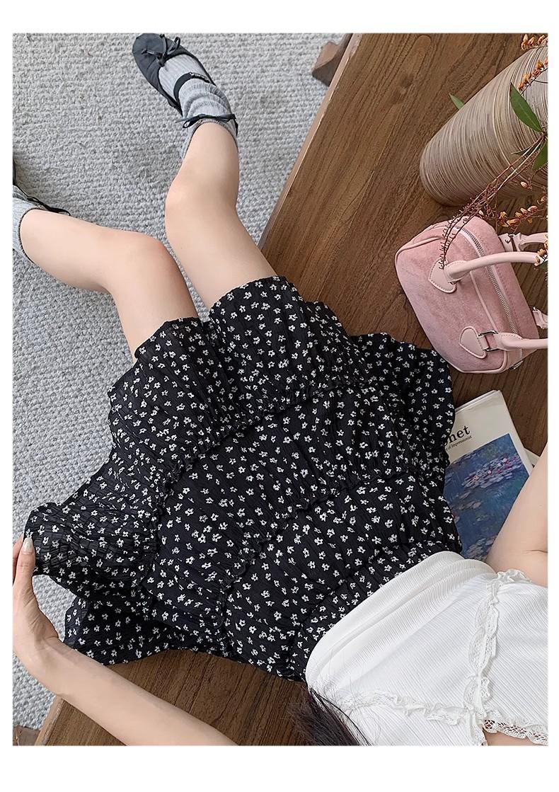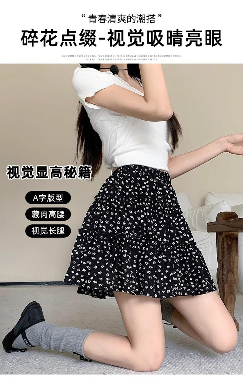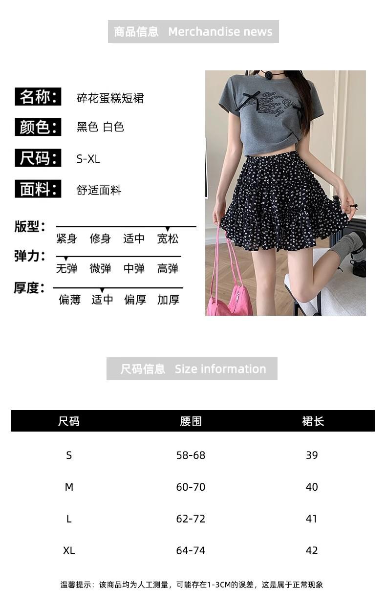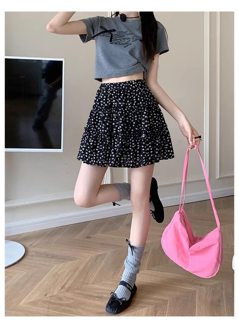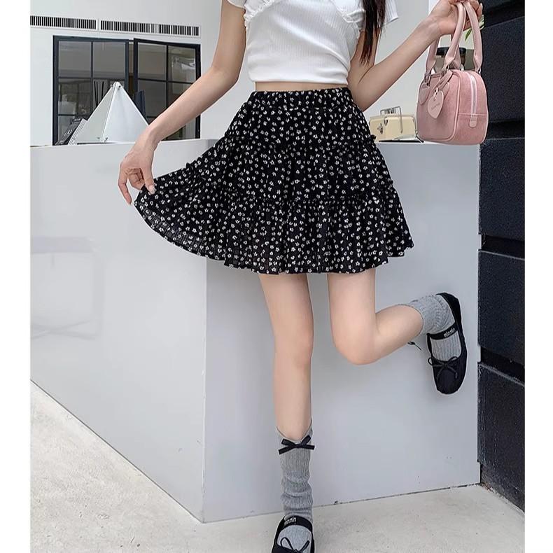 Falda Floral Negra Coreana para Mujer Primavera y Verano 2025 Nueva Falda Pastel Falda Petite A-Line Falda Corta