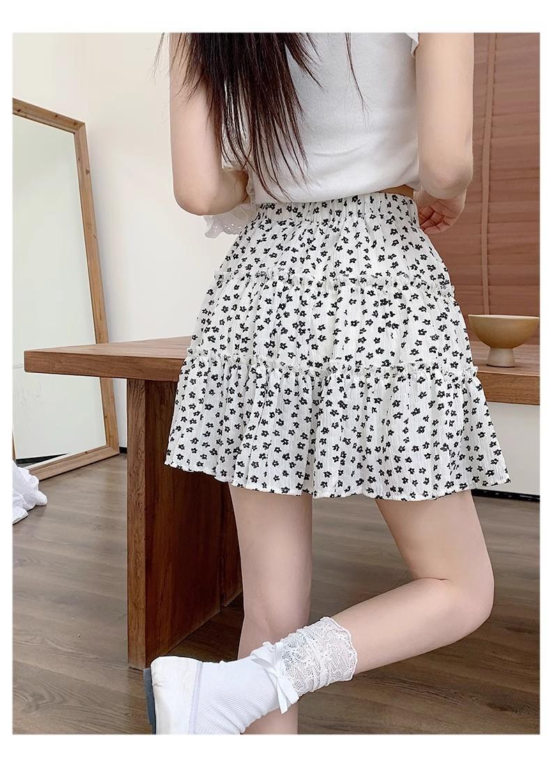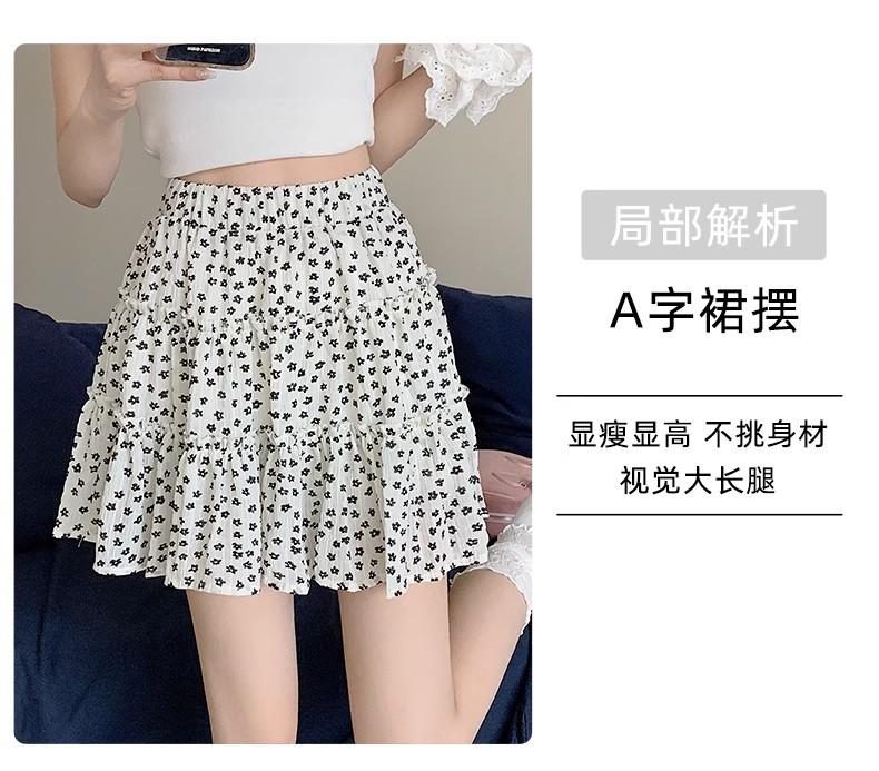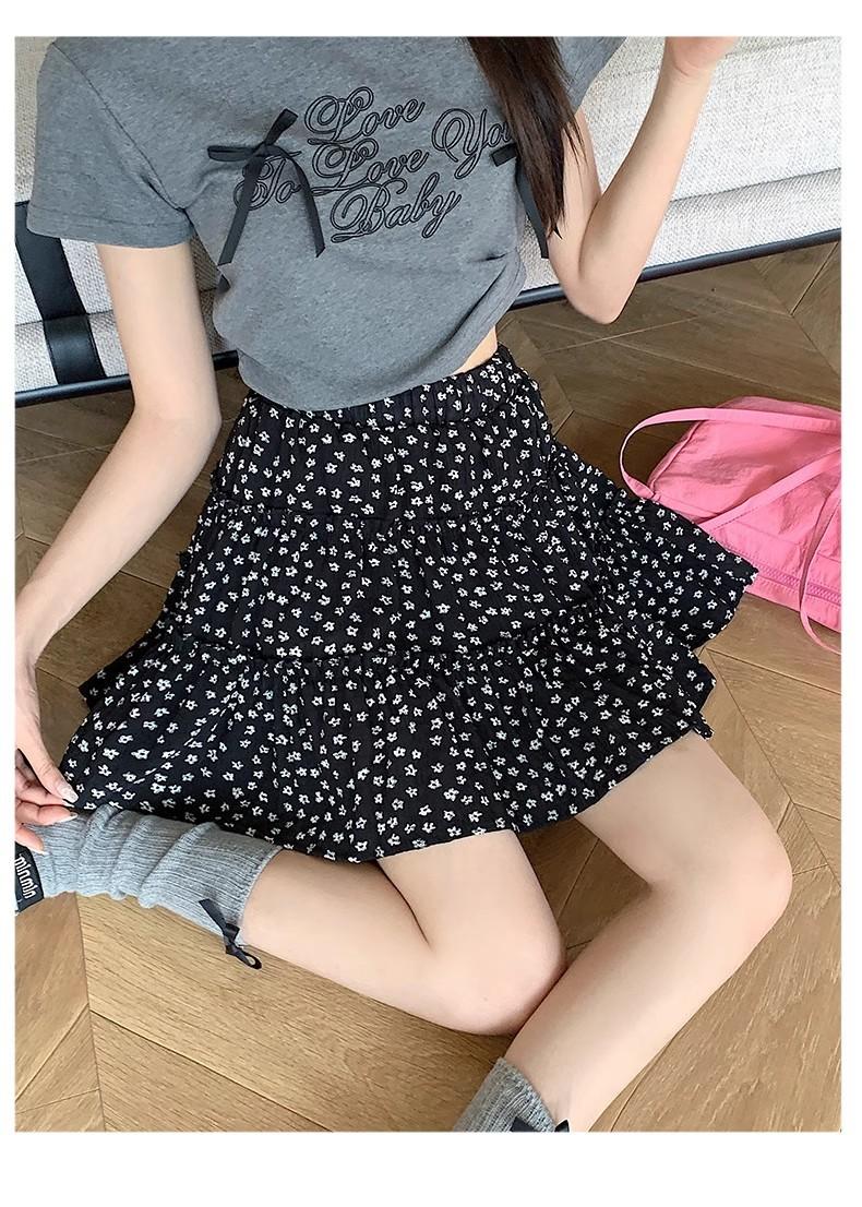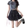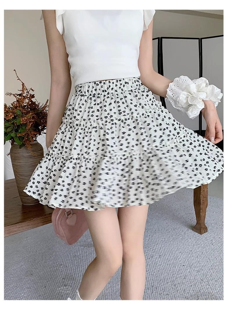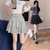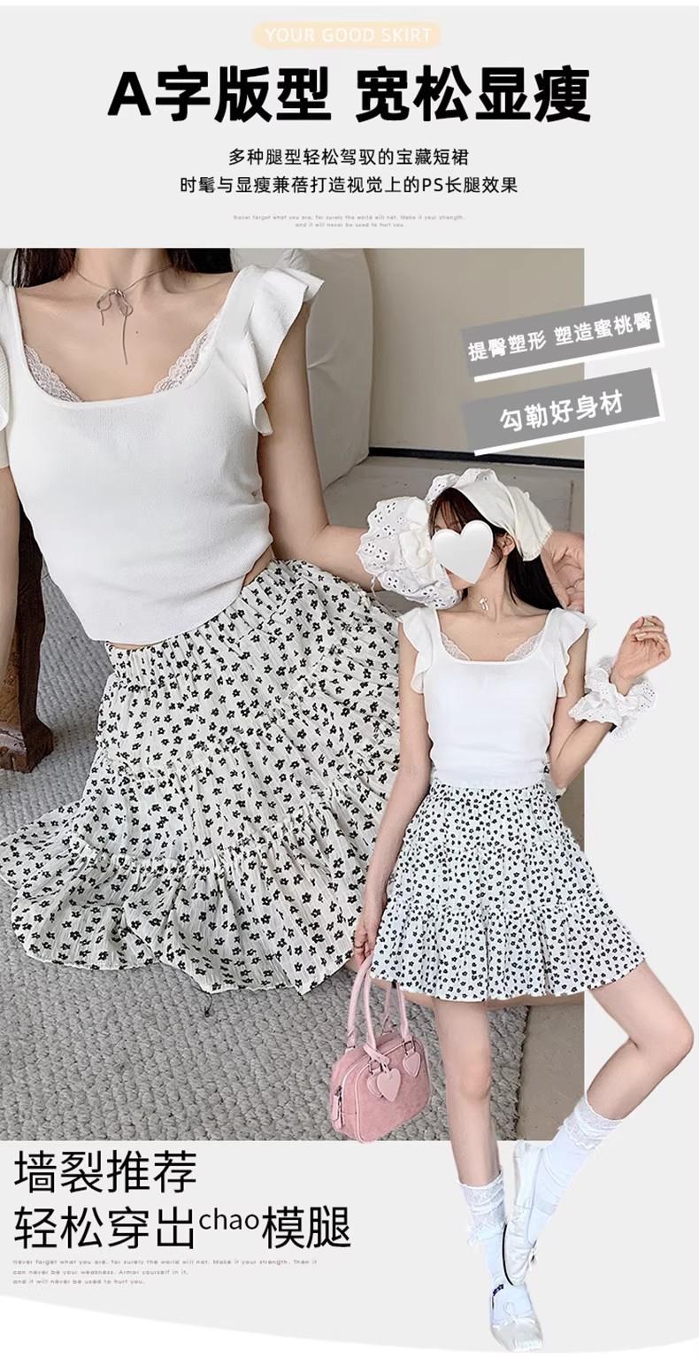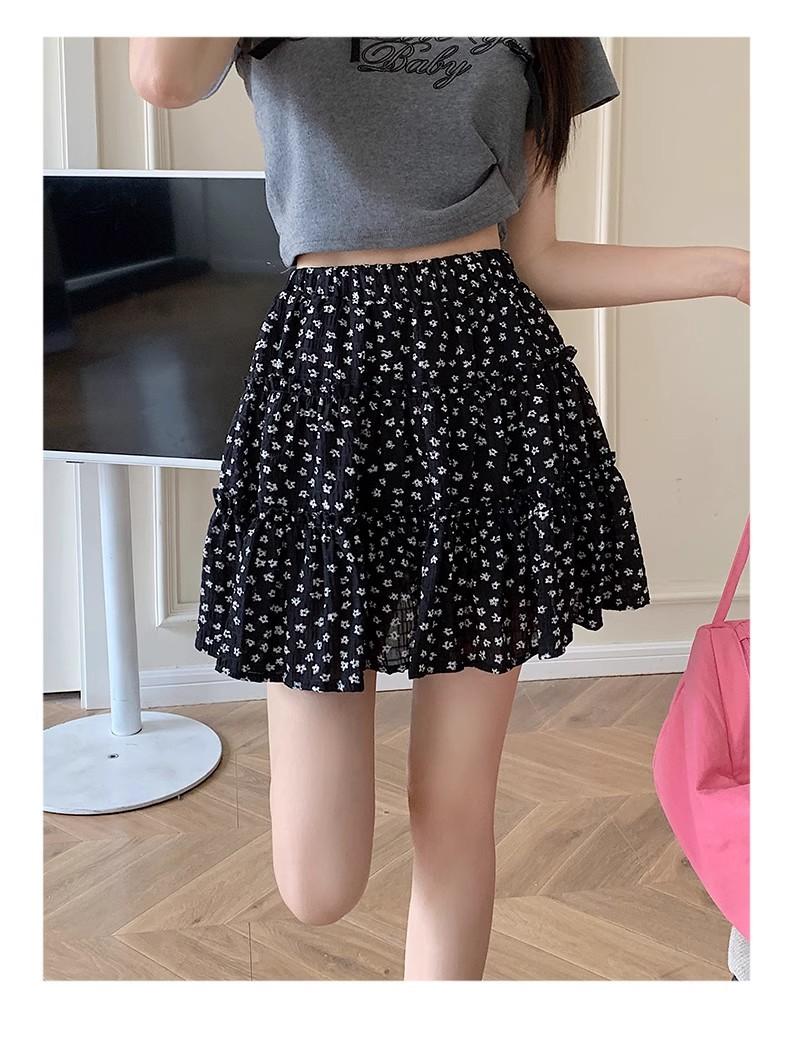 Falda Floral Negra Coreana para Mujer Primavera y Verano 2025 Nueva Falda Pastel Falda Petite A-Line Falda Corta