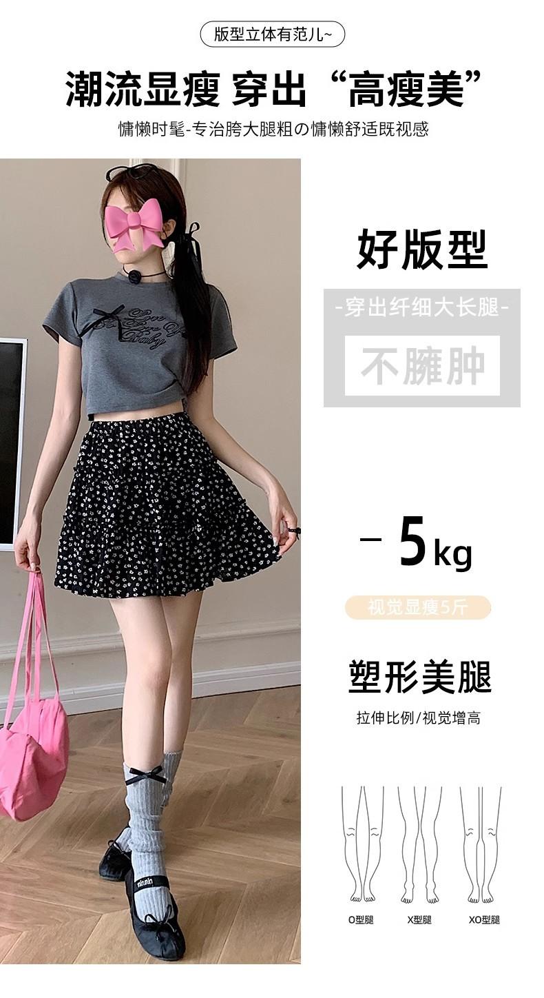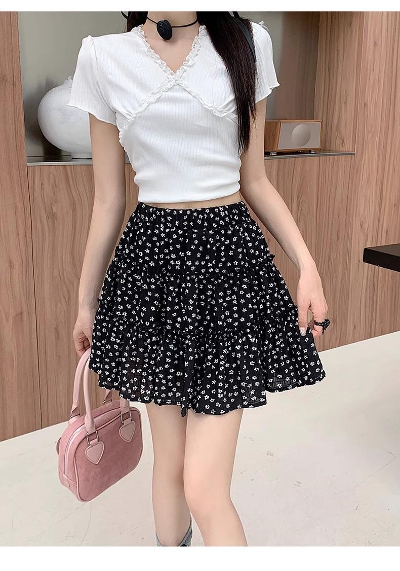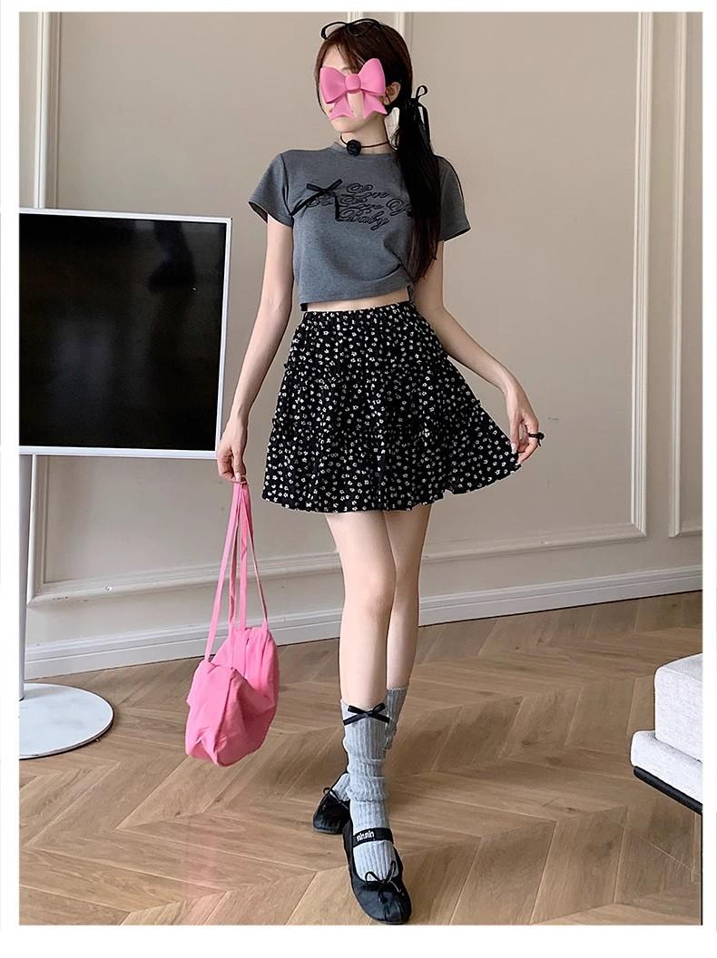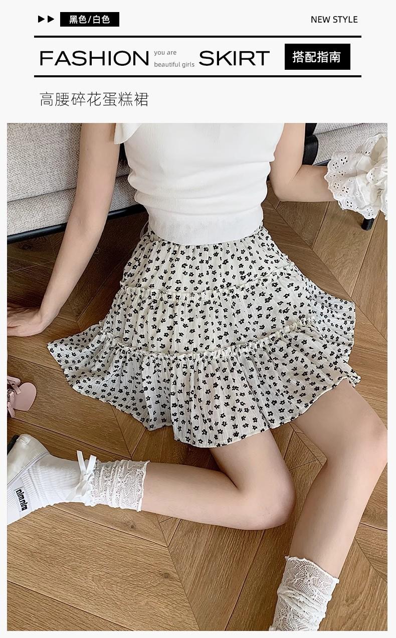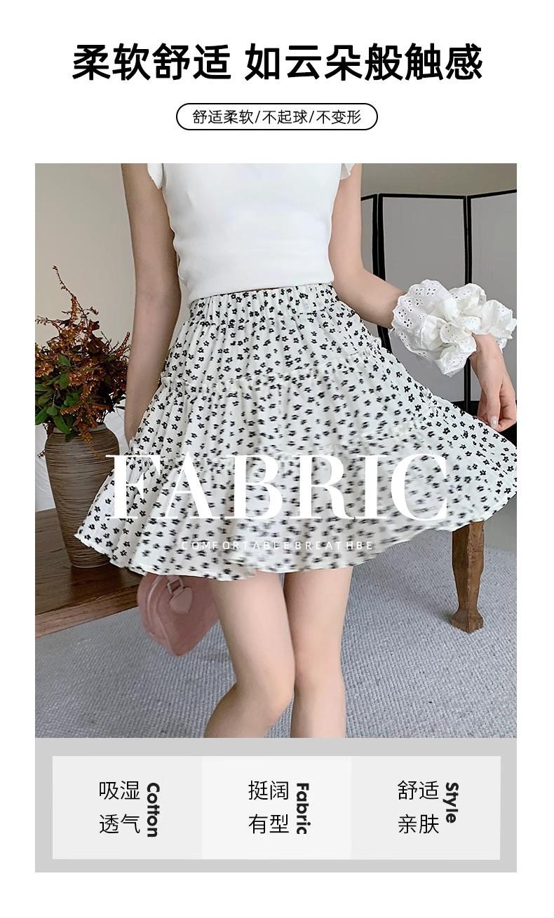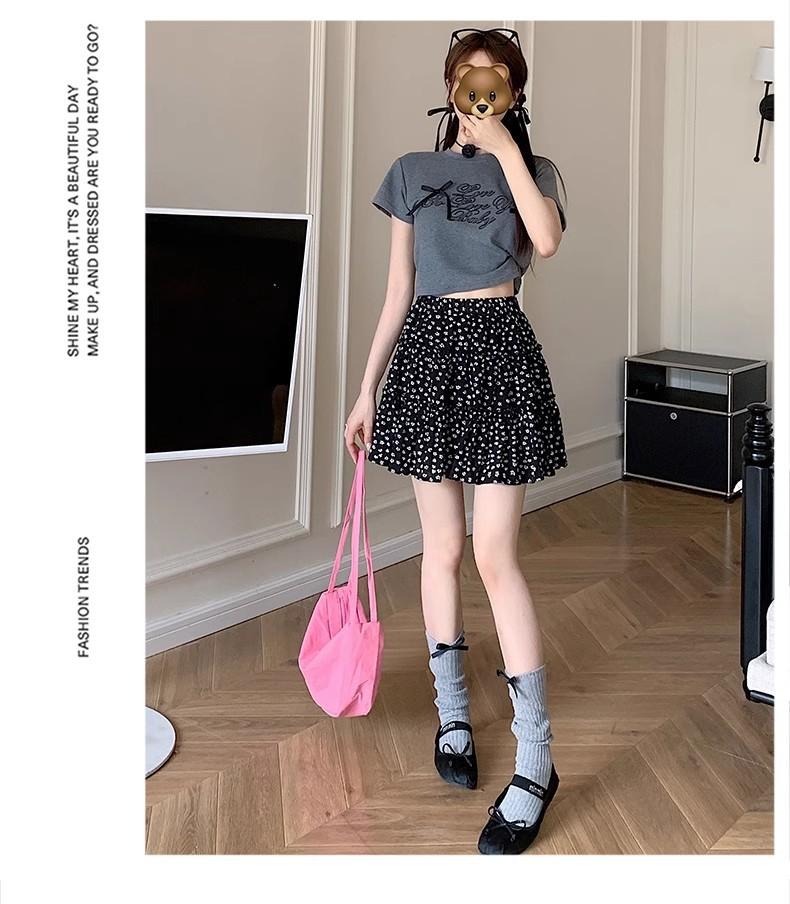 Falda Floral Negra Coreana para Mujer Primavera y Verano 2025 Nueva Falda Pastel Falda Petite A-Line Falda Corta