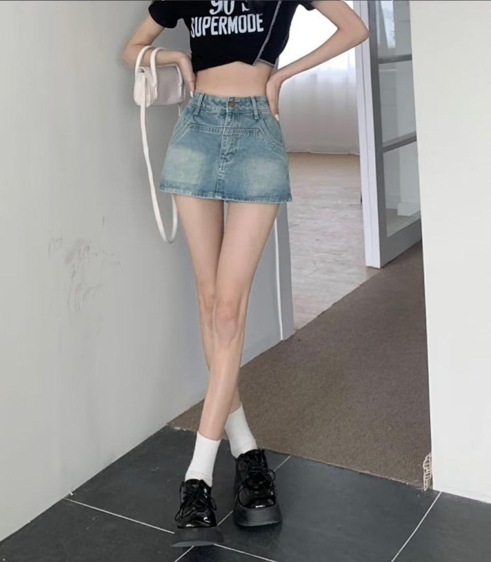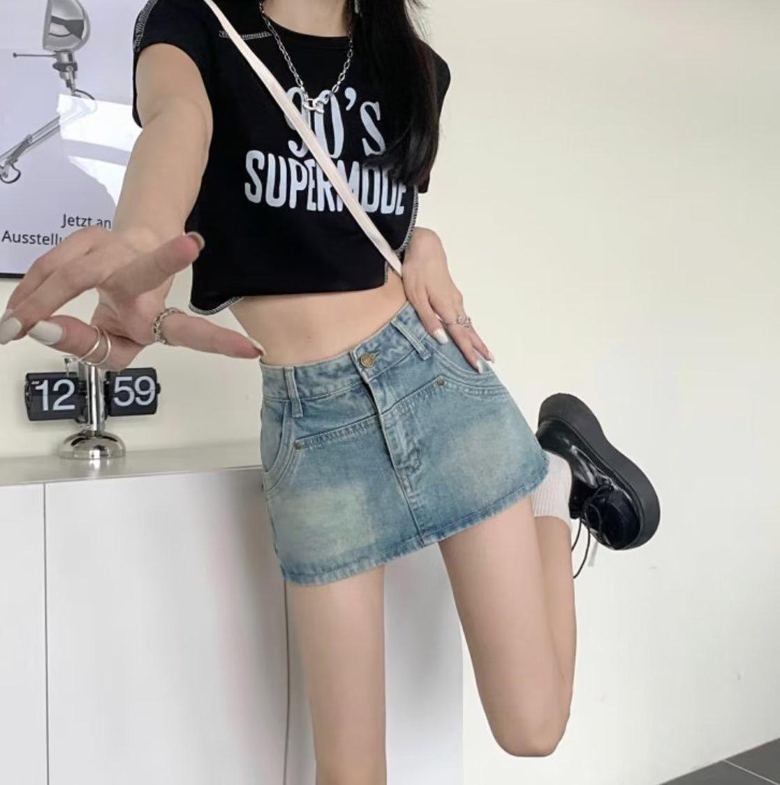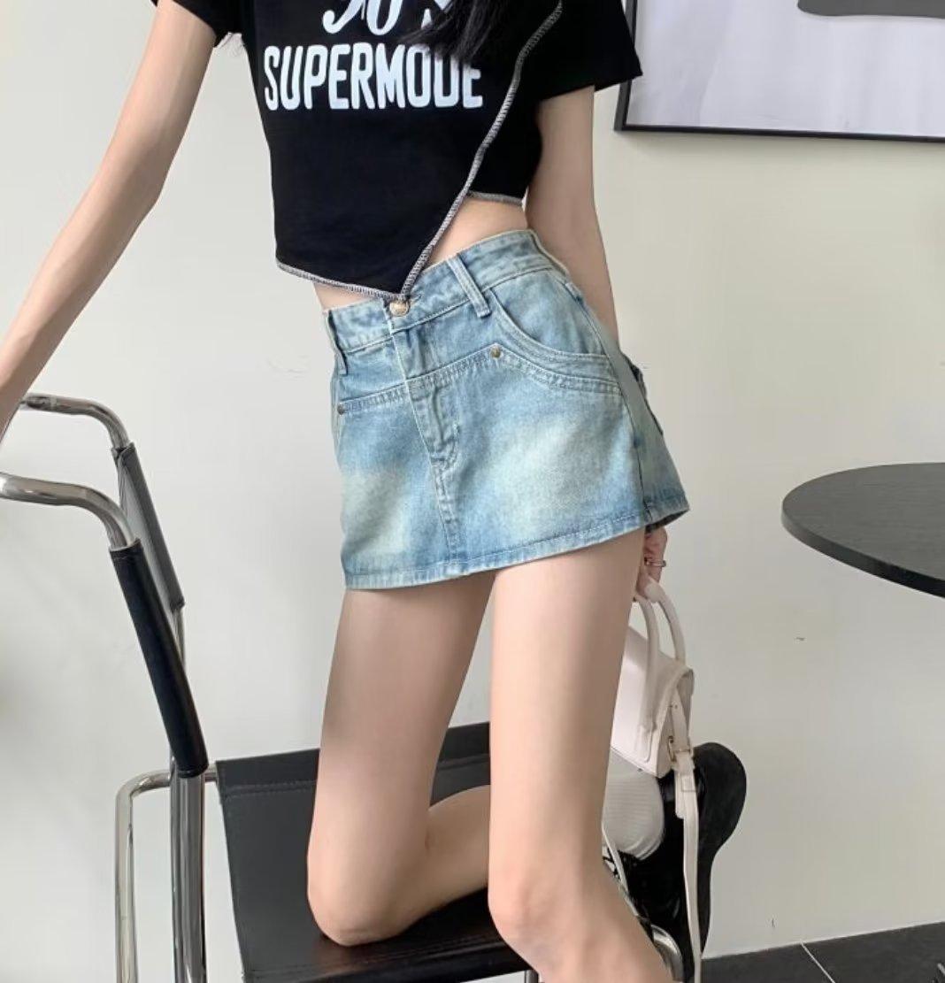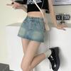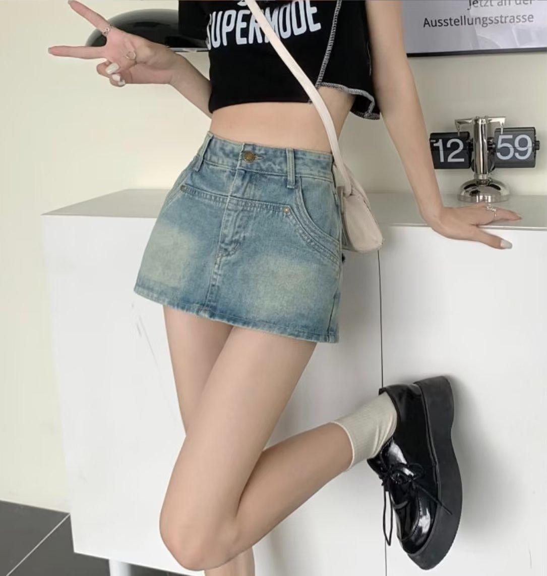 Falda de Mezclilla Vintage Americana para Mujer Otoño Sexy Falda Corta A-Line Media Falda Chica Caliente Cintura Alta Cadera