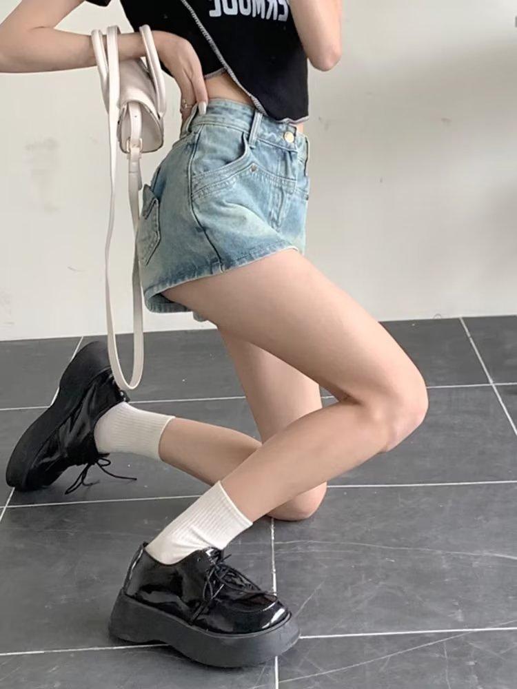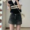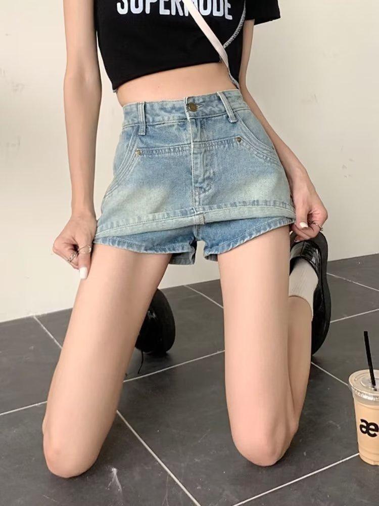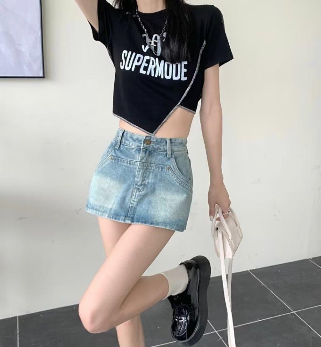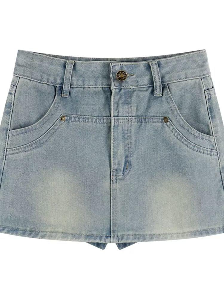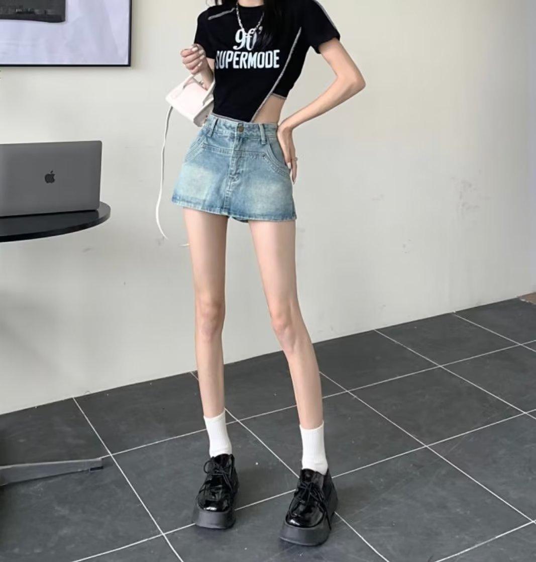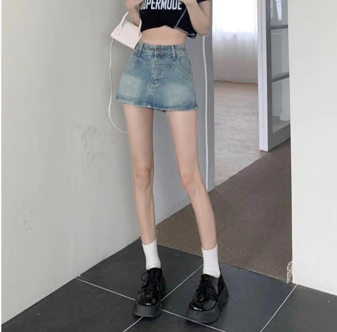 Falda de Mezclilla Vintage Americana para Mujer Otoño Sexy Falda Corta A-Line Media Falda Chica Caliente Cintura Alta Cadera