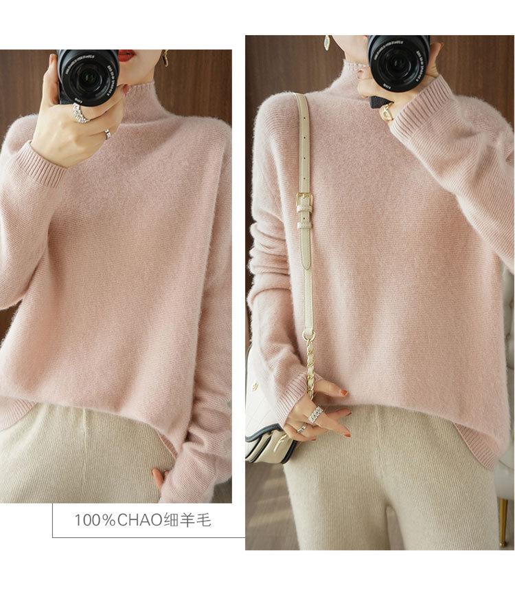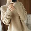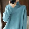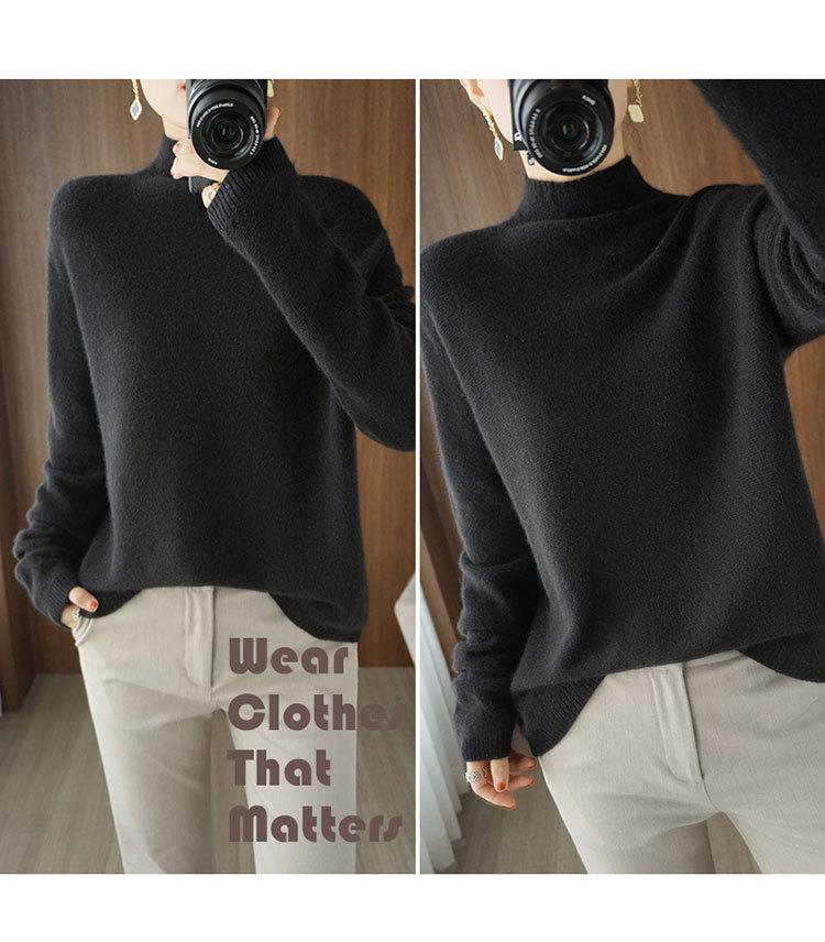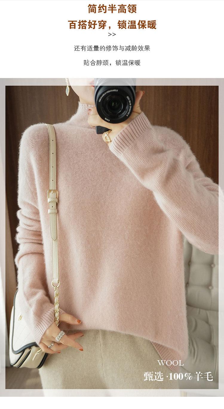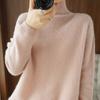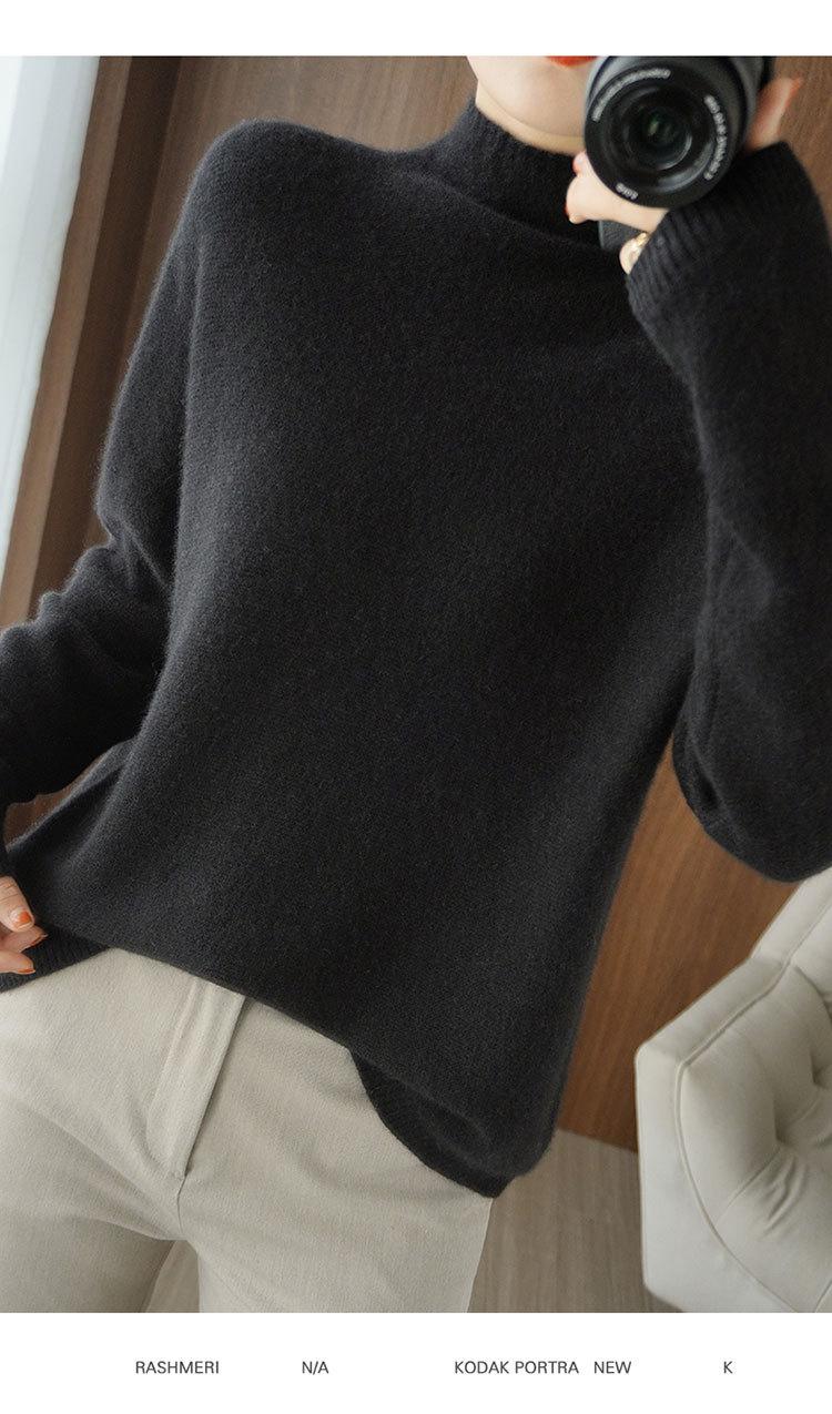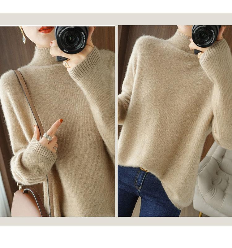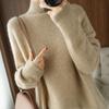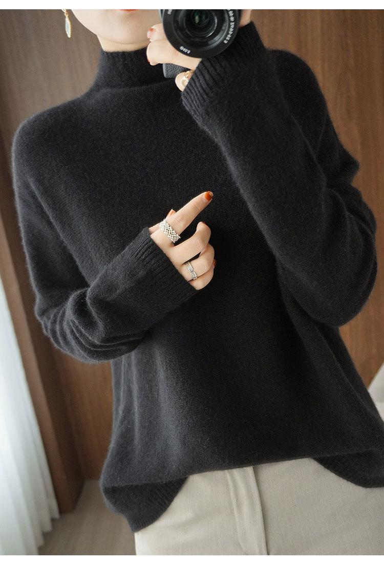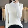 Otoño e Invierno 2024 Nuevo Estilo Holgazán Lana Pura Cuello Semialto Tejido Hombro Manga Larga Color Sólido Camisa Base para Mujer