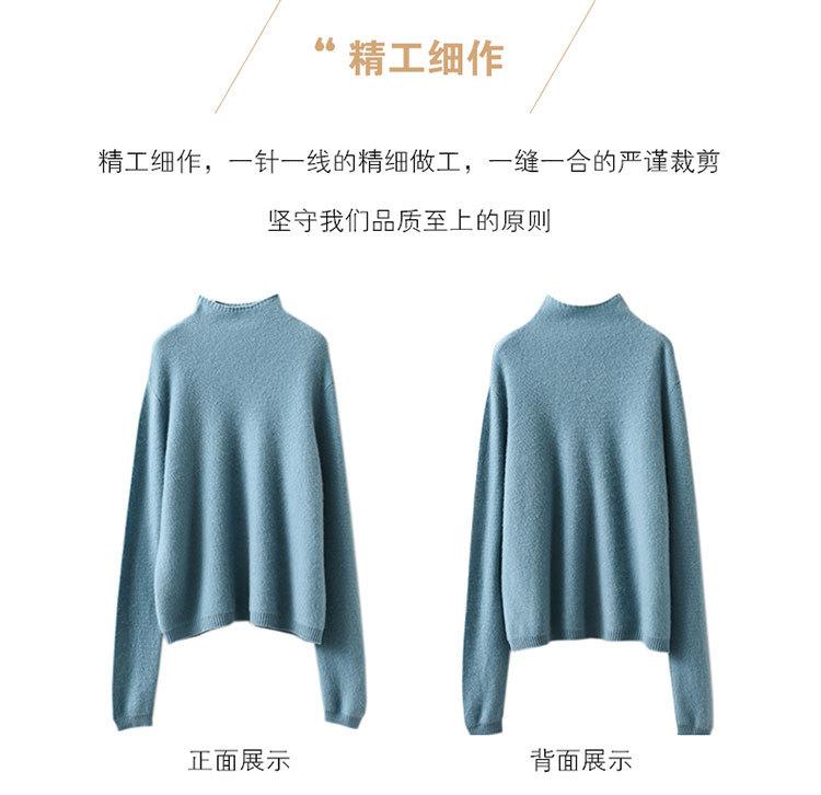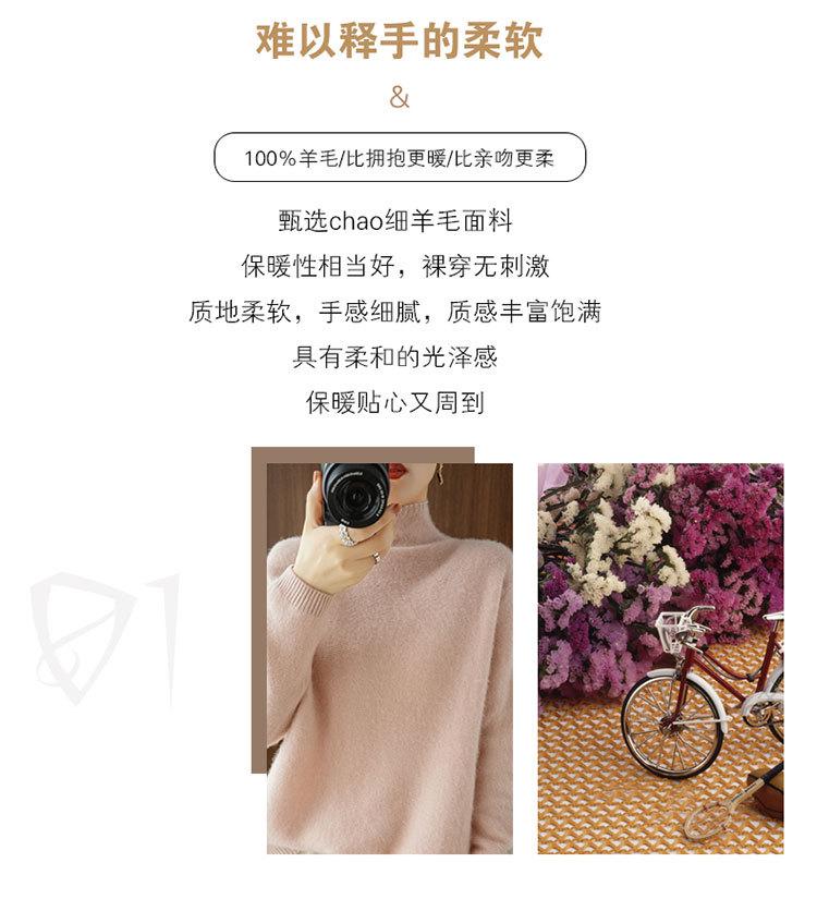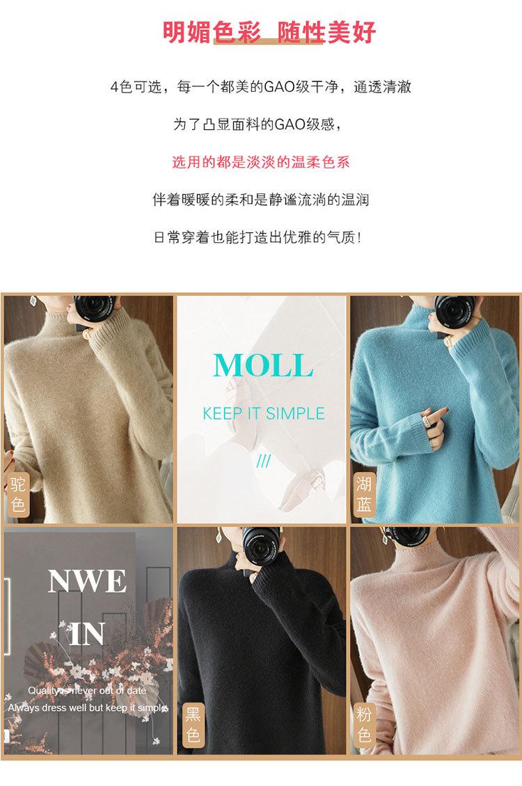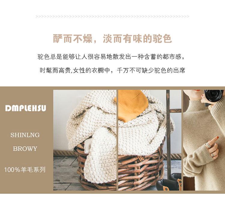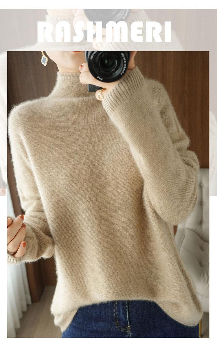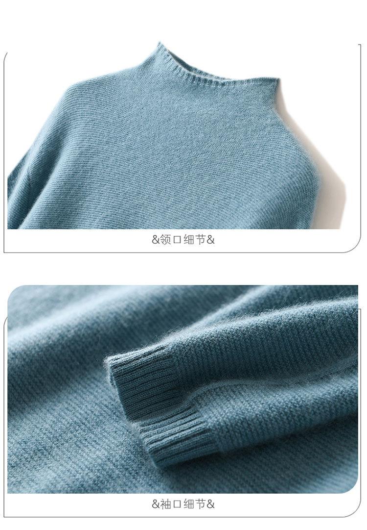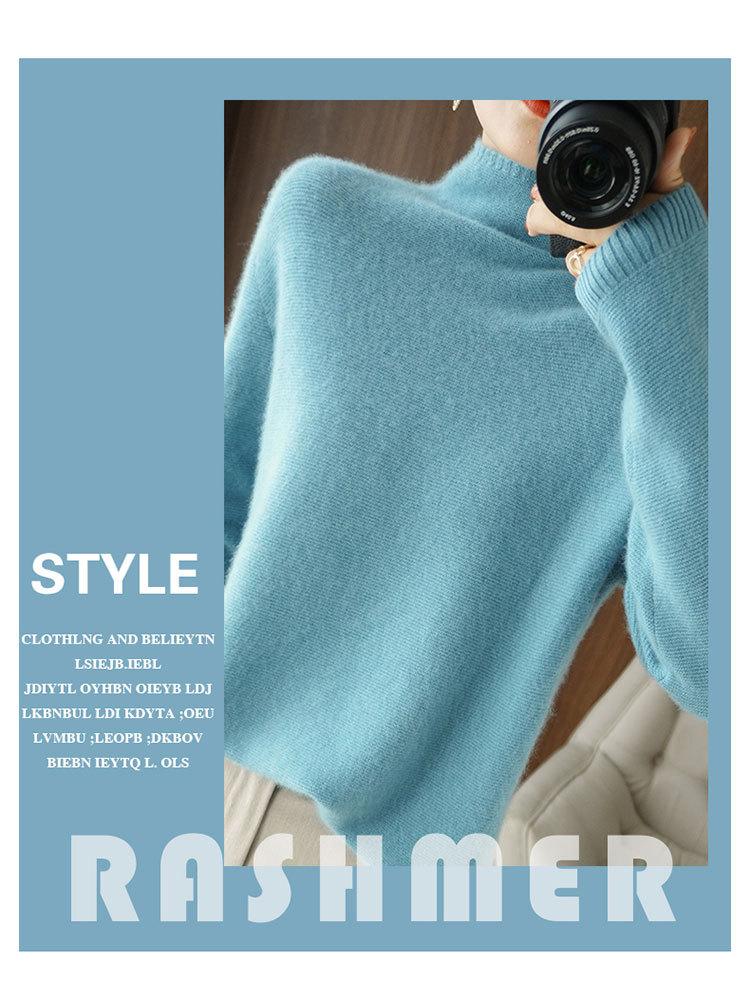 Otoño e Invierno 2024 Nuevo Estilo Holgazán Lana Pura Cuello Semialto Tejido Hombro Manga Larga Color Sólido Camisa Base para Mujer