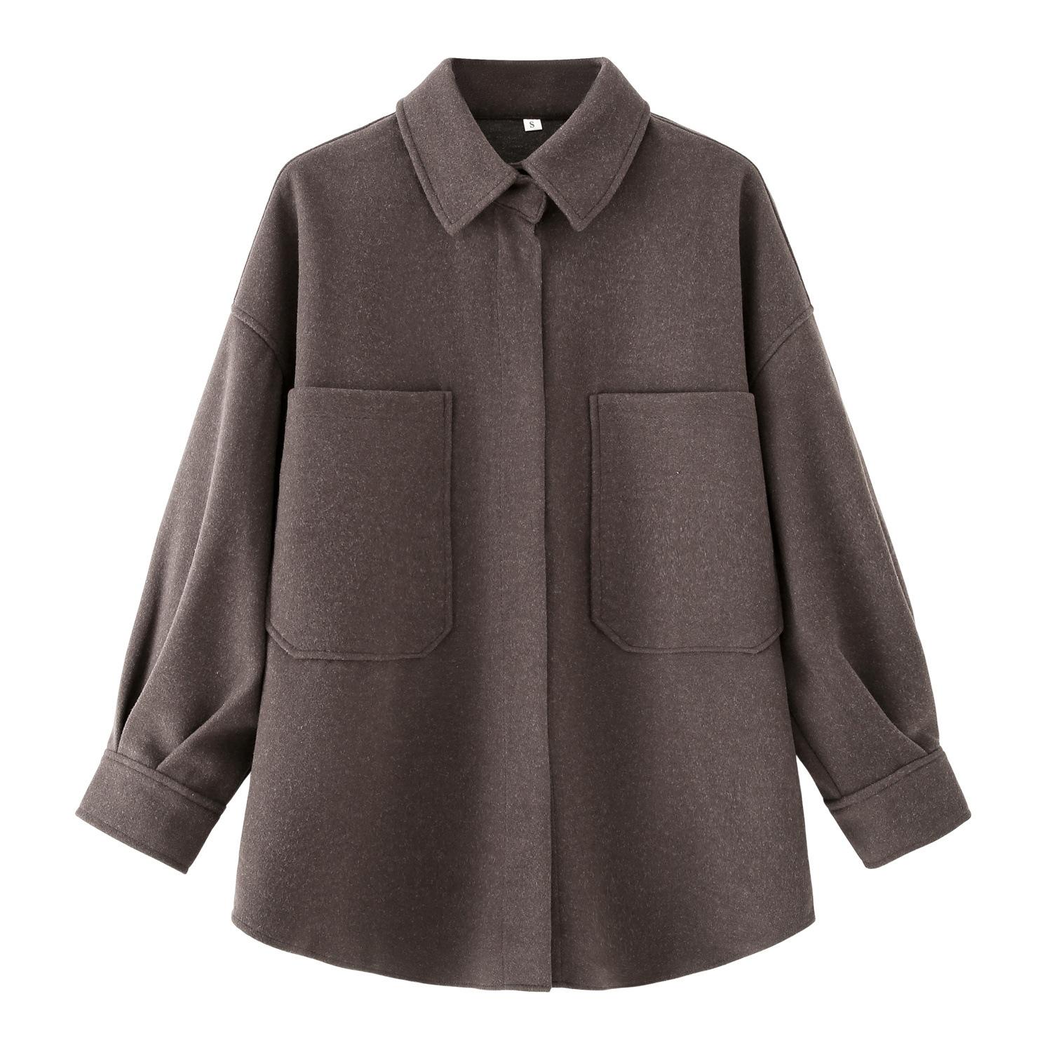 Z Otoño Nuevo Estilo Europeo y Americano 2025 Moda Femenina Transfronteriza Casual Suelto Bolsillo Grande Abrigo de Lana Suave