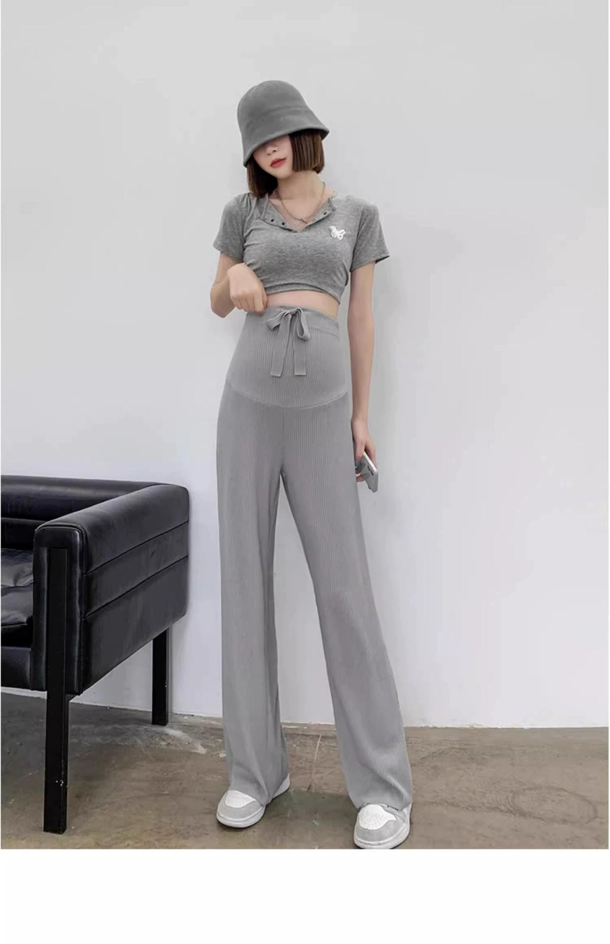 Pantalones de maternidad para mujer verano ropa de embarazo soporte para la barriga no aprieta la barriga pantalones casuales de pierna ancha adelgazantes y leggings de maternidad finos