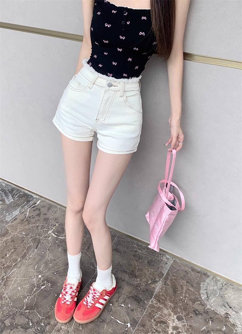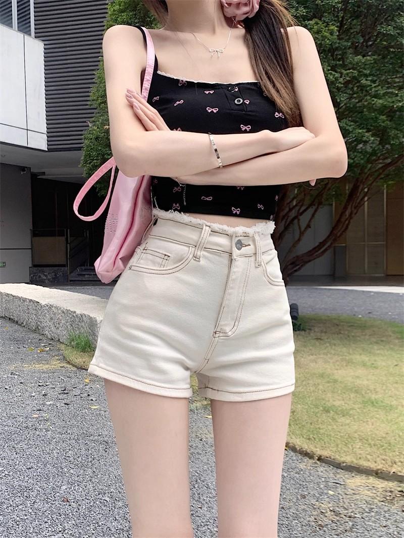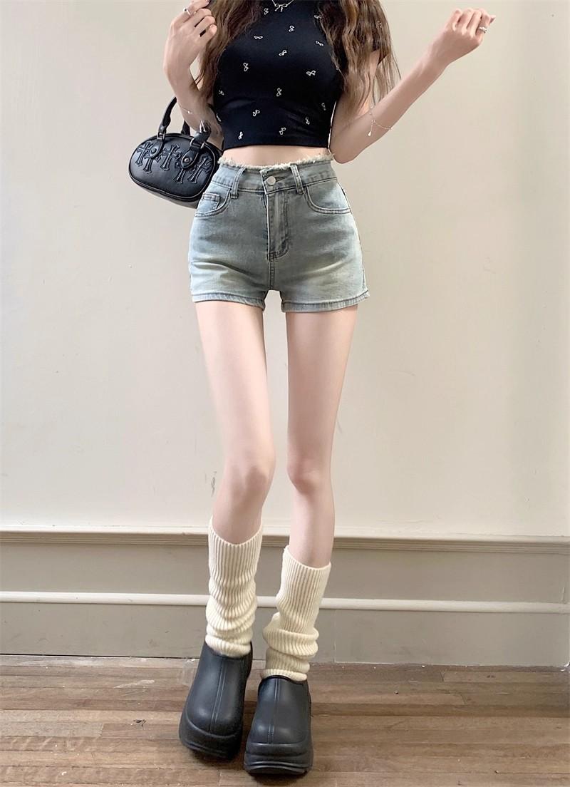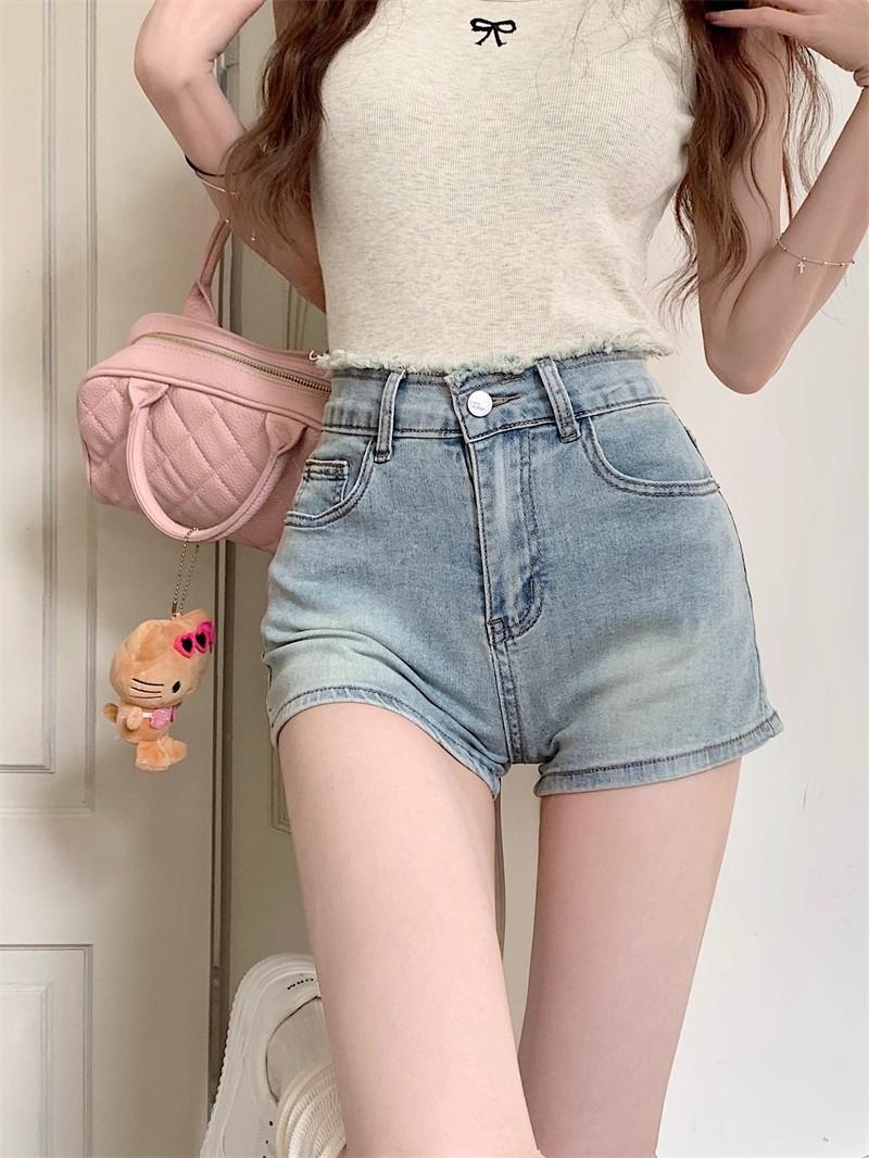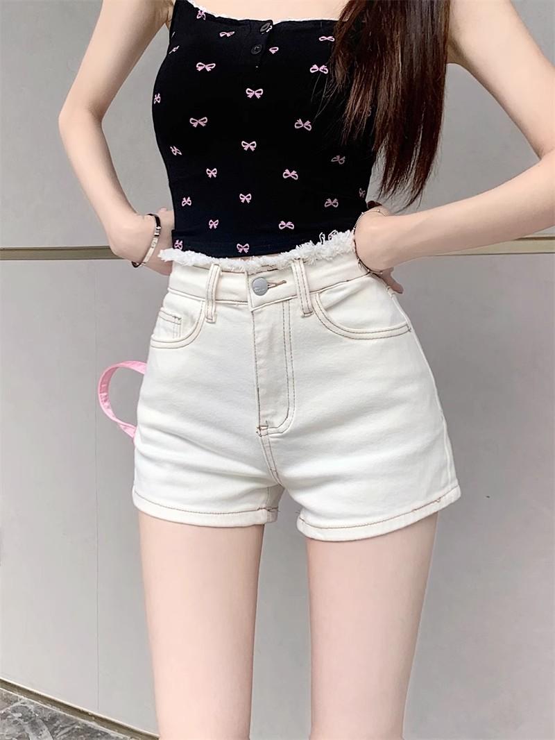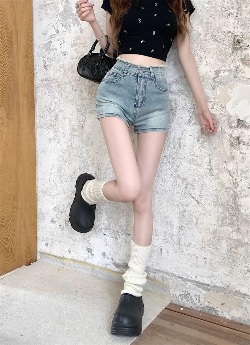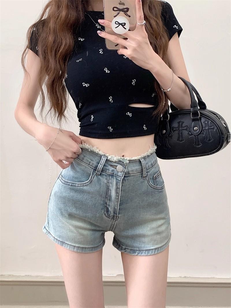 Shorts de mezclilla picantes americanos para mujer, verano nuevo, cintura alta, talla grande, bolsillo, bordado, línea A, pantalones supercortos ajustados