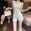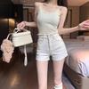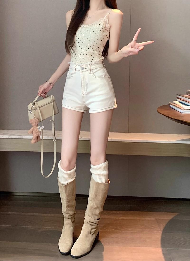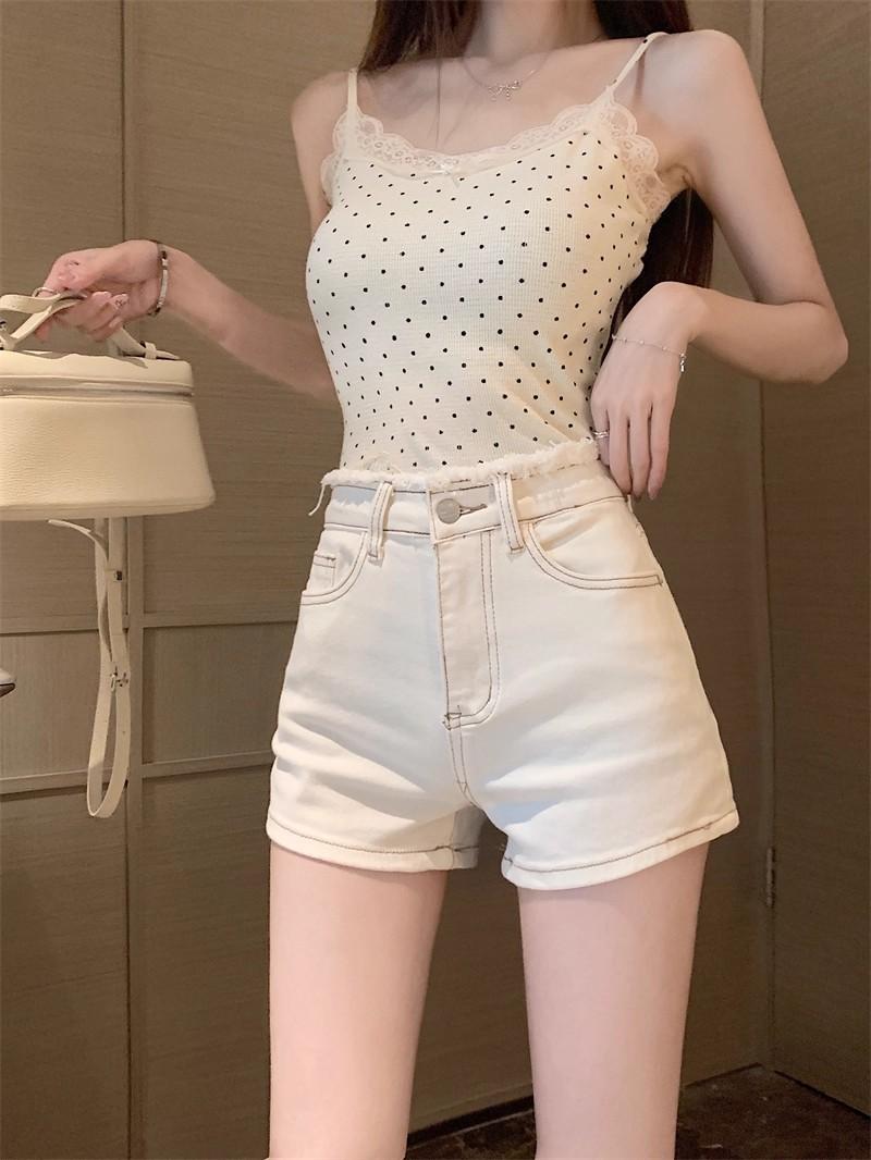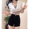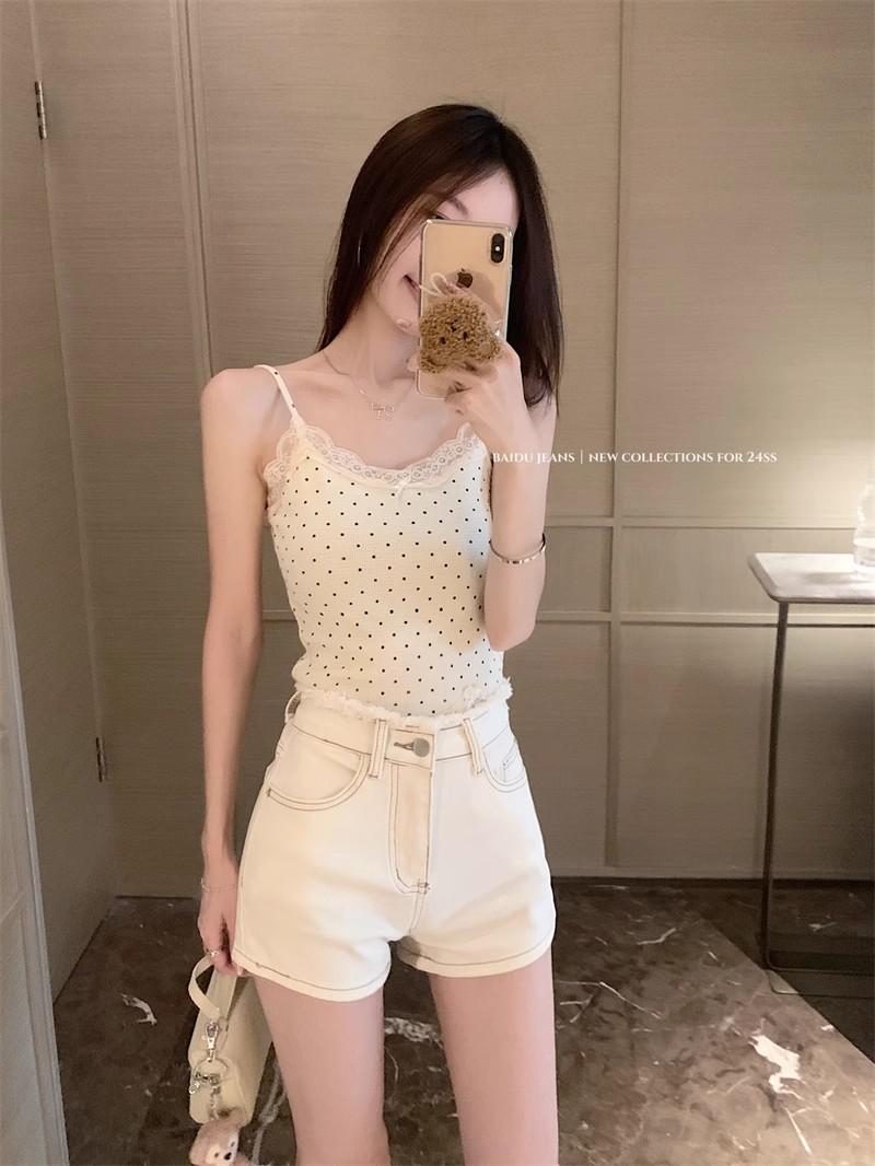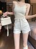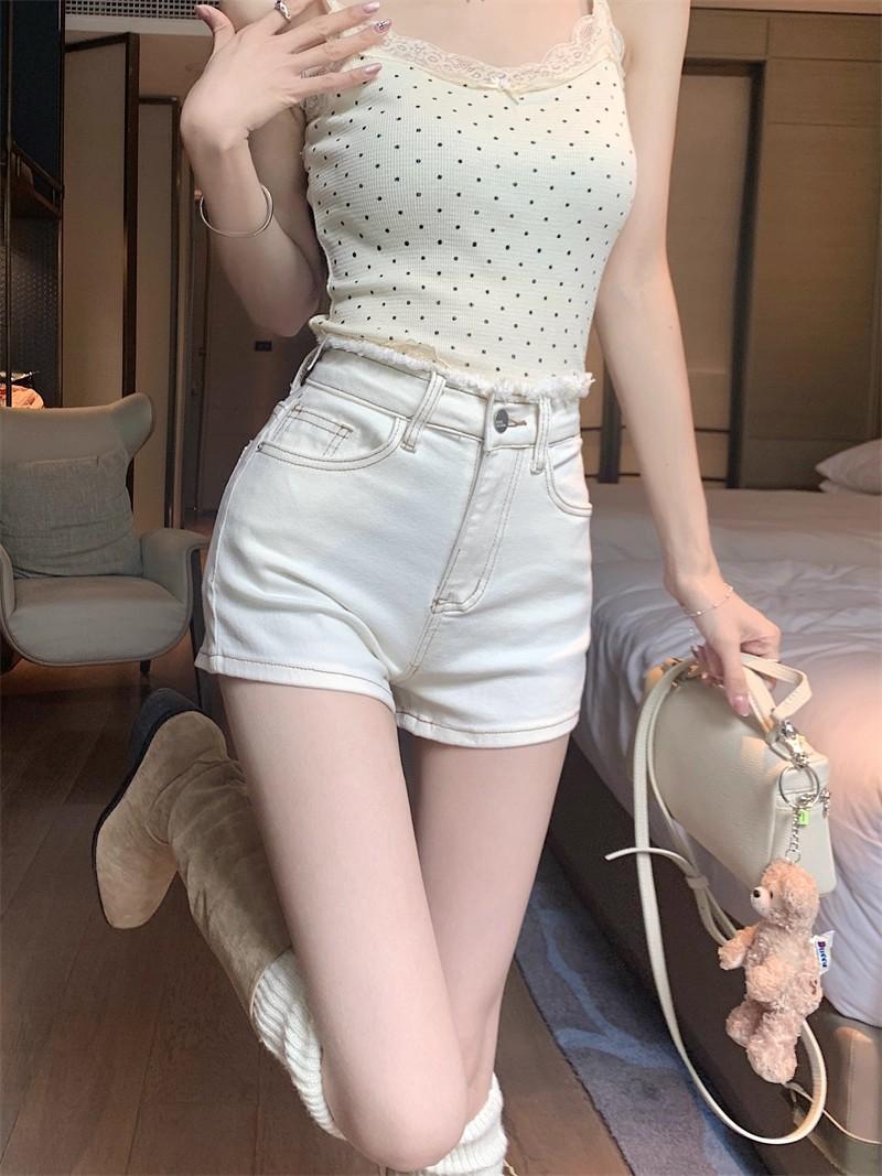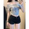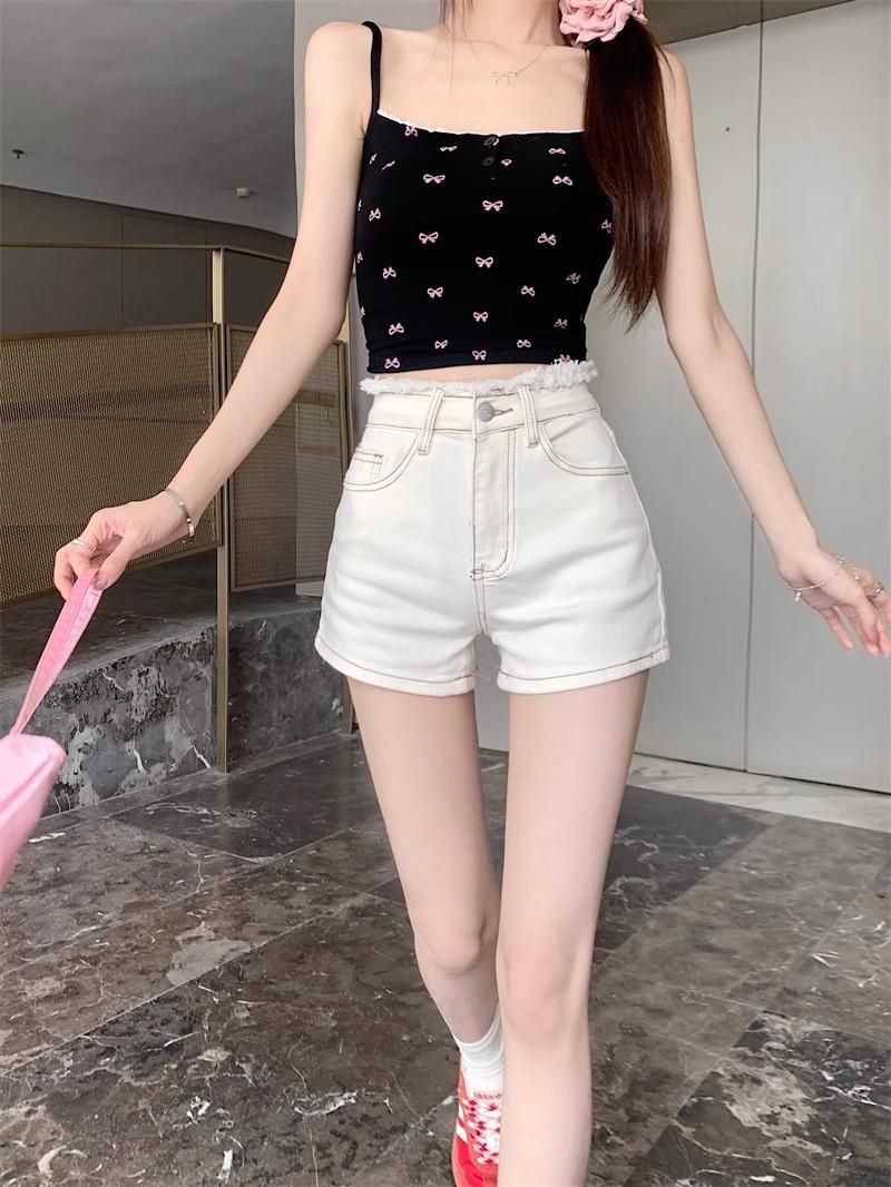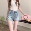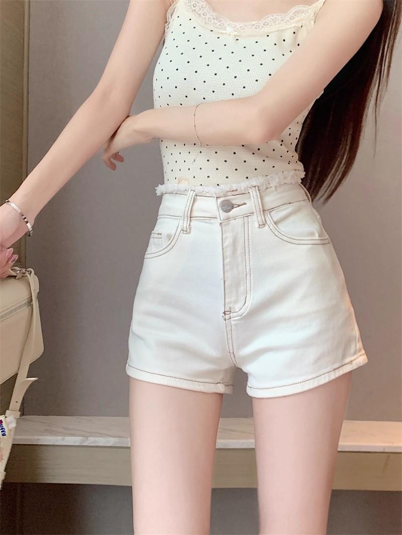 Shorts de mezclilla picantes americanos para mujer, verano nuevo, cintura alta, talla grande, bolsillo, bordado, línea A, pantalones supercortos ajustados