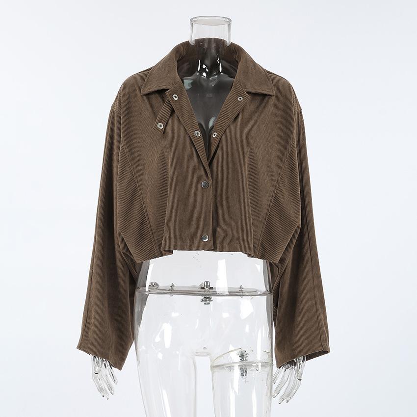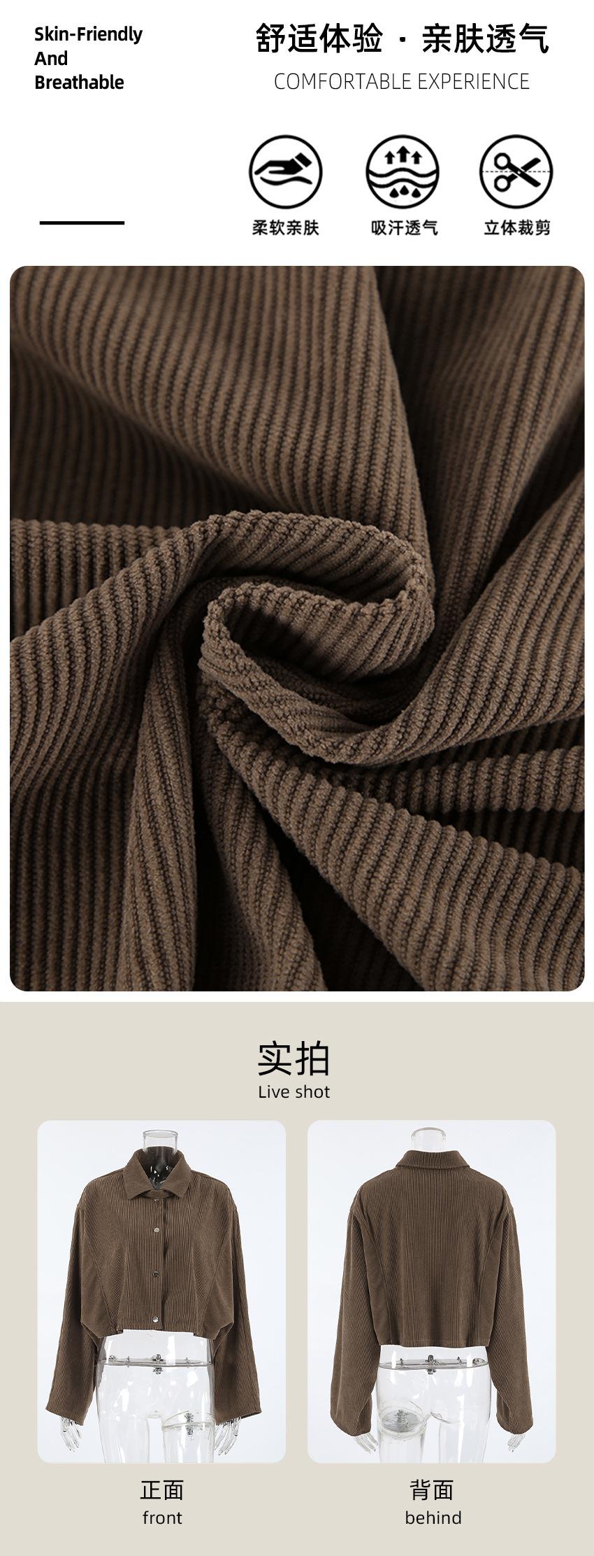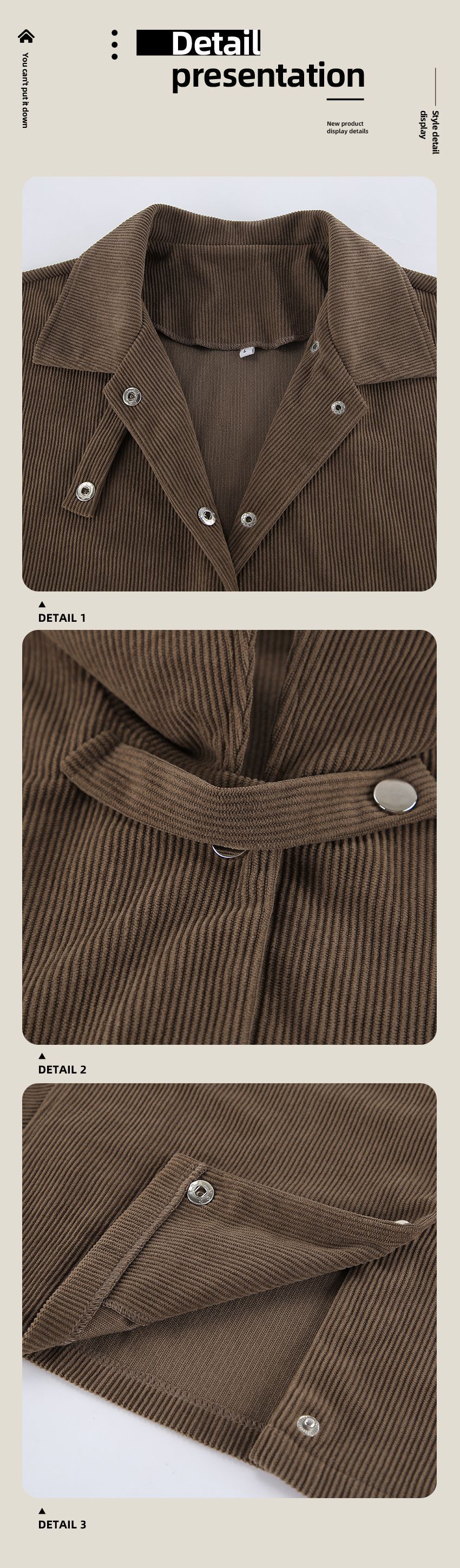 Chaqueta Corta de Pana de Solapa Retro Europea y Americana de Manga Larga para Mujer Primavera y Otoño Holgada Adelgazante Moderna Versátil Cárdigan Casual