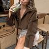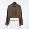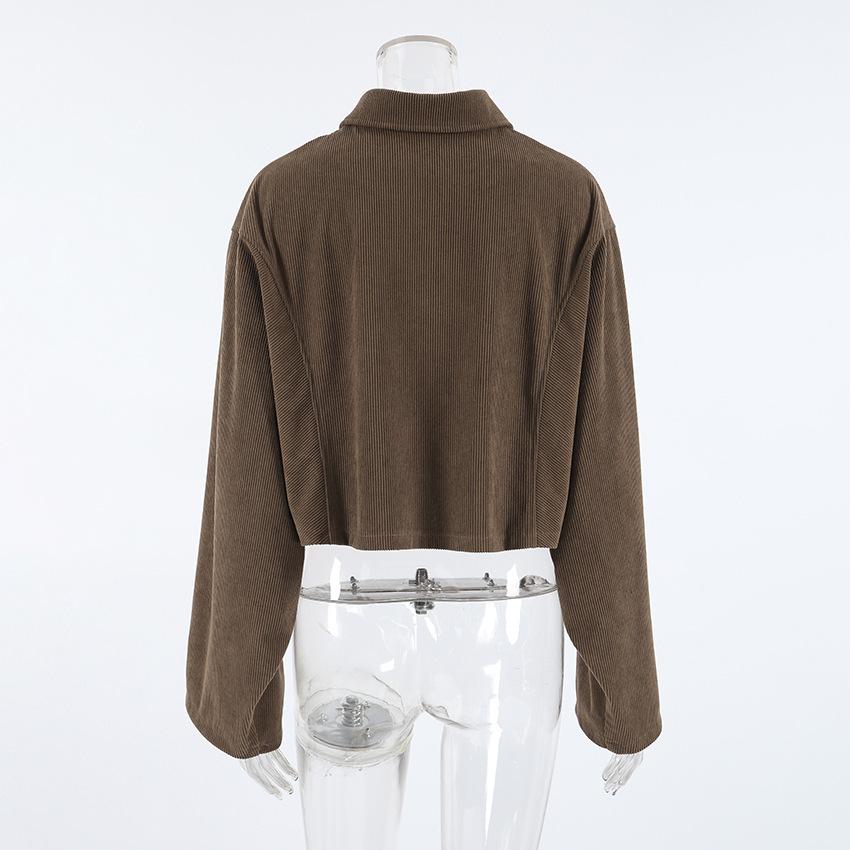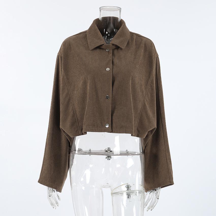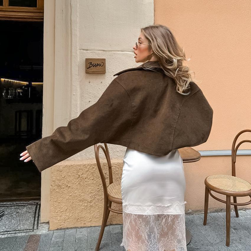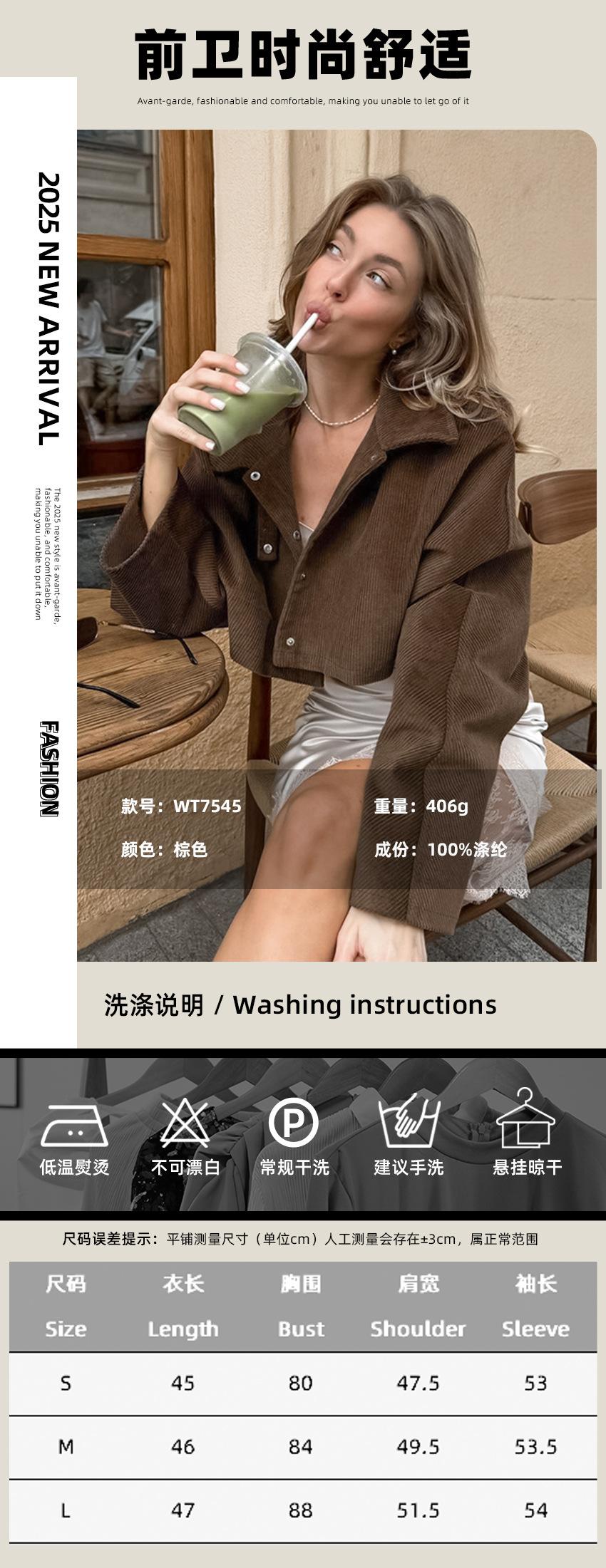 Chaqueta Corta de Pana de Solapa Retro Europea y Americana de Manga Larga para Mujer Primavera y Otoño Holgada Adelgazante Moderna Versátil Cárdigan Casual