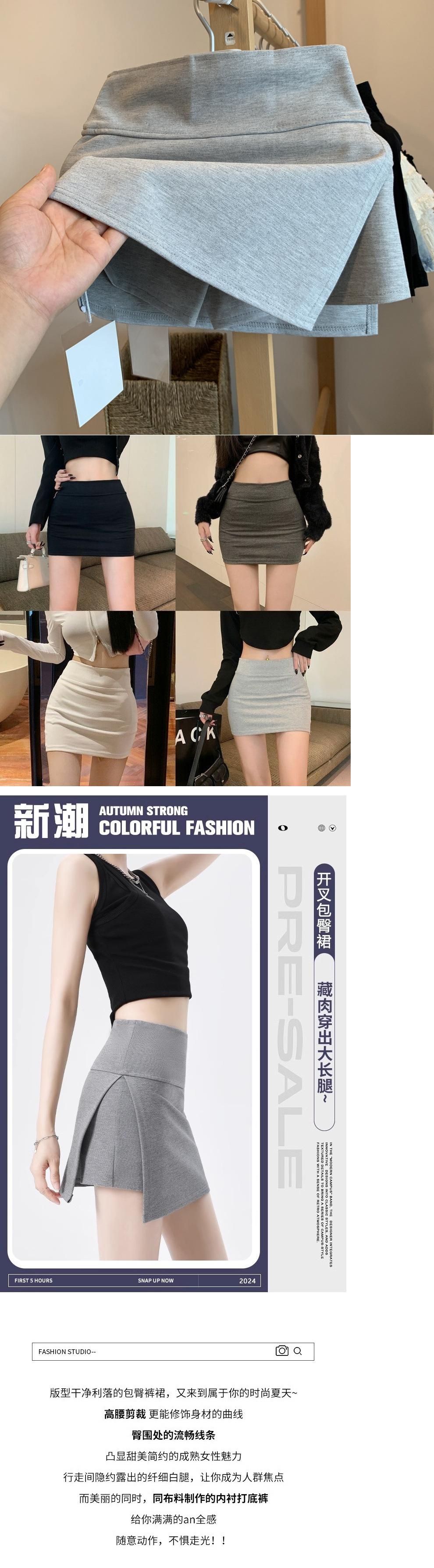 Light gray-side slit a-line skirt, Black-side slit a-line skirt, White-side slit a-line skirt