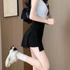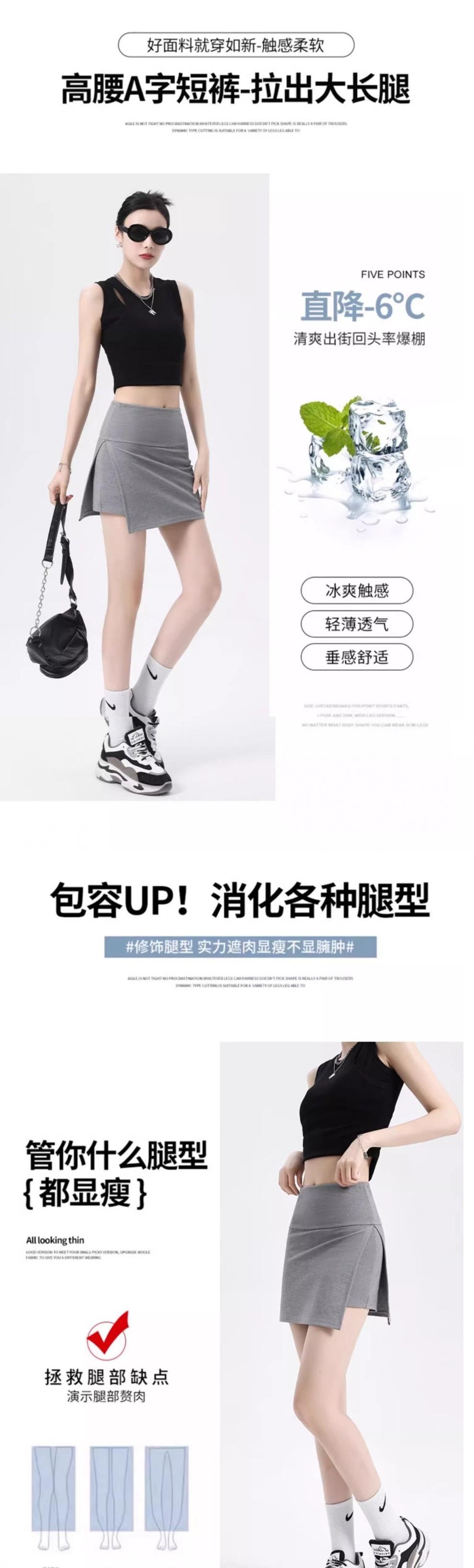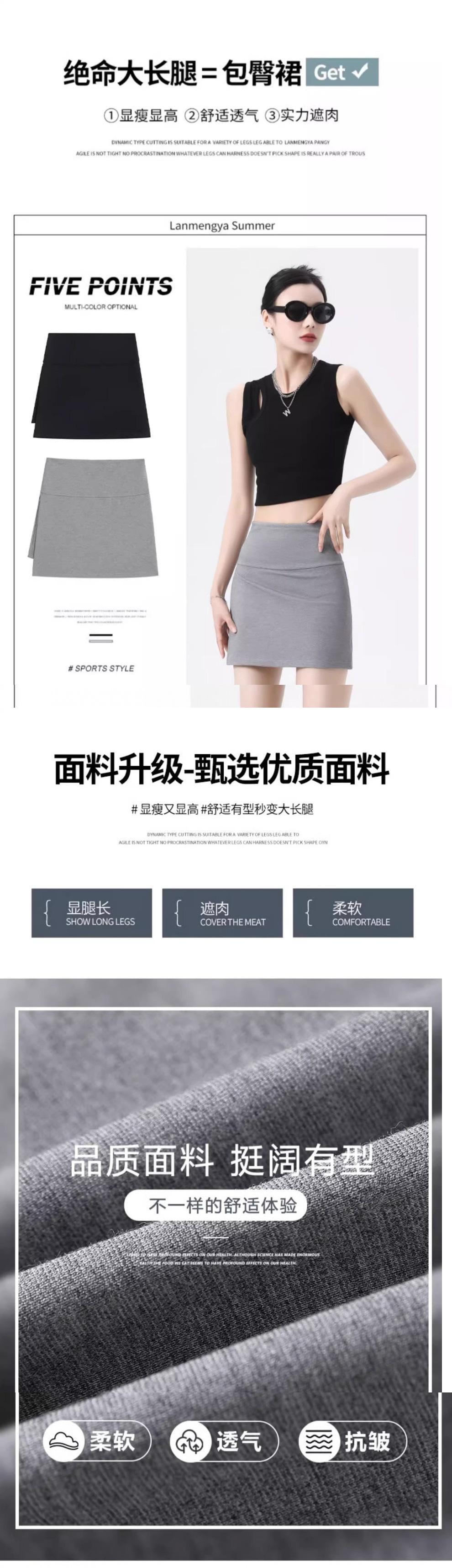 Culottes de Yoga Grises con Abertura Lateral para Mujer Verano Antiexposición Falda Americana Sexy Cubre Caderas Falda Deportiva A-Line