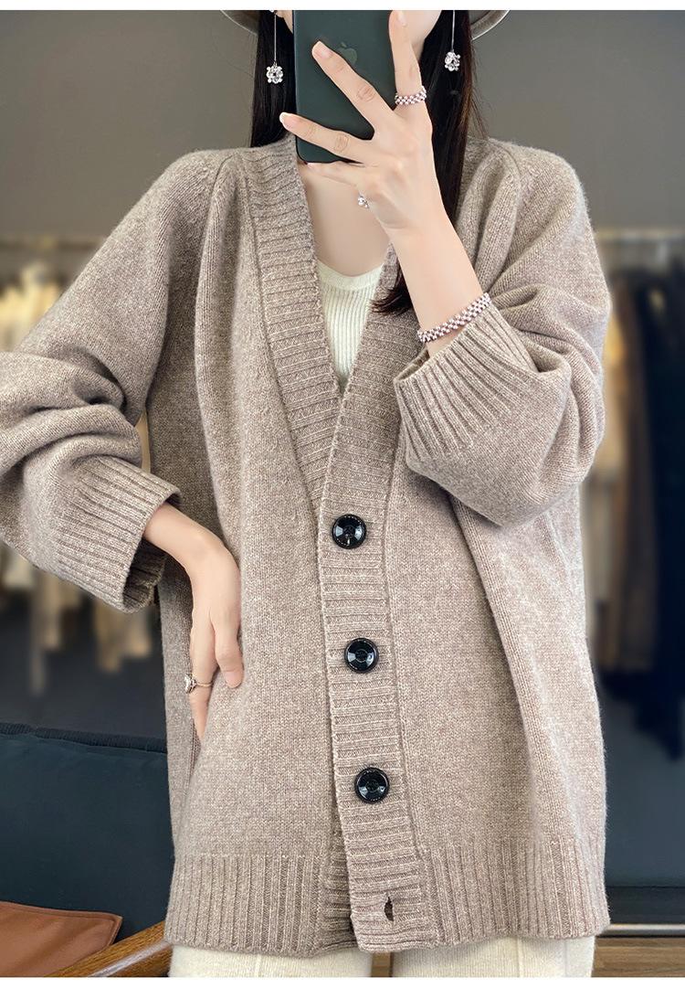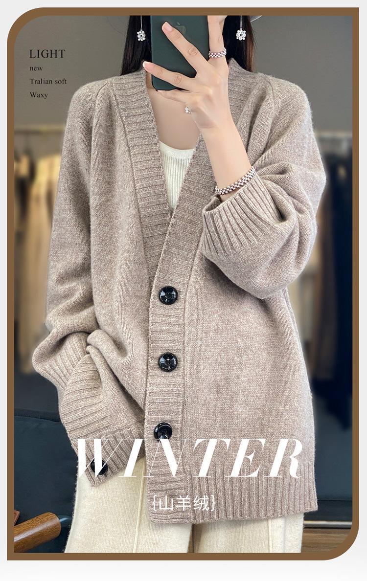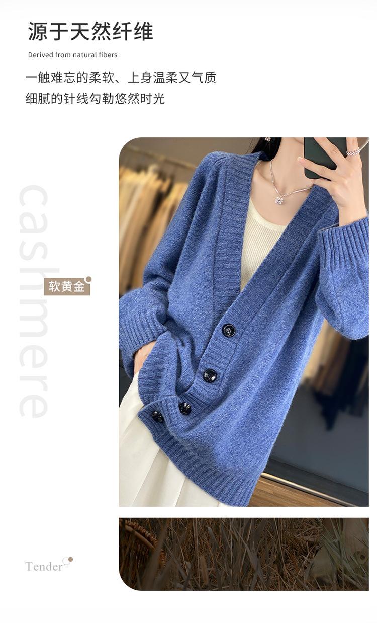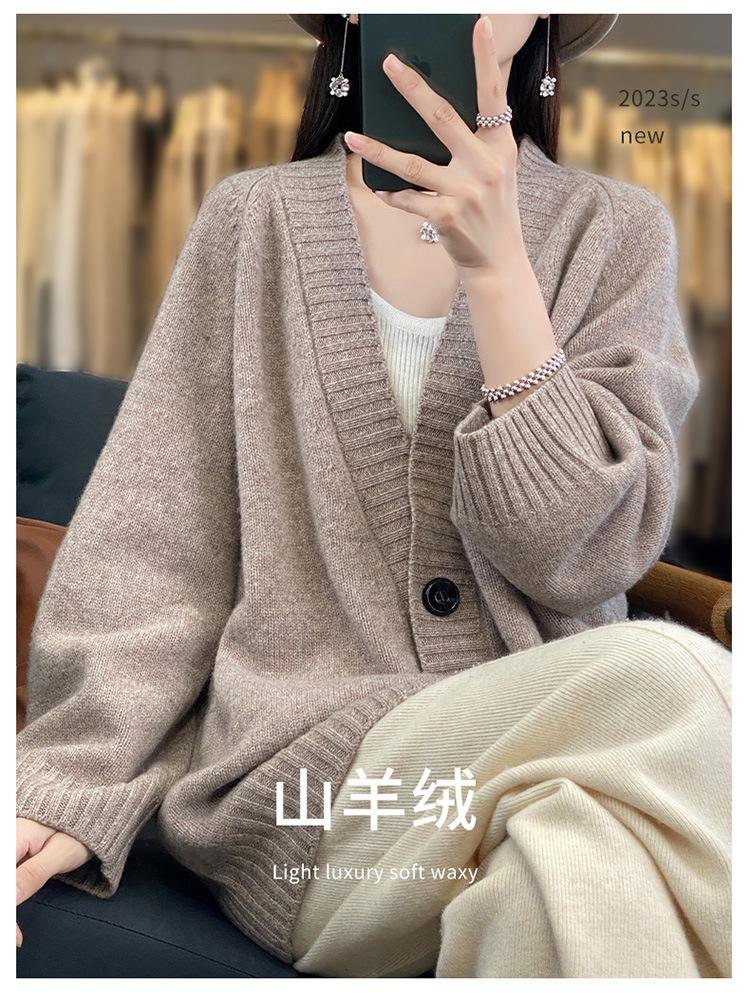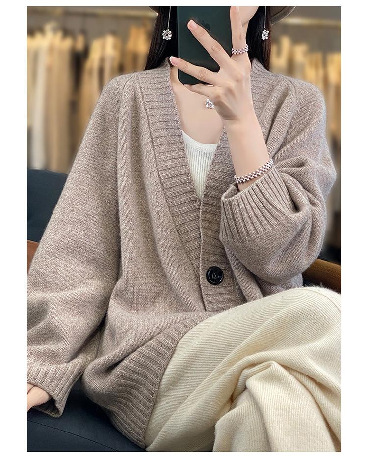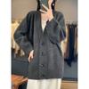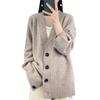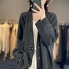 Cárdigan de cachemira con cuello en V, estilo commuter temperamental, abrigo de punto, estilo coreano, casual, versátil, exterior de punto de botonadura simple
