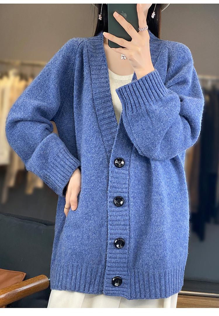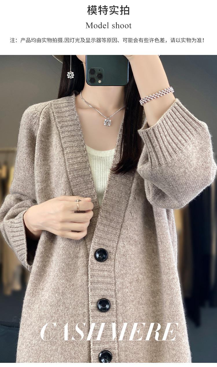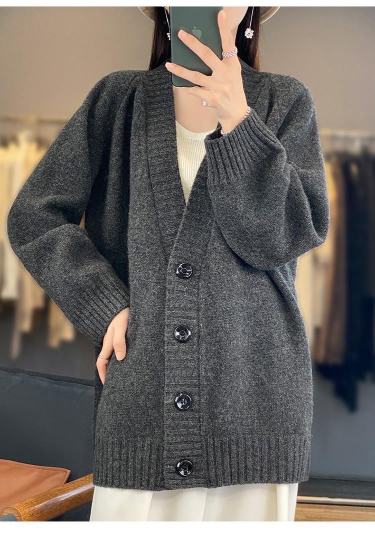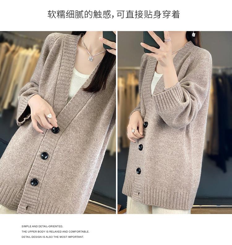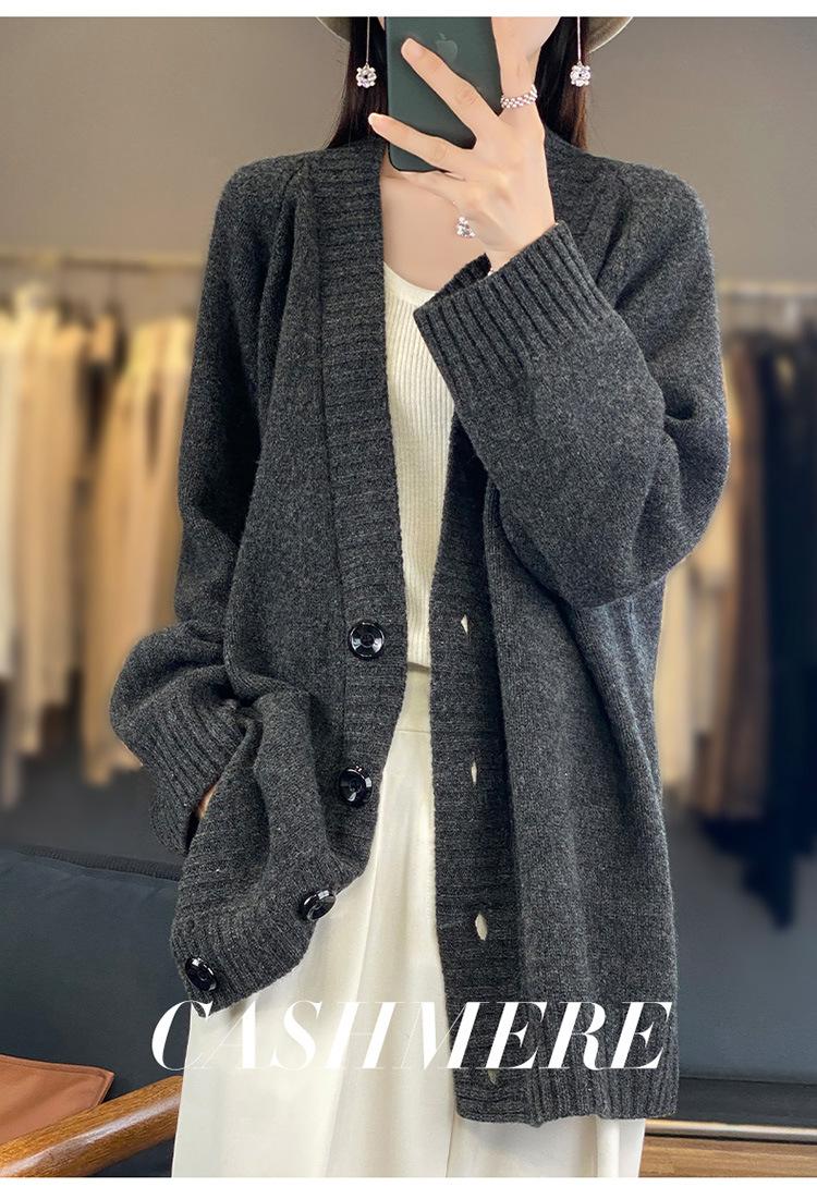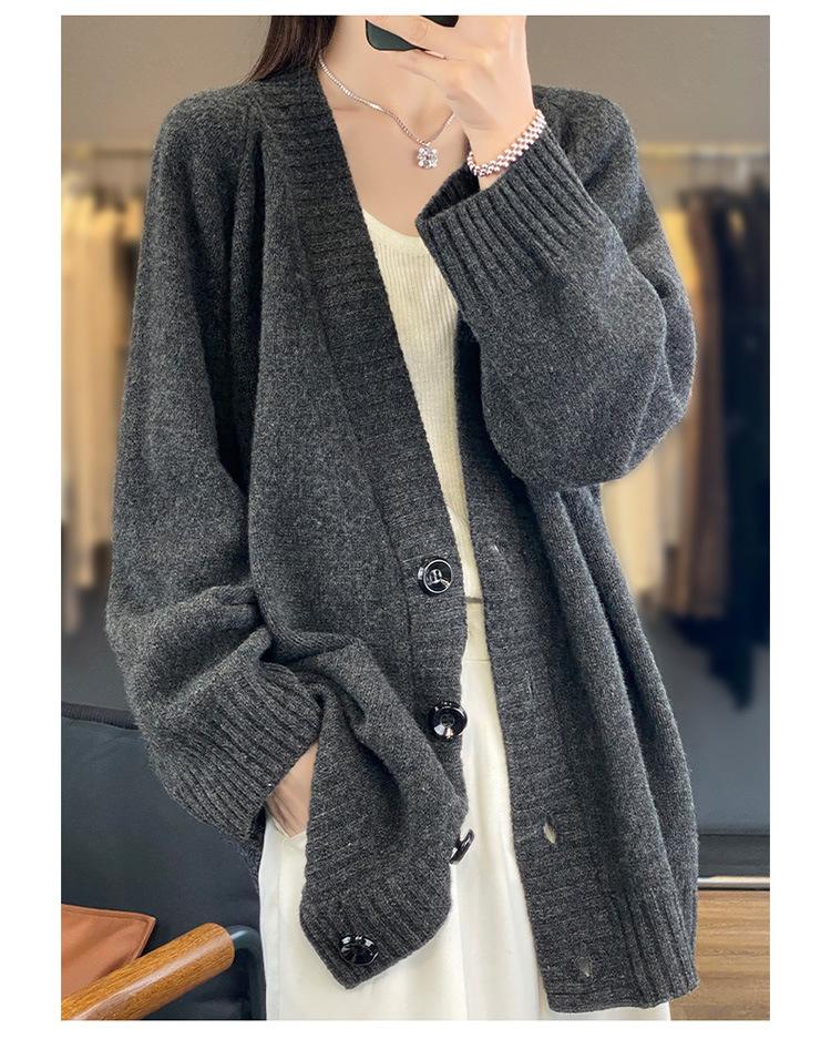 Cárdigan de cachemira con cuello en V, estilo commuter temperamental, abrigo de punto, estilo coreano, casual, versátil, exterior de punto de botonadura simple