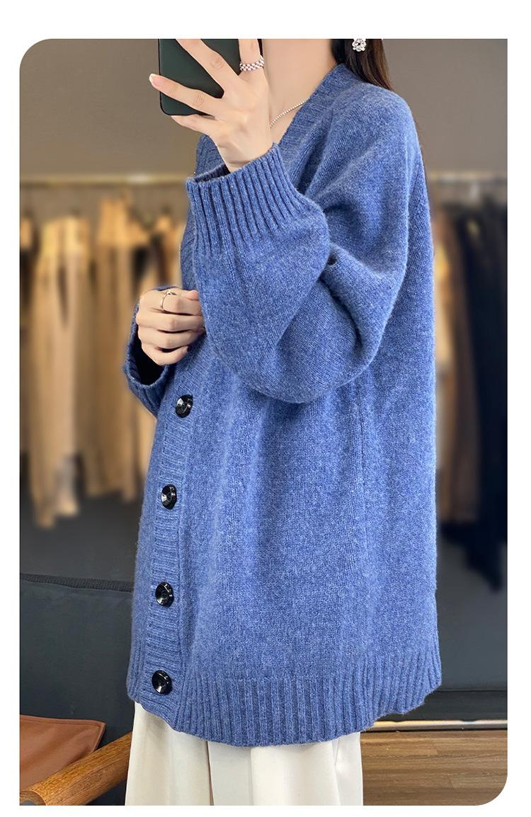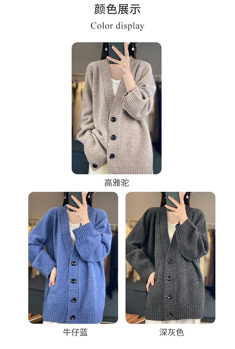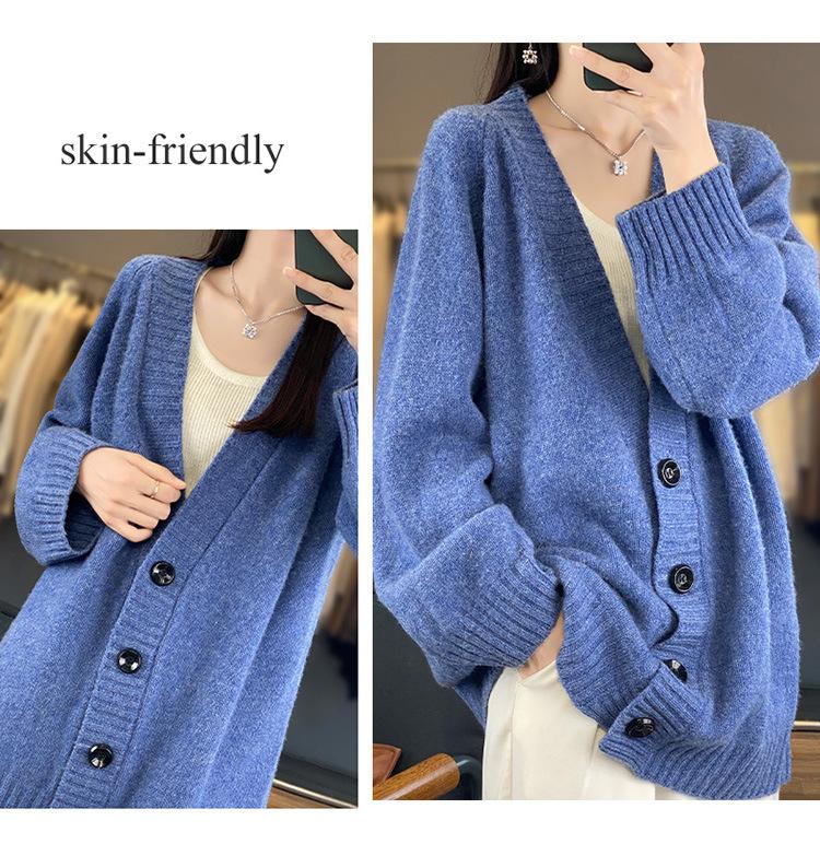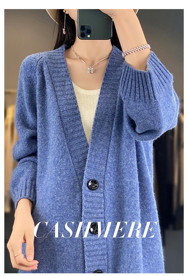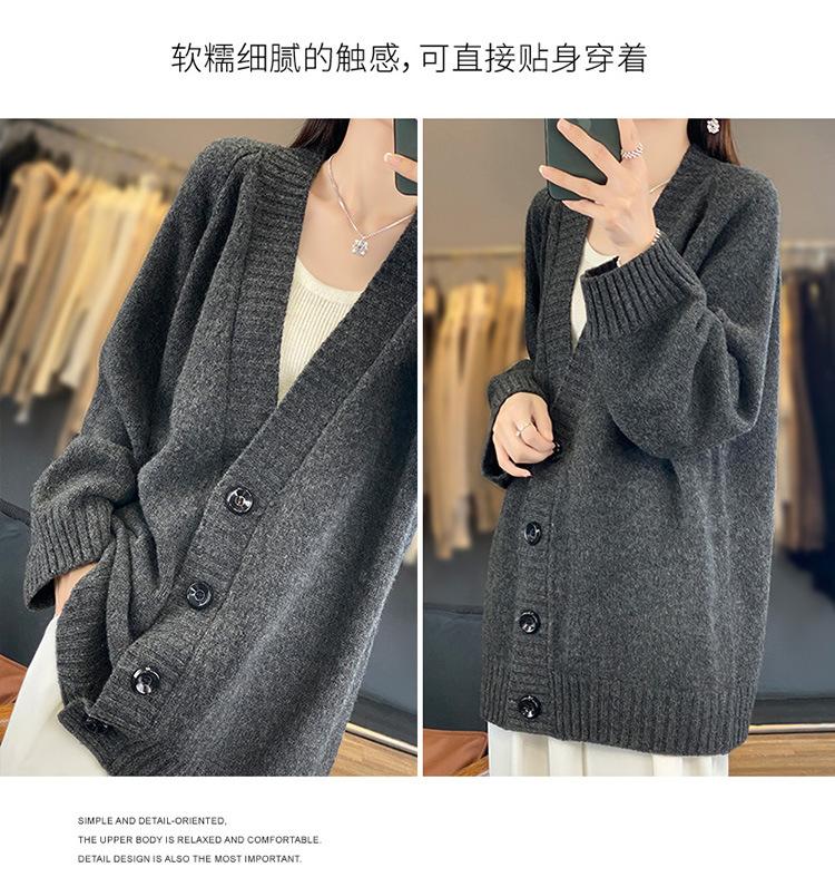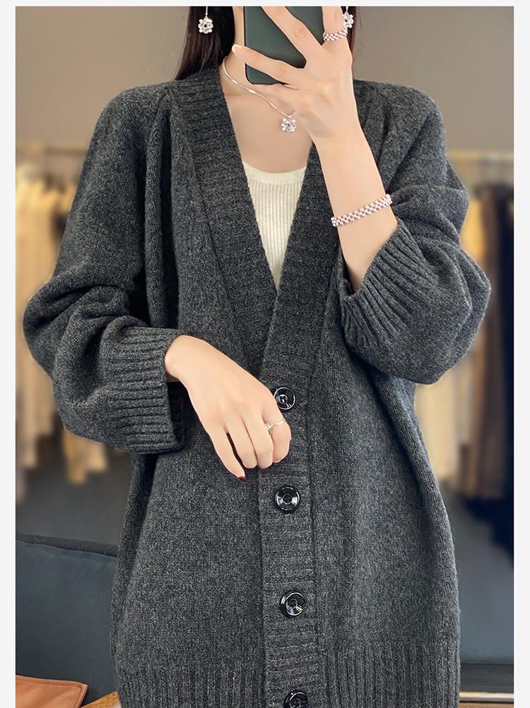 Cárdigan de cachemira con cuello en V, estilo commuter temperamental, abrigo de punto, estilo coreano, casual, versátil, exterior de punto de botonadura simple