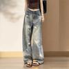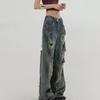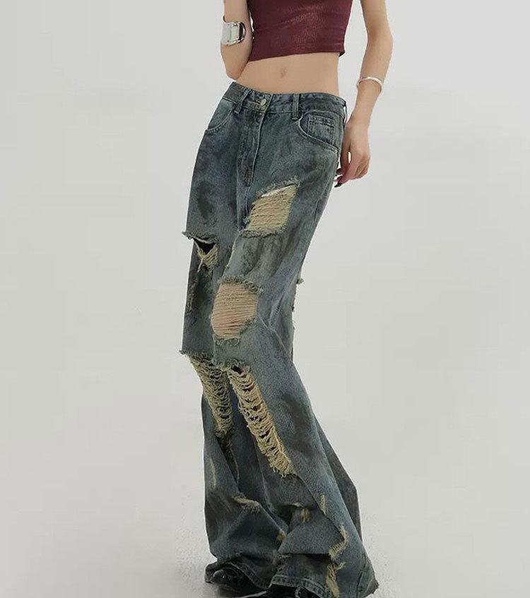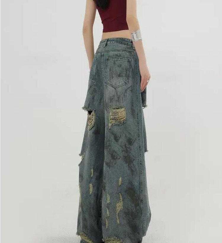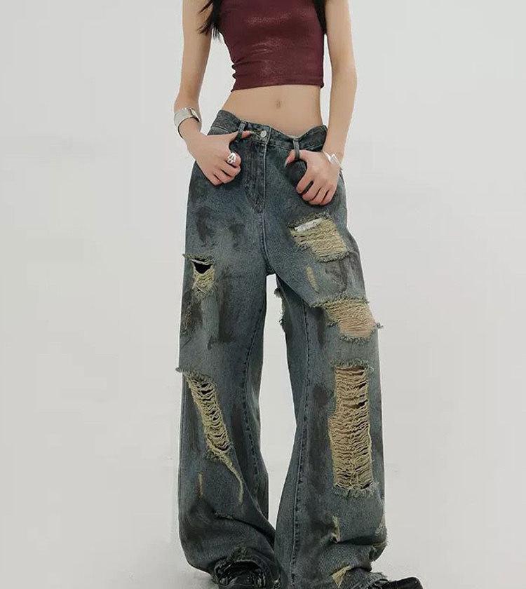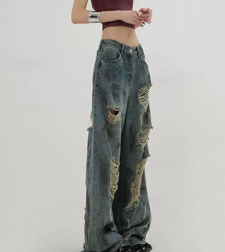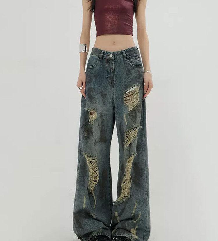 Jeans Rotos Desgastados de Talla Grande para Mujer, Estilo Americano Verano 2025, Talla Grande, Adelgazantes Rectos de Cintura Alta y Pierna Ancha