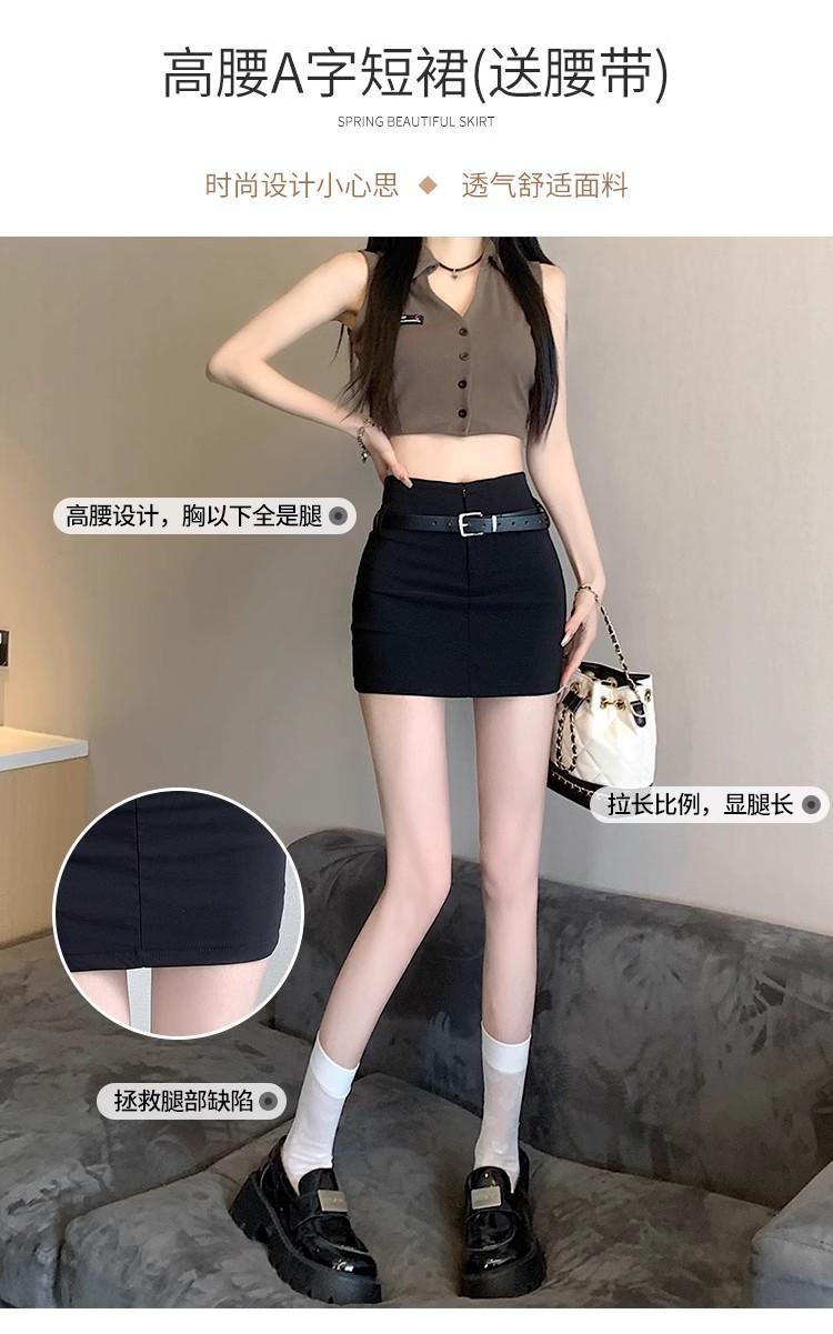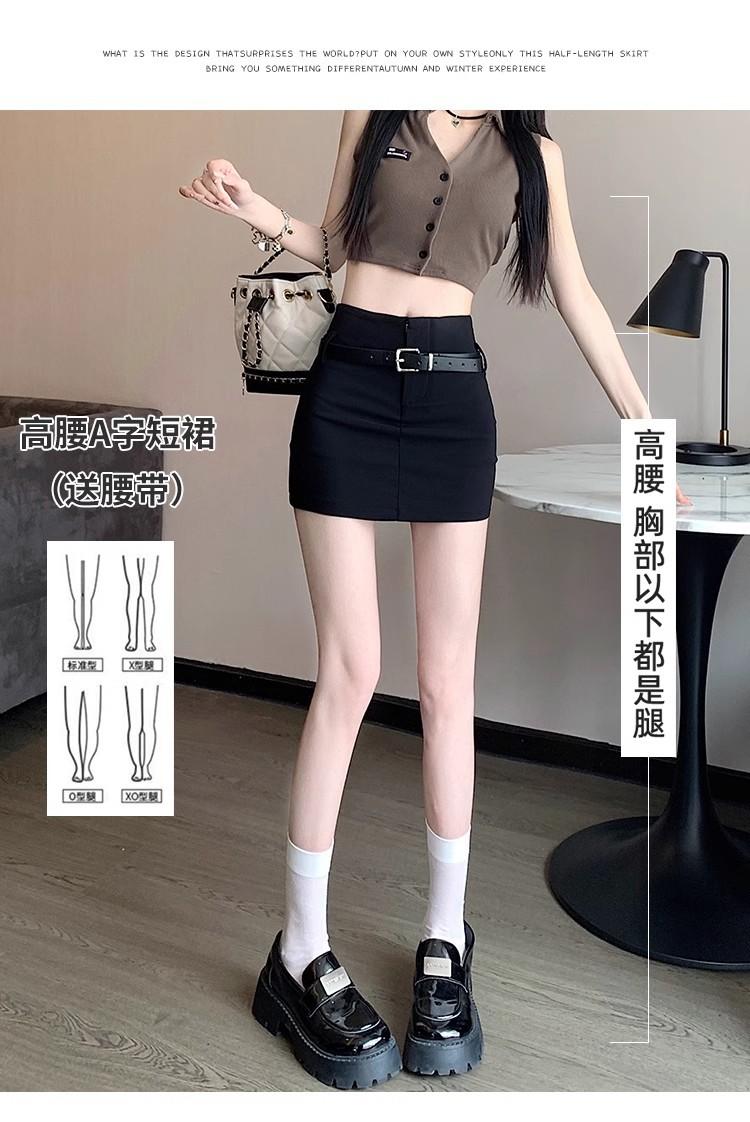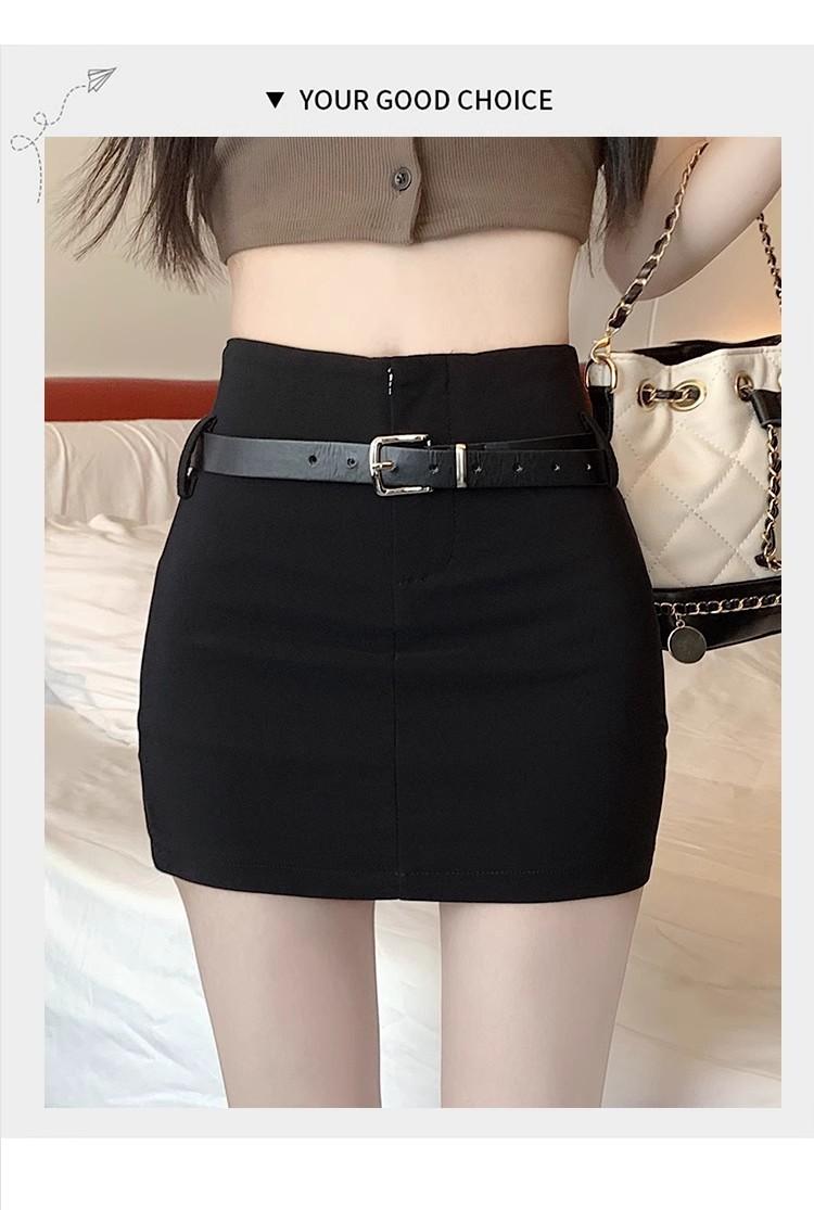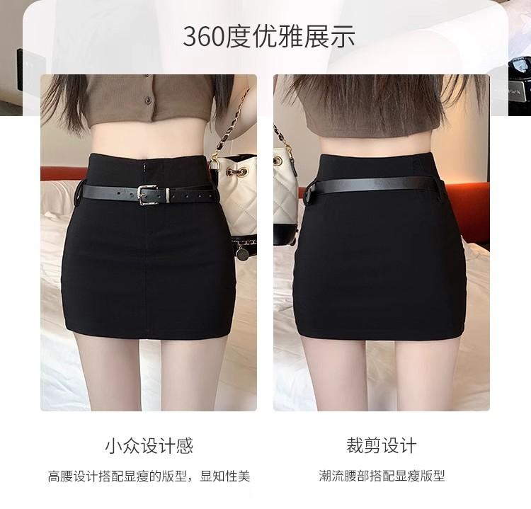 Traje Retro de Chica Picante Falda Corta Cintura Alta Falda Negra Primavera/Verano 2024 Falda Midi Versátil Línea A Falda Elástica Ajustada al Cuerpo
