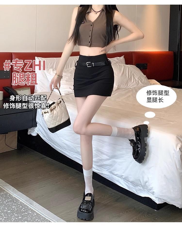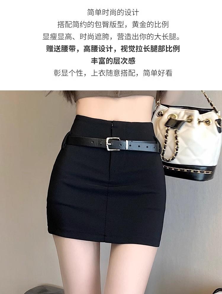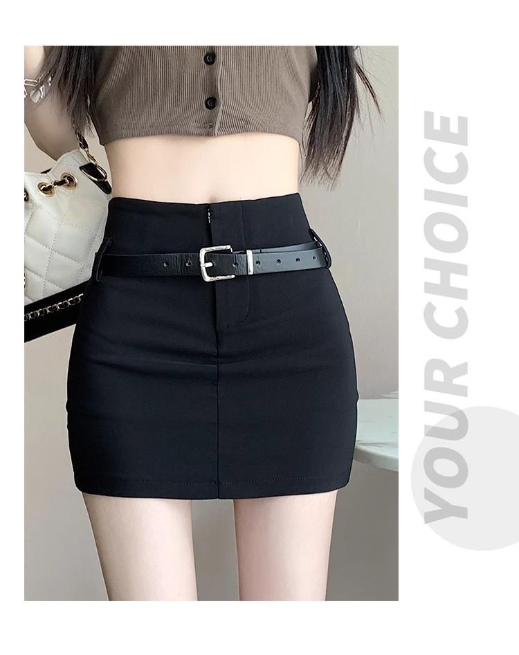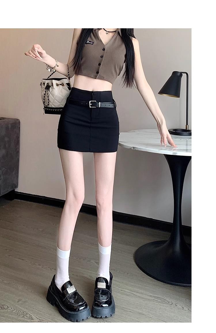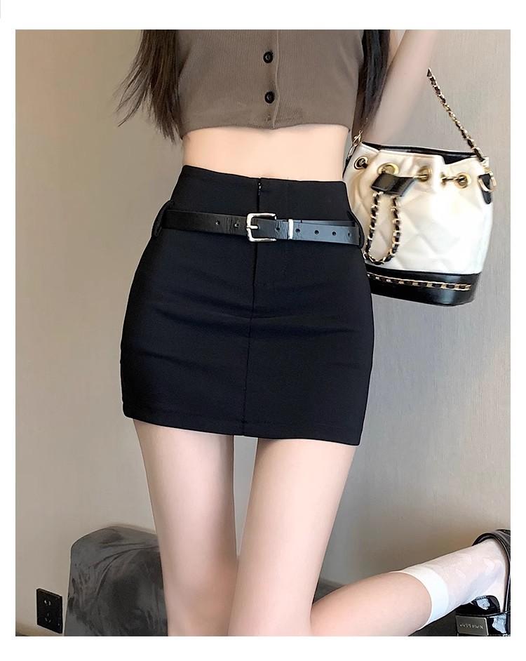 Traje Retro de Chica Picante Falda Corta Cintura Alta Falda Negra Primavera/Verano 2024 Falda Midi Versátil Línea A Falda Elástica Ajustada al Cuerpo
