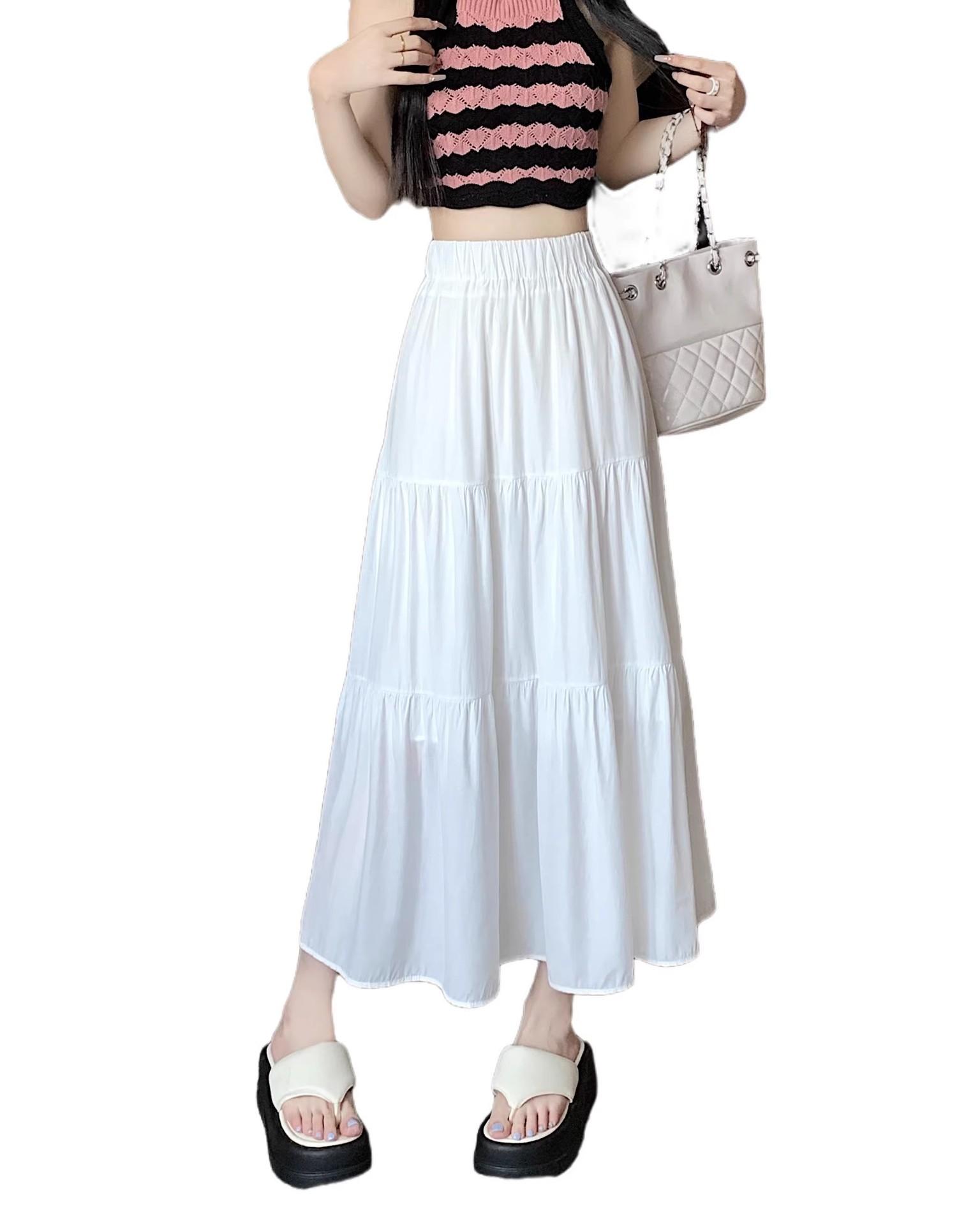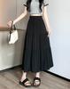 Falda Negra de Cintura Alta con Pliegues para Mujer Primavera Cubre Caderas Nicho de Gama Alta Elegante Falda Slim A-Line Falda Larga