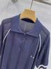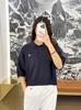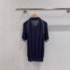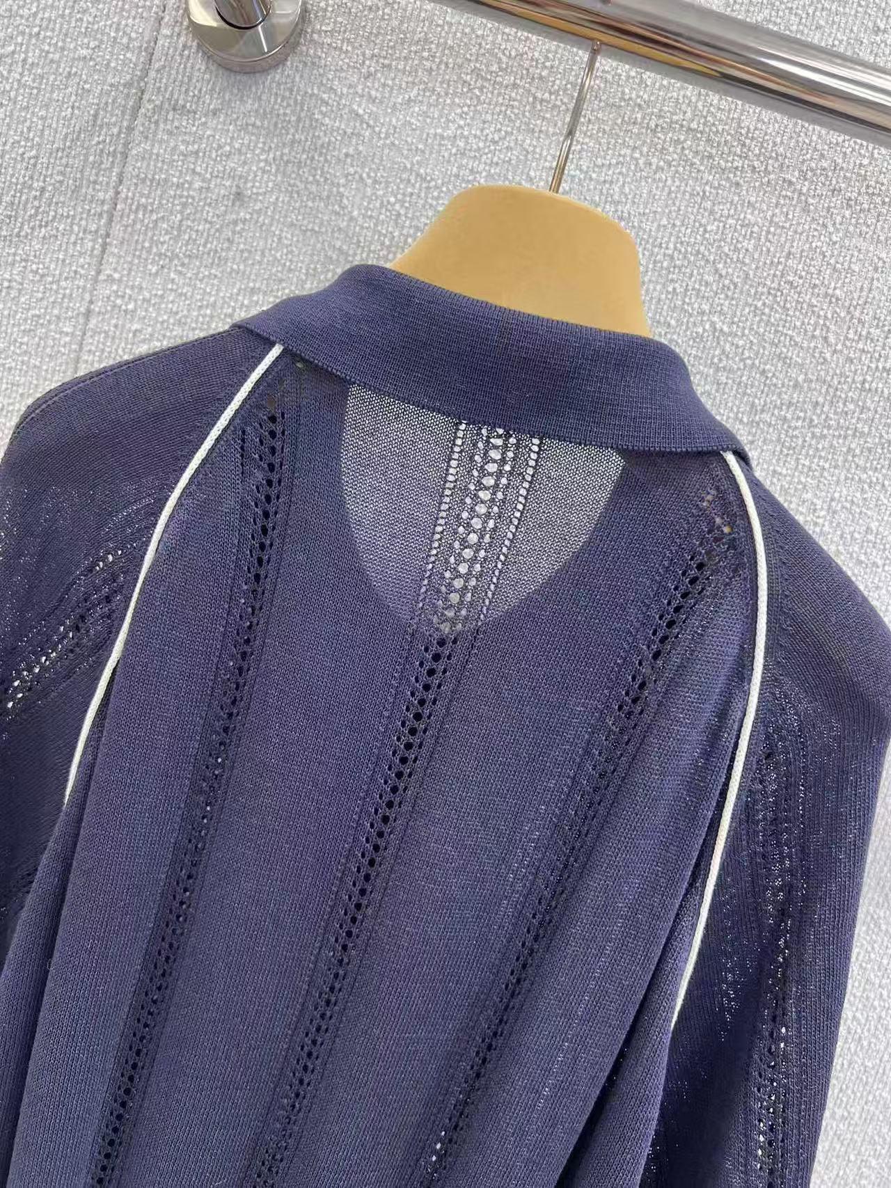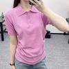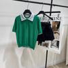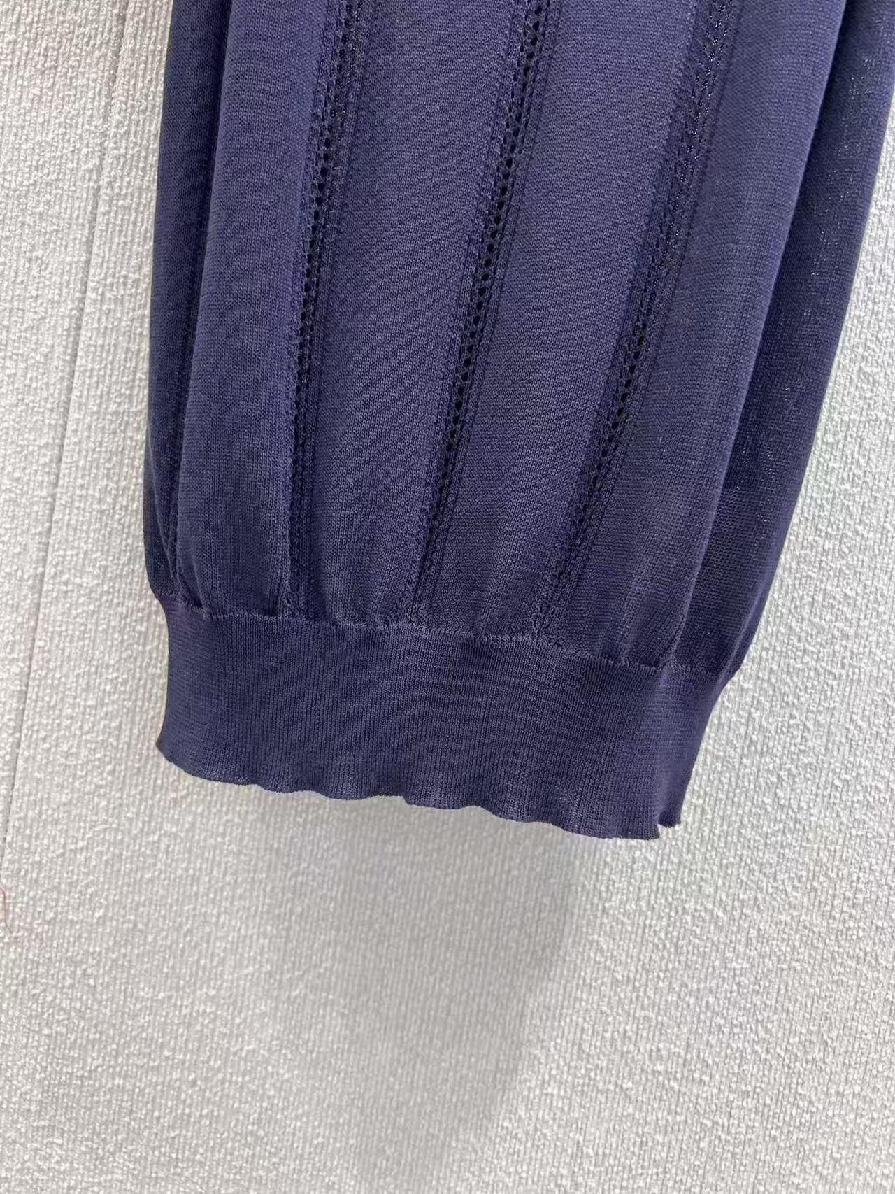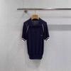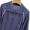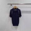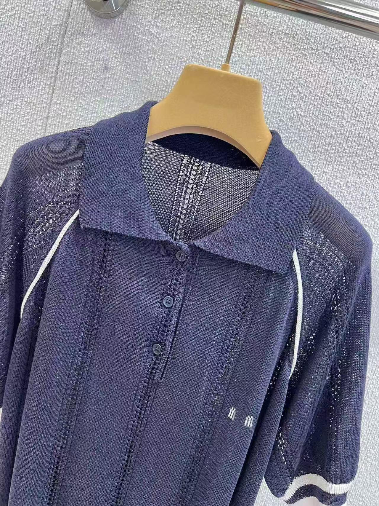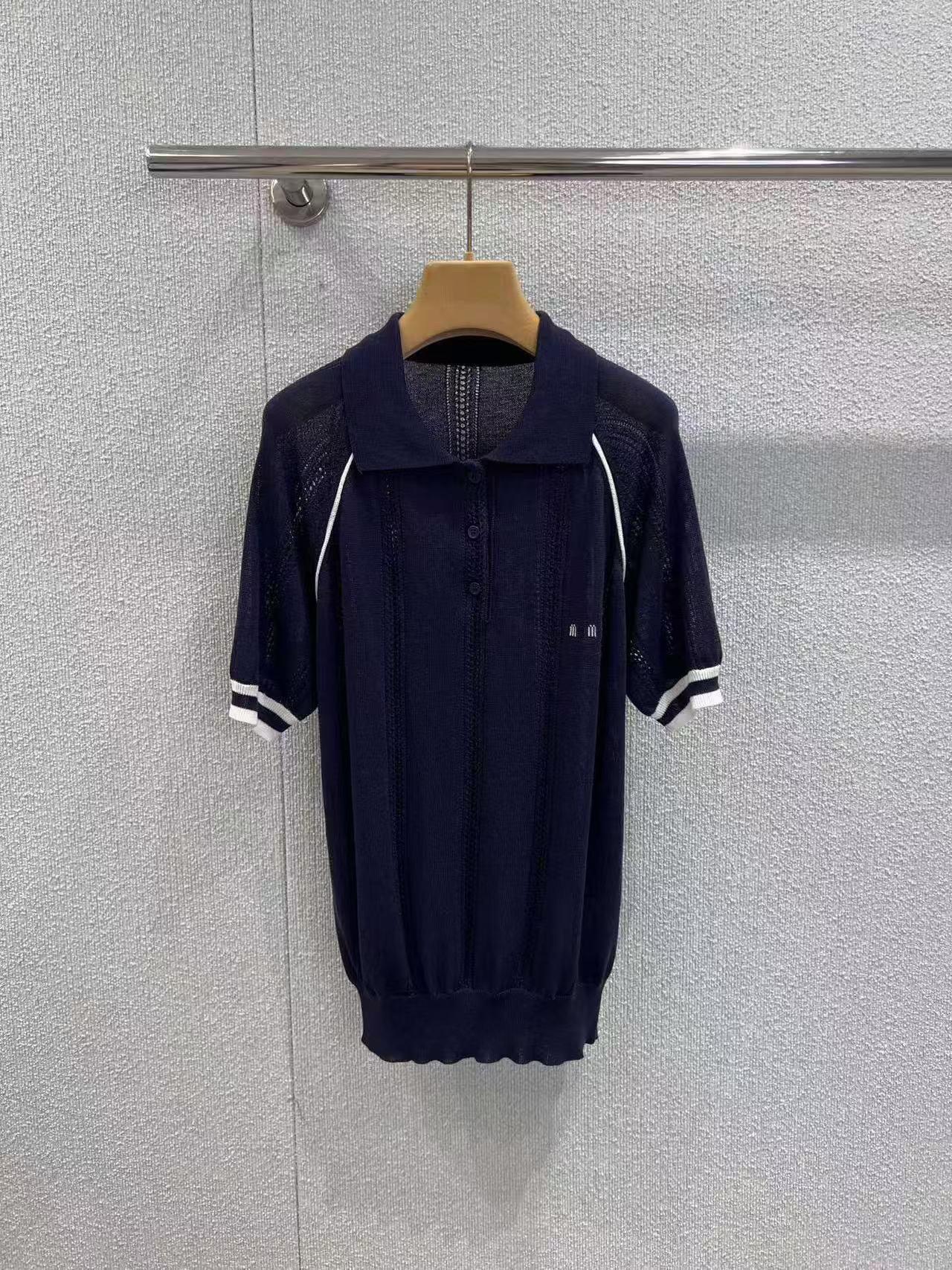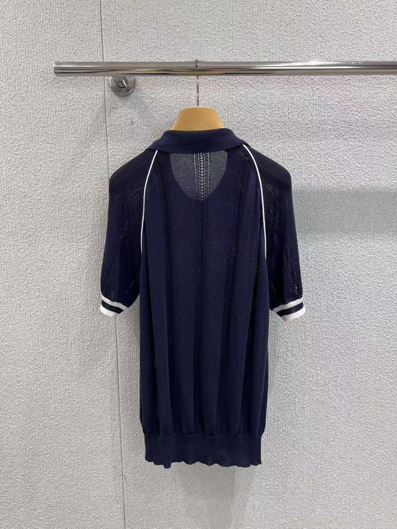 Shenzhen Nanyou 2025 Verano Nuevo Azul Marino Reductor de Edad Rayas en Contraste Tejido Calado Polo Top de Manga Corta para Mujer