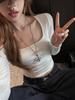 Nueva Camiseta de Manga Larga con Cuello Cuadrado para Mujer, Otoño e Invierno, Camiseta Base Corta, Blanca Ajustada, Favorecedora, Top de Hombro Normal