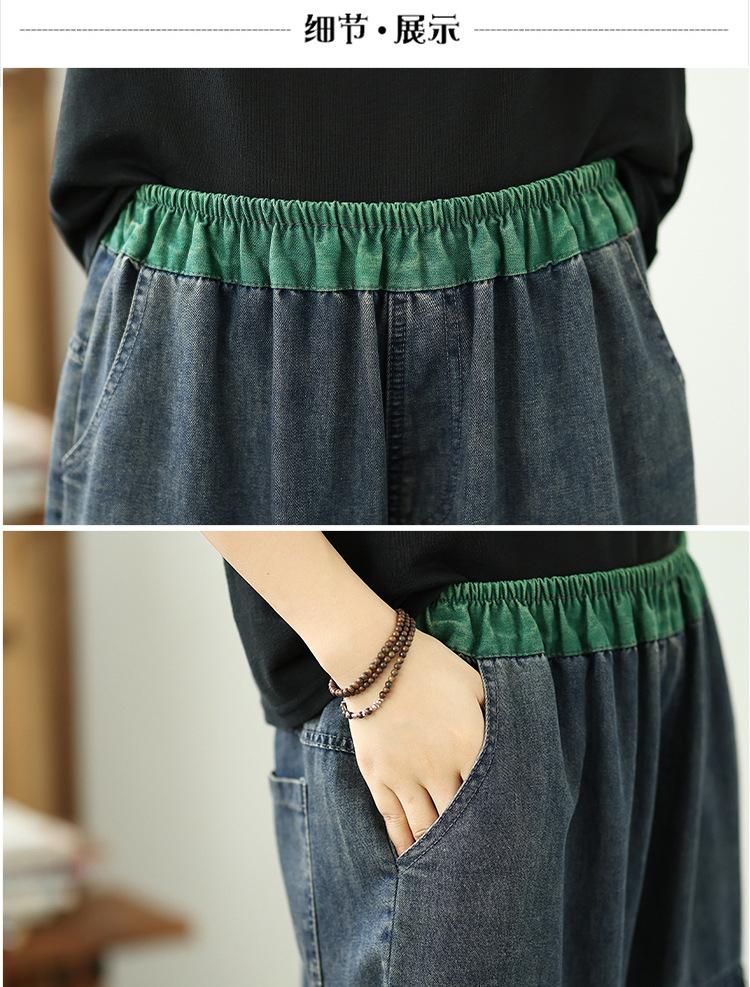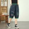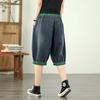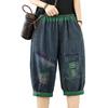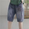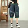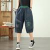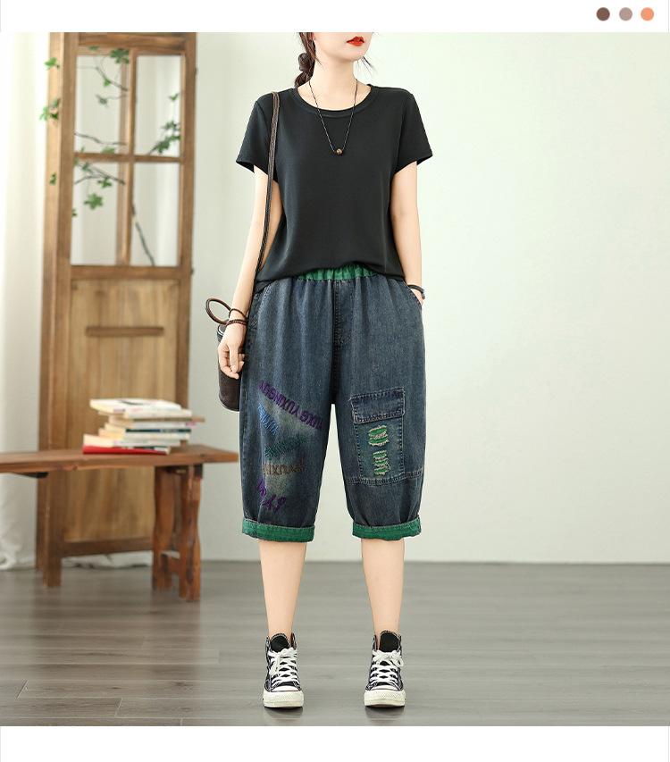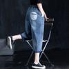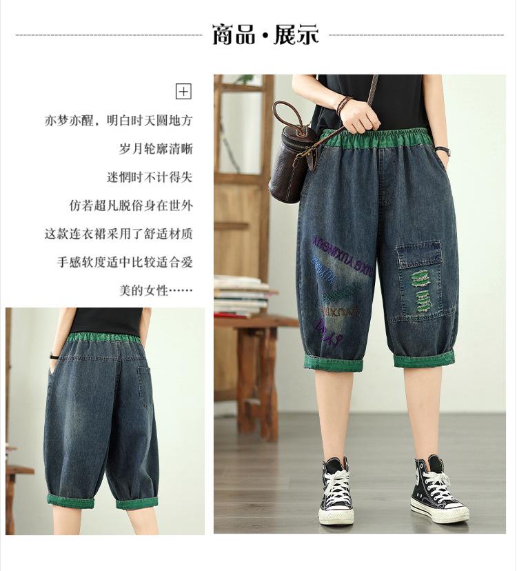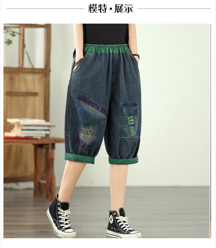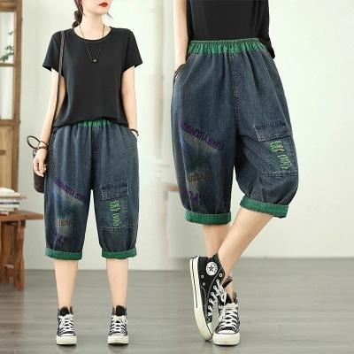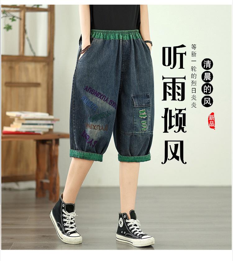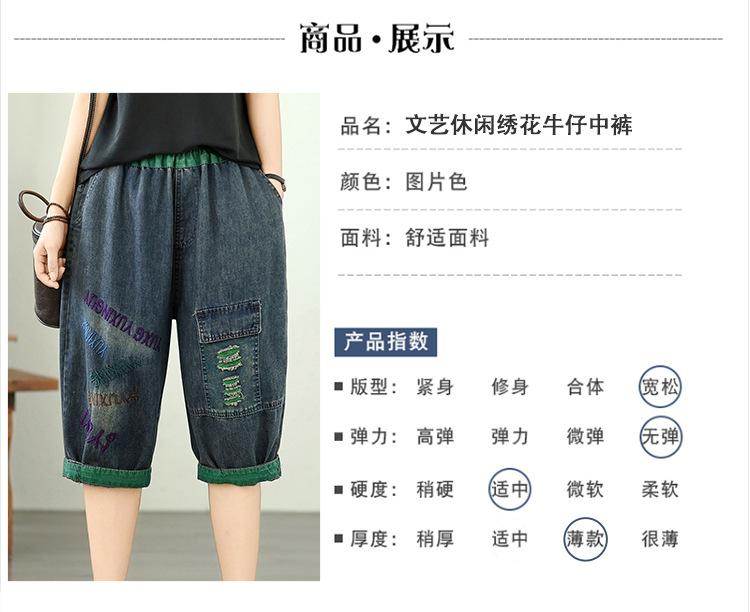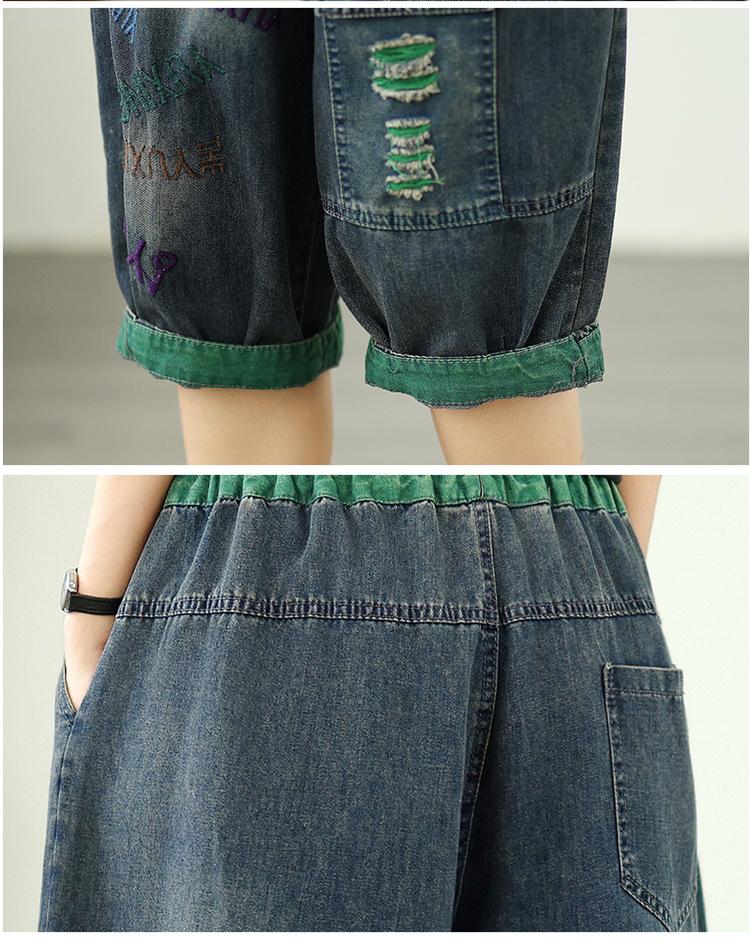 Pantalones de 6 puntos de mezclilla suave delgada bordada, holgados, de cintura alta, versátiles, con aspecto adelgazante, tipo harén, casuales para mujer