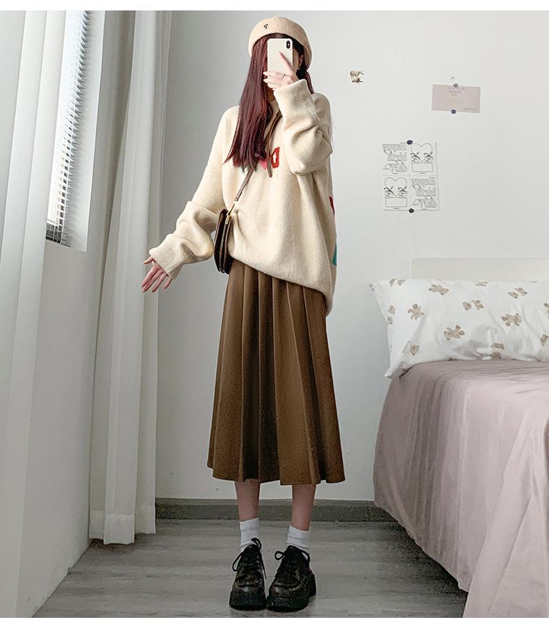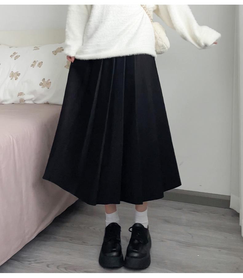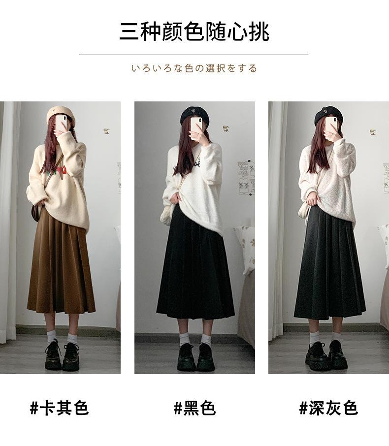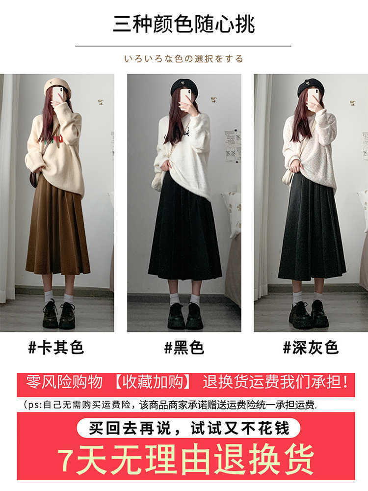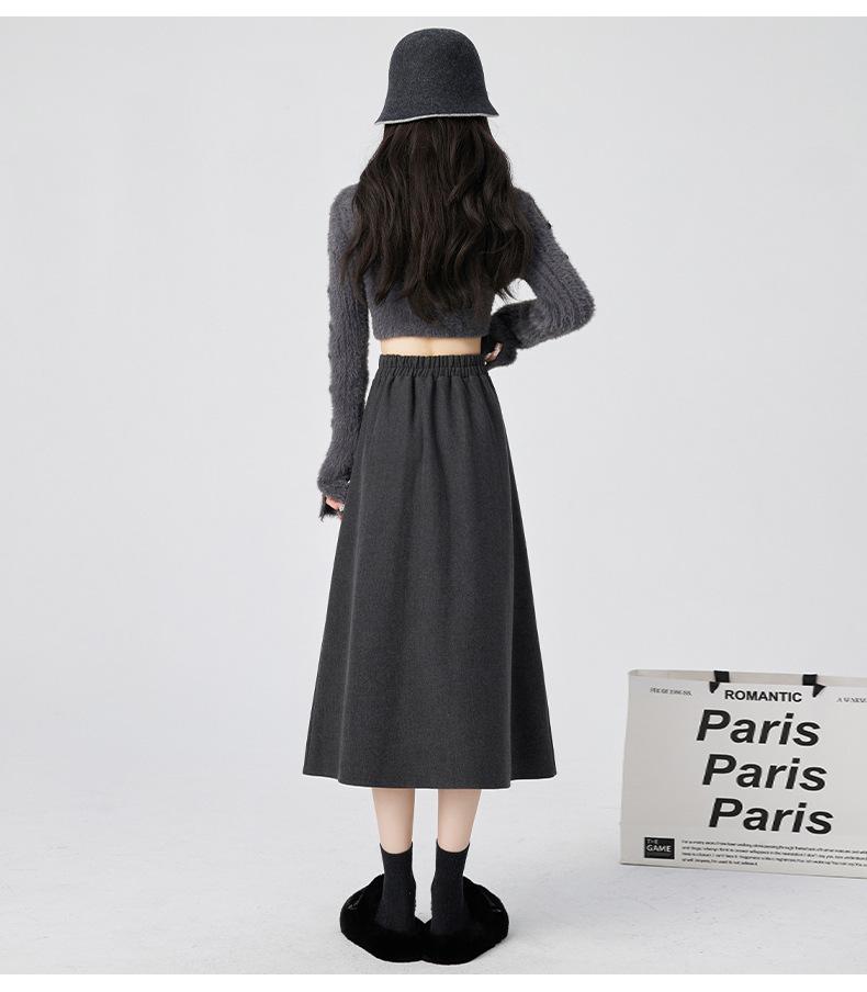 Black【8836】Woolen Long Skirt Short, Dark Grey【8836】Wool Blend Long Skirt Short, Khaki【8836】Woolen Long Skirt S...