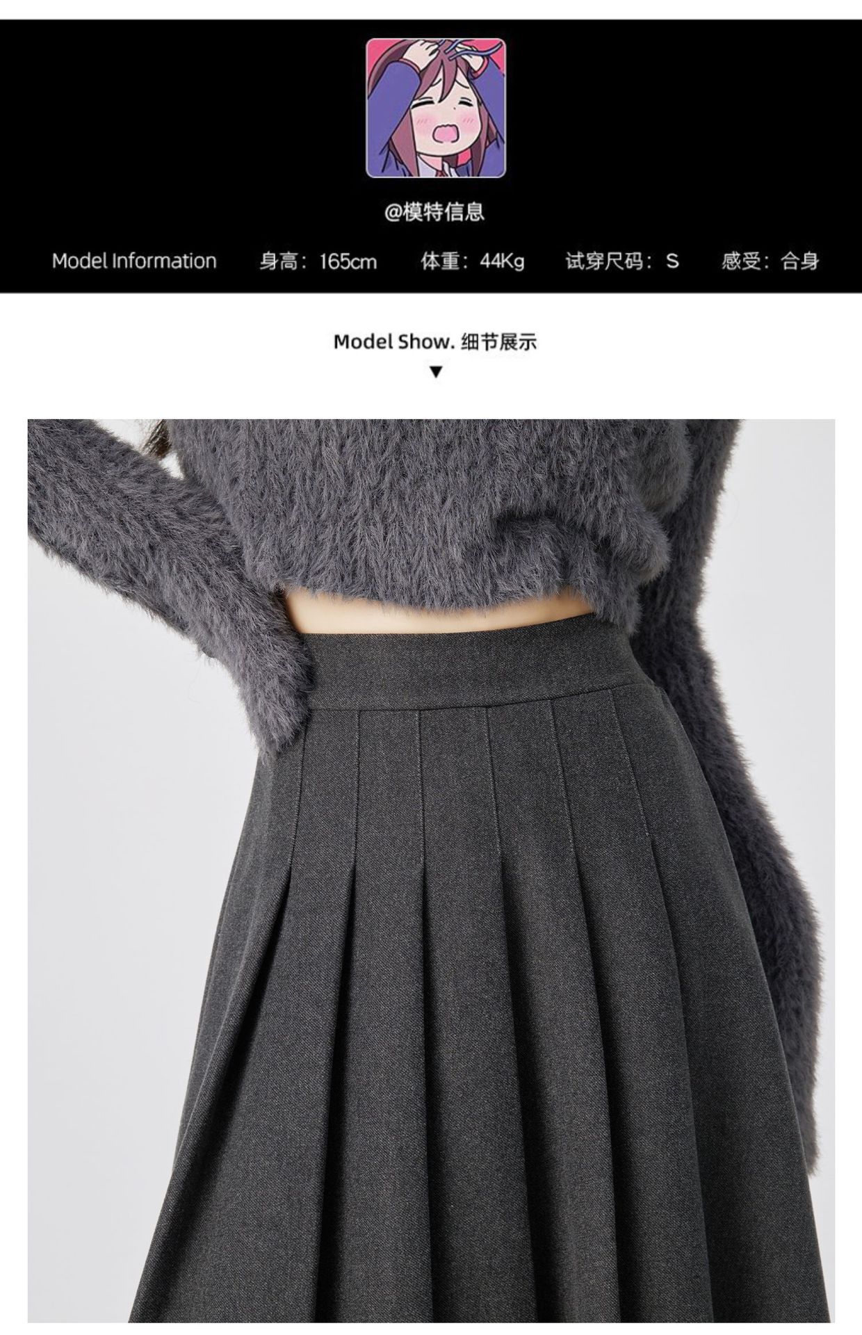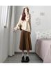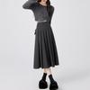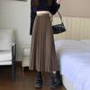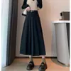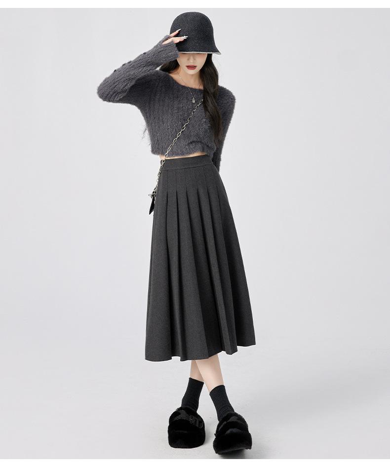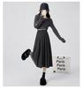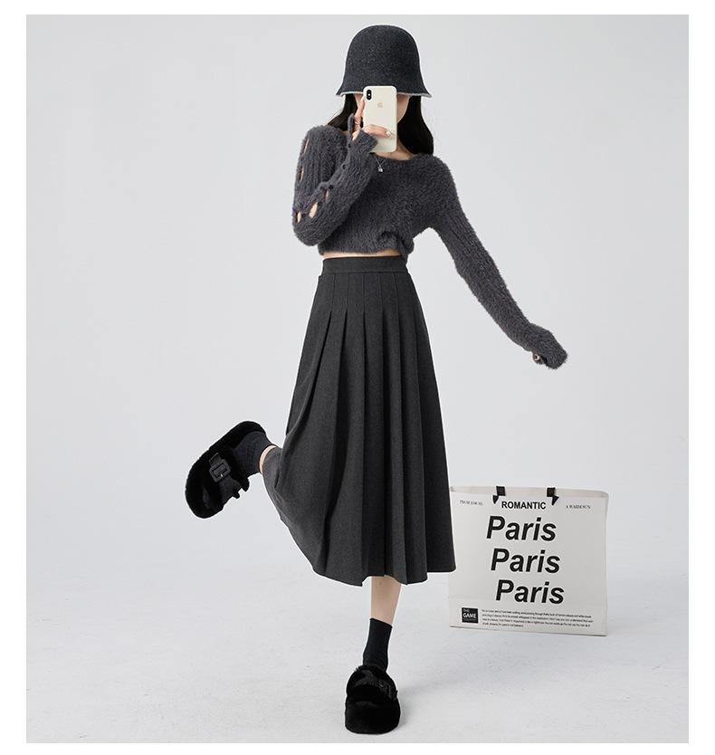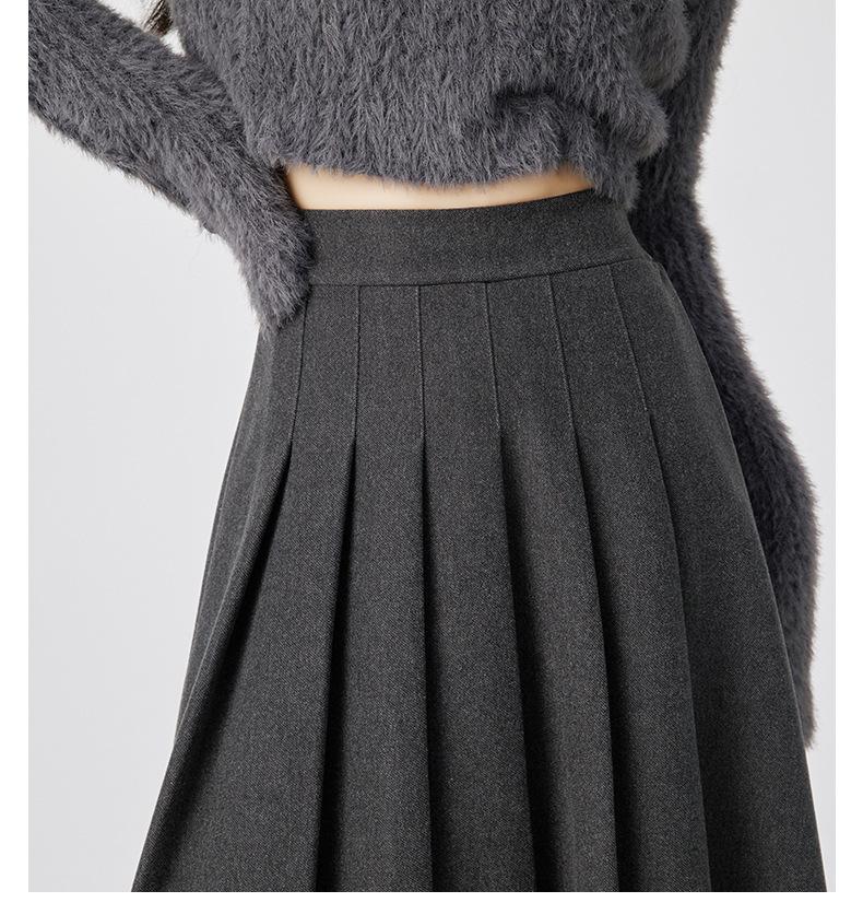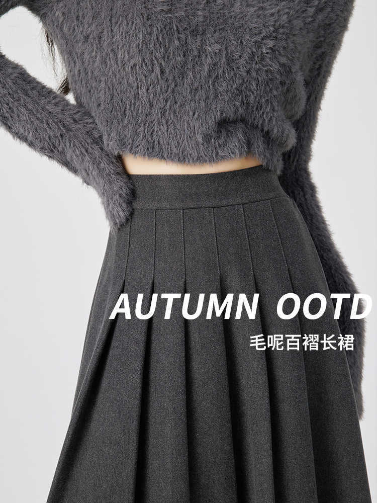 Falda Plisada de Lana Gris Falda Larga para Mujer 2025 Nueva Cintura Alta Adelgazante Falda Línea A Talla Petite Falda Midi Tejida