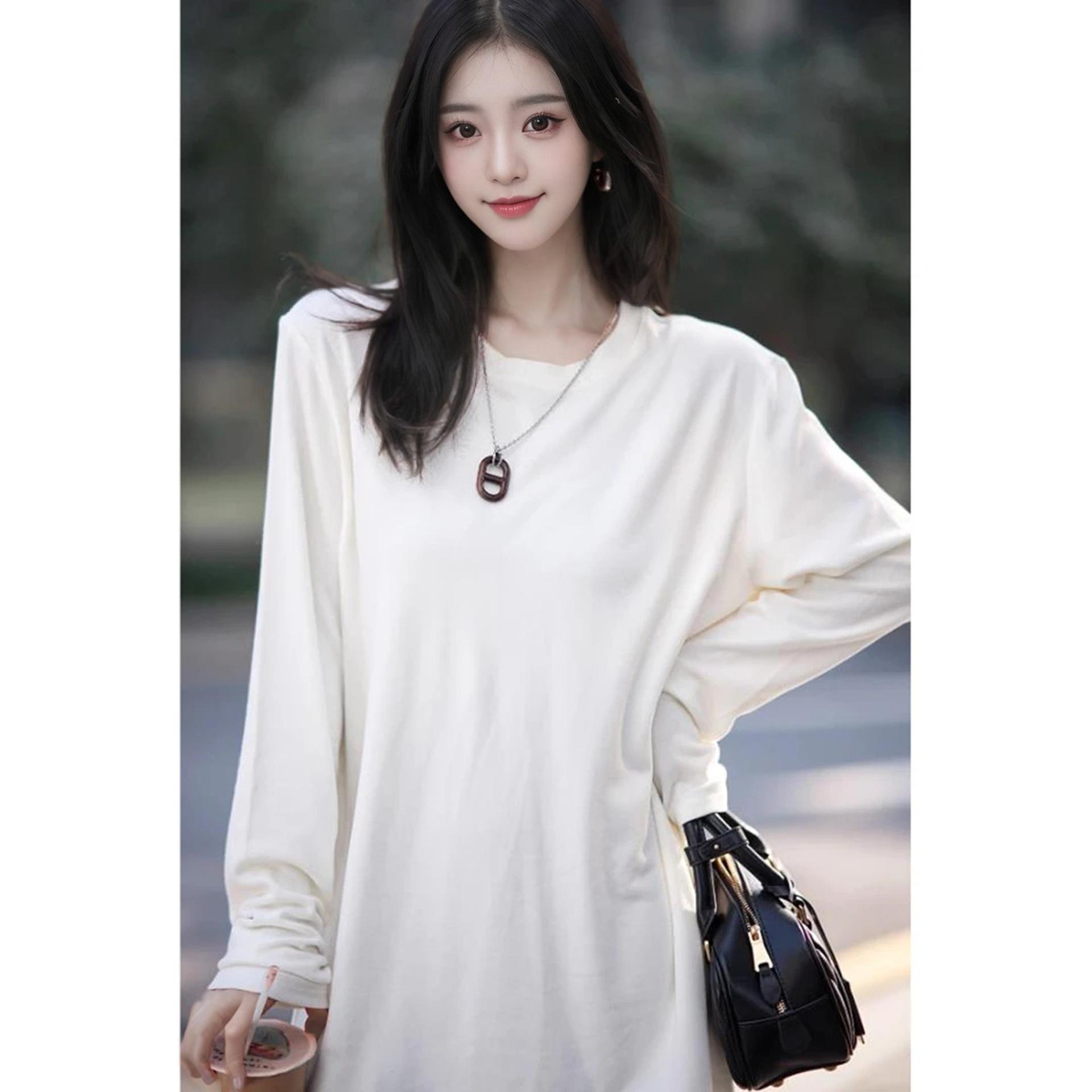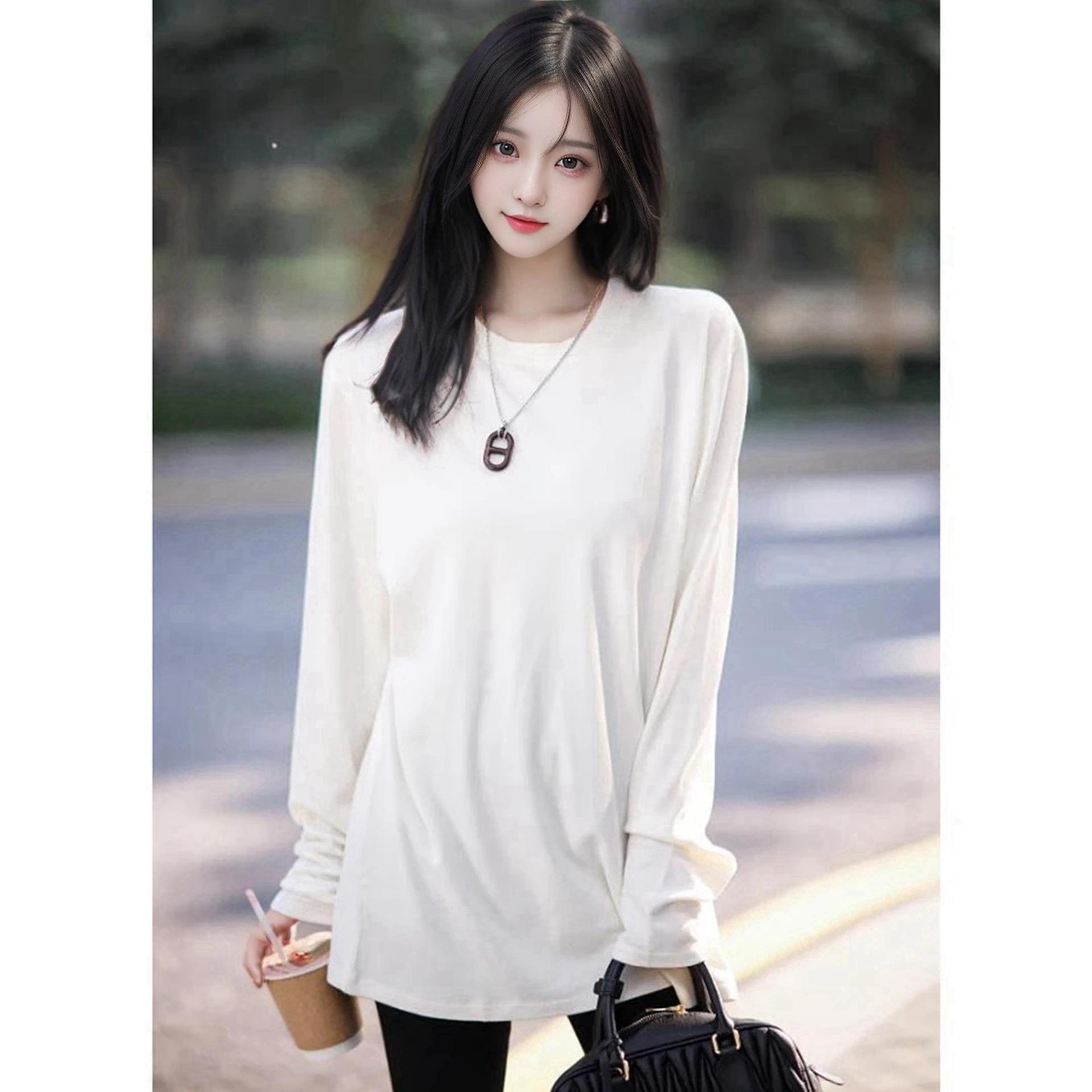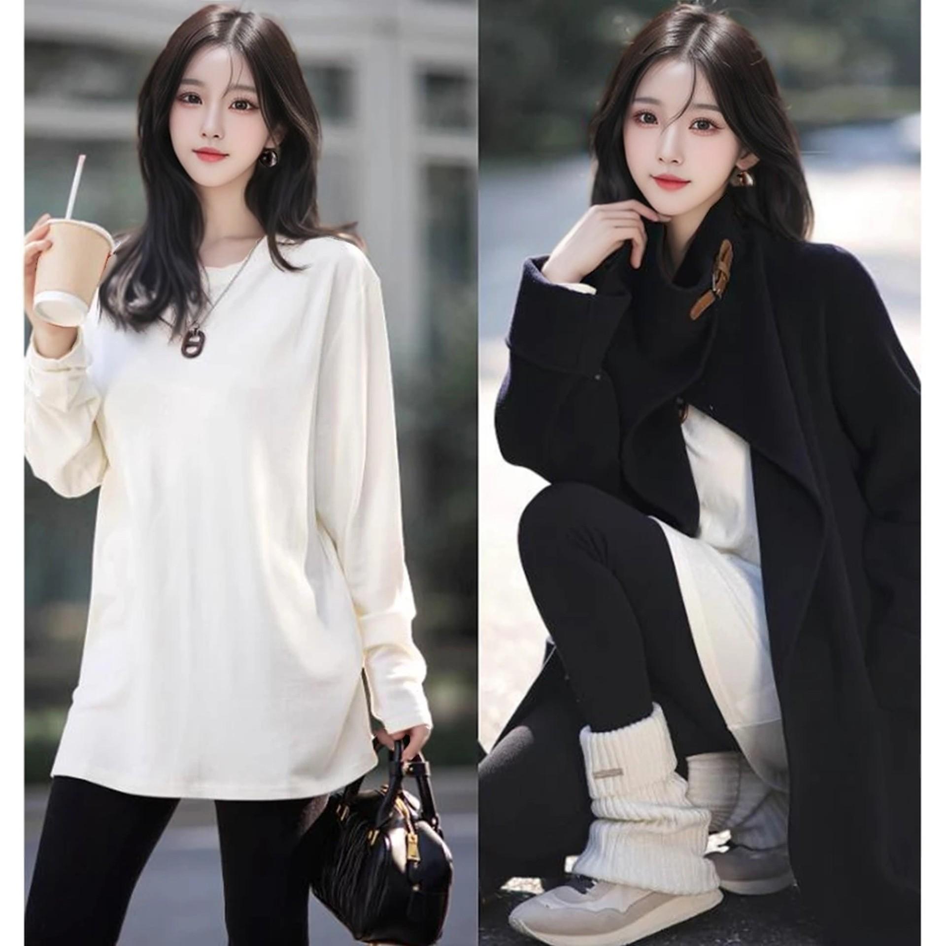 Playera básica blanca de algodón para mujer top 2024 primavera otoño invierno manga larga terciopelo cálida camisa interior versión coreana