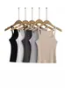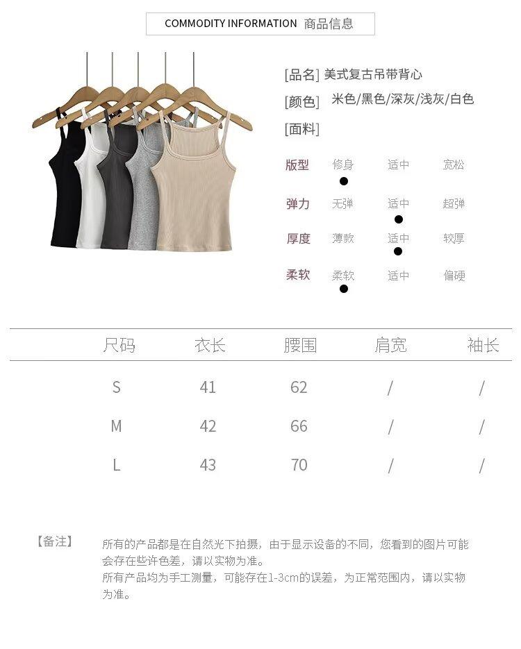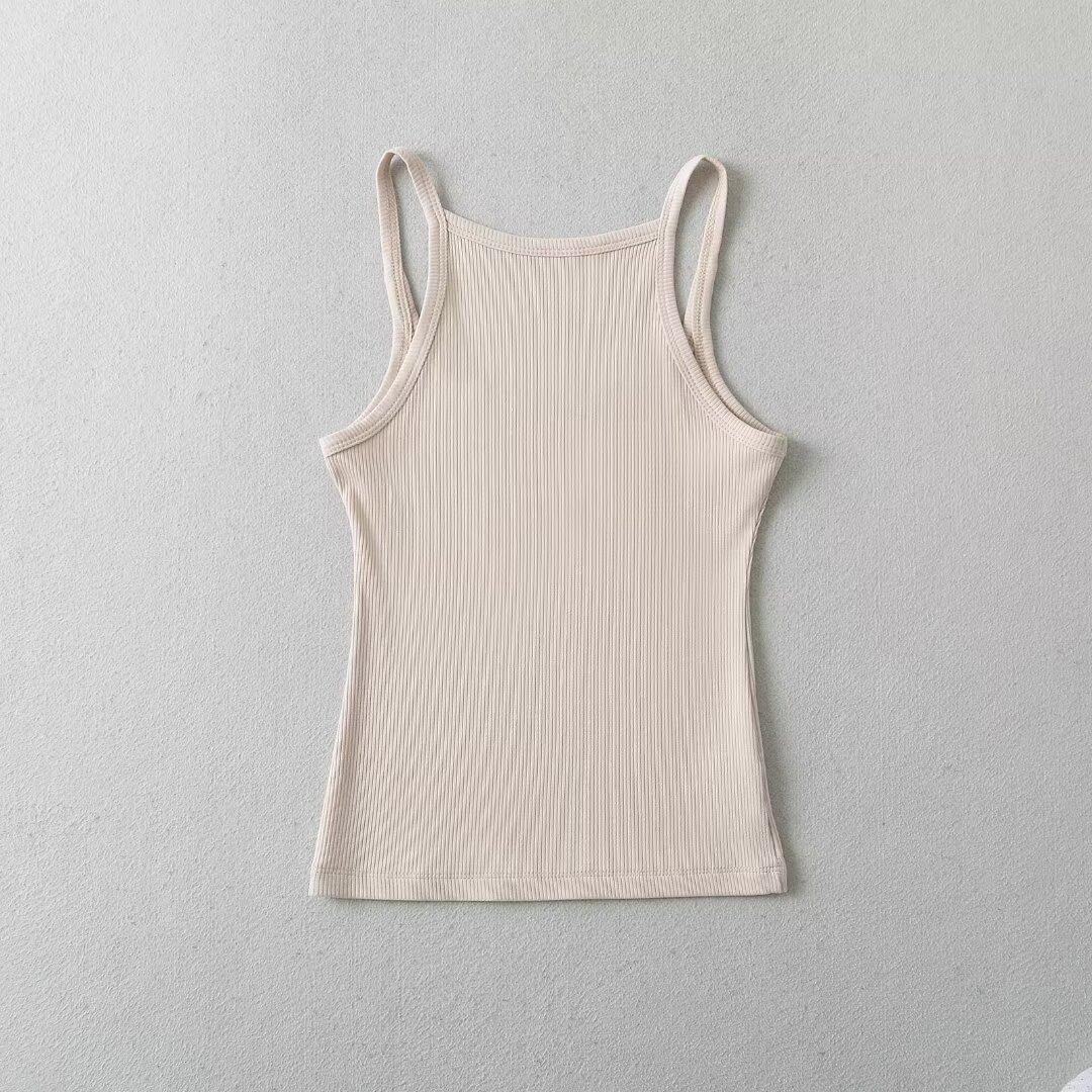 Estilo Europeo y Americano Nuevo TOT Cuello Redondo Bajo Blanco Algodón Tejido Chaleco Tirantes para Mujer Interior y Exterior Slim Elástico Top