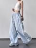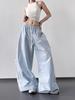 2025 Nuevo Verano Pantalones Casuales de Lazo para Mujer Pantalones Largos de Pierna Ancha Versátiles de Trabajo Slim Holgados de Cintura Alta para Mujer