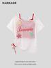 Camiseta de Manga Corta con Parche de Mariposa Retro Americano con Hombros Descubiertos para Mujer Verano Tirante Asimétrico Sexy Hombro Inclinado Camiseta Top