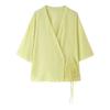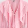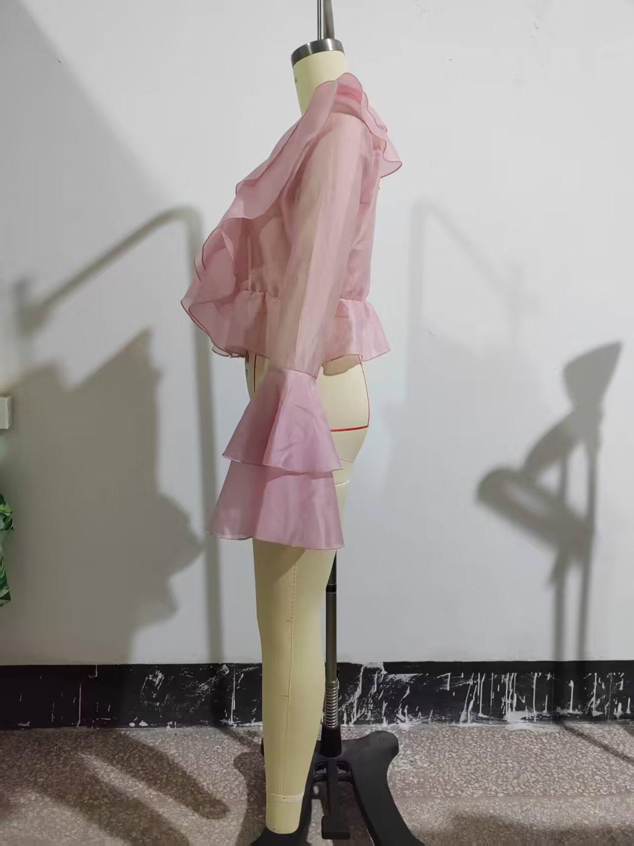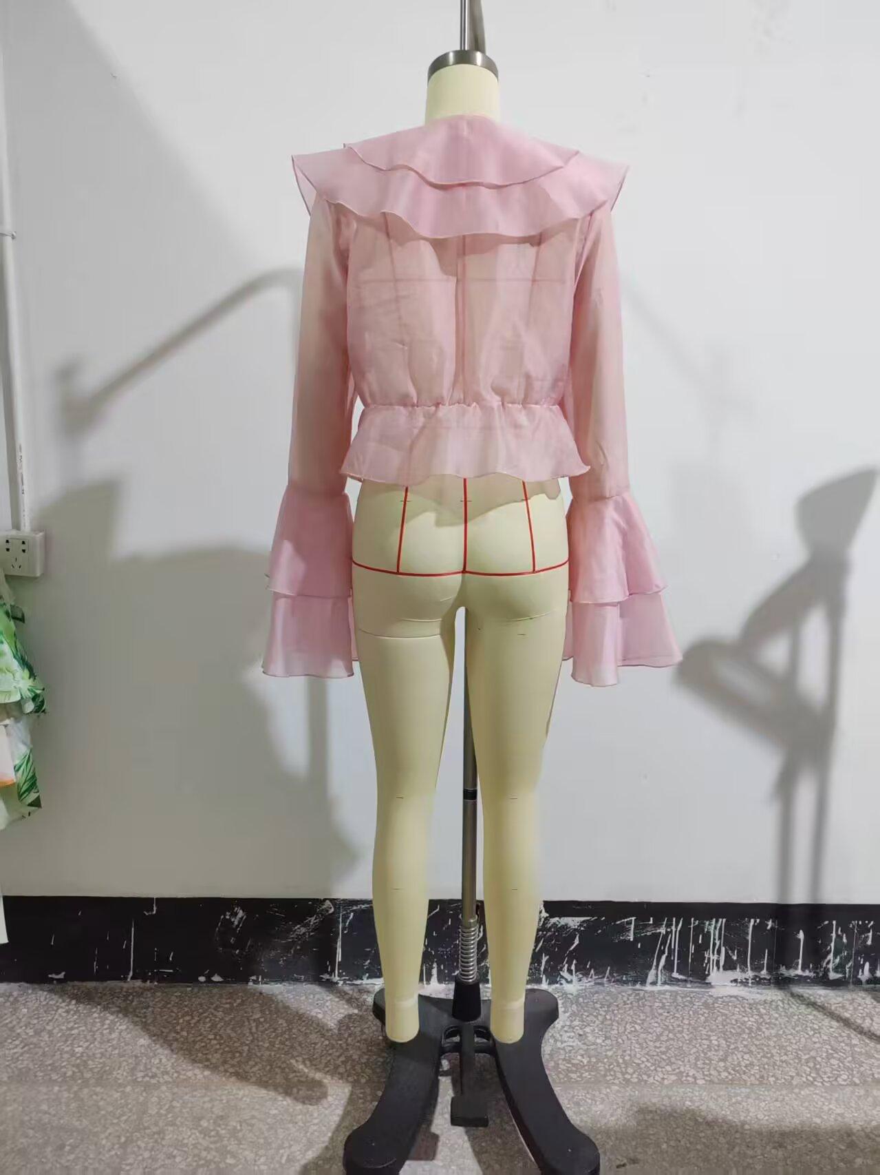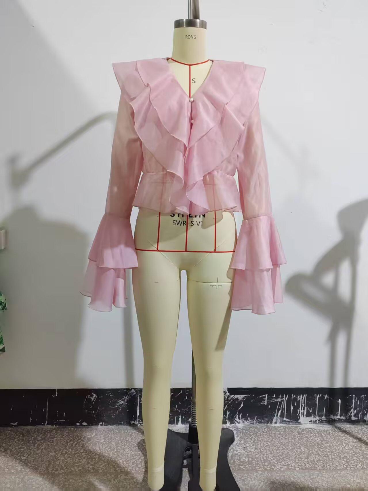 Exportación Transfronteriza Ropa de Mujer 2025 Verano Estilo Europeo y Americano Cuello en V Volantes Manga Campana Camisa Top Mujer C45301F
