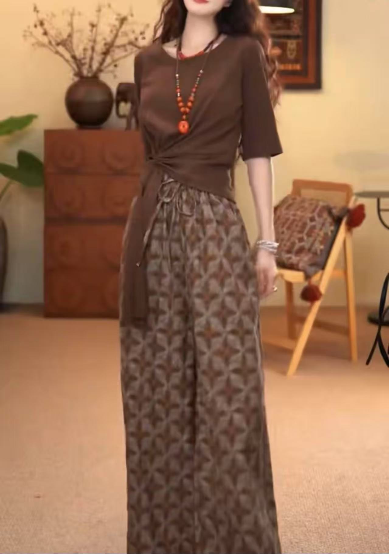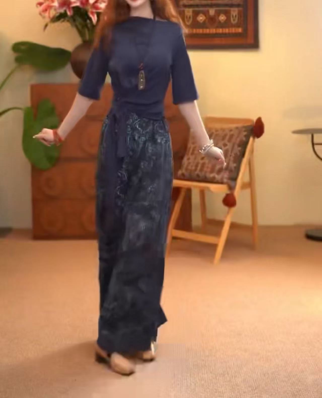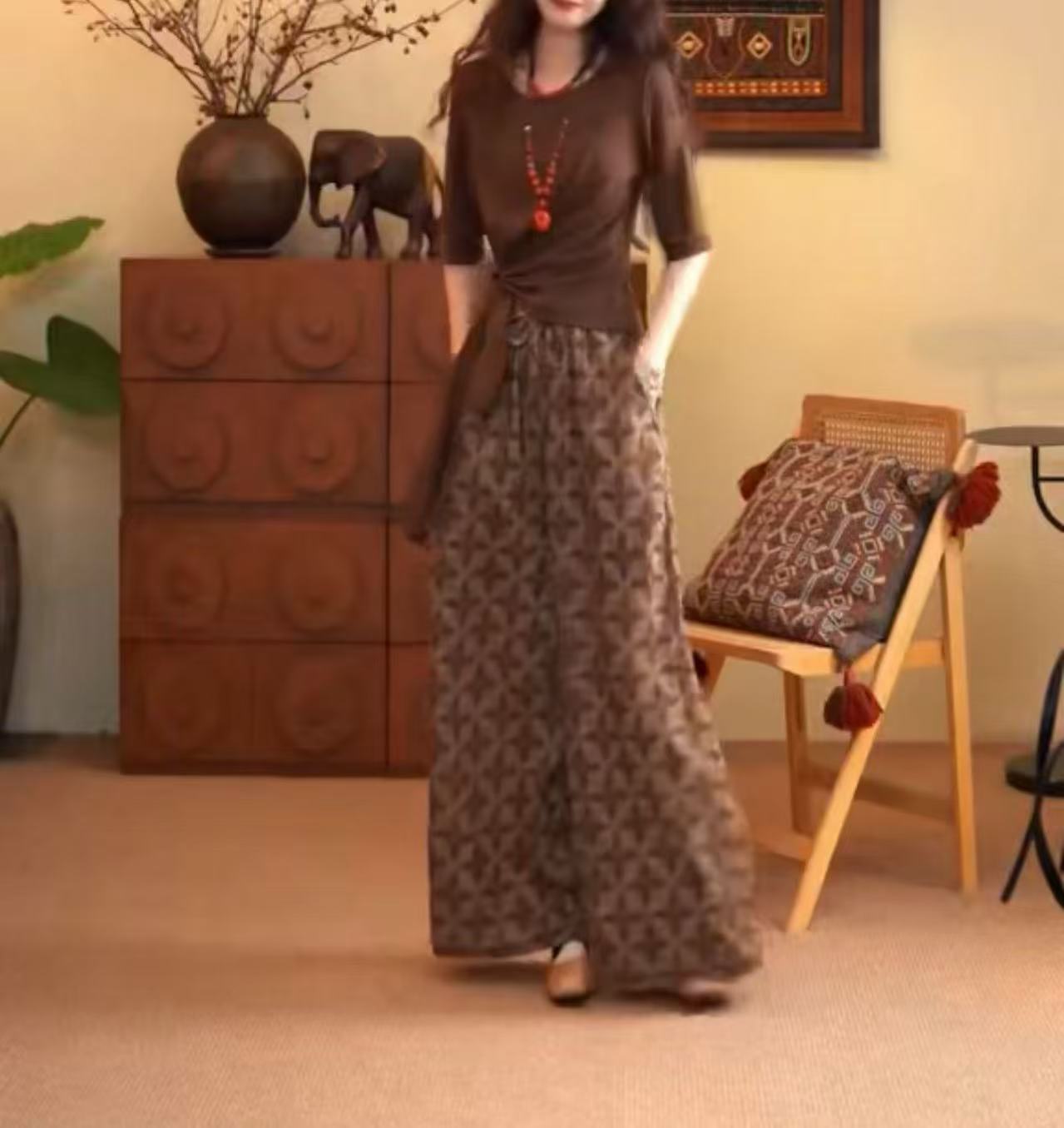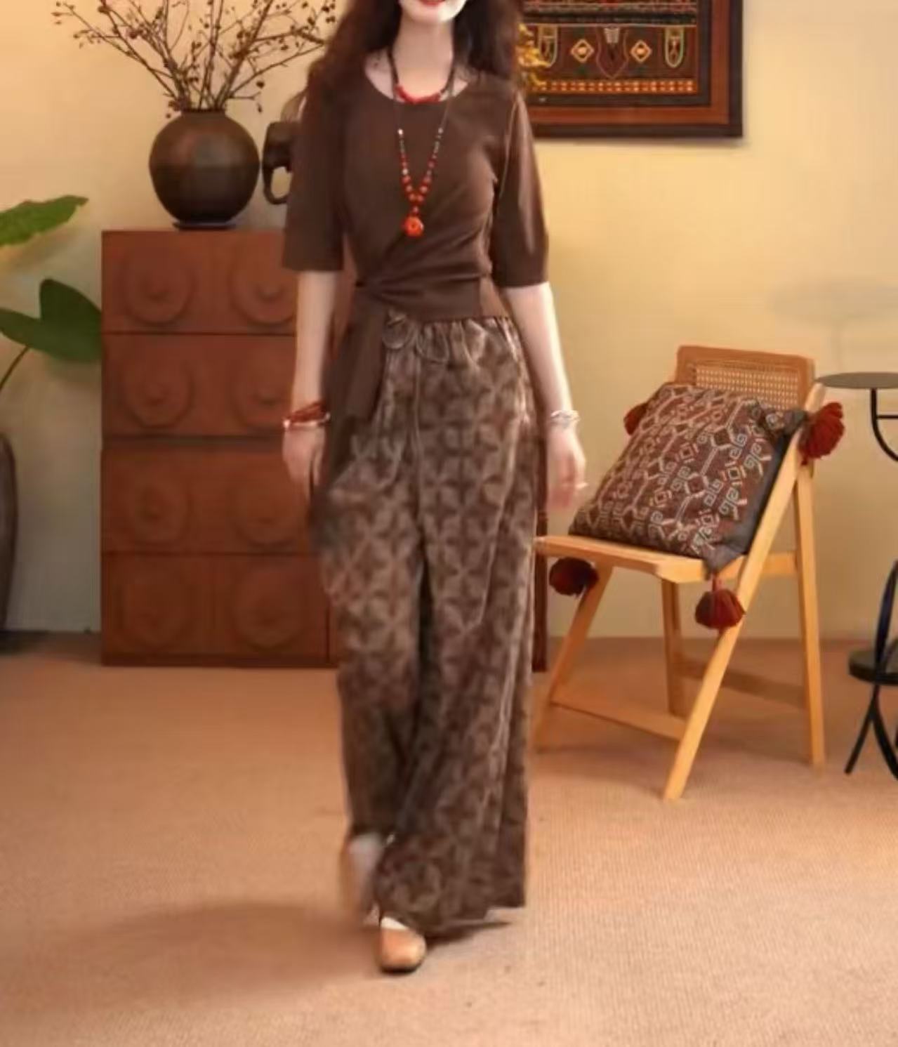 25827 Nuevo Daiai Meiyiyuan 2025 Verano Nuevo Camiseta Moderna con Cordones Fresca y Elegante Casual Pantalones Anchos de Cintura Alta Tendencia
